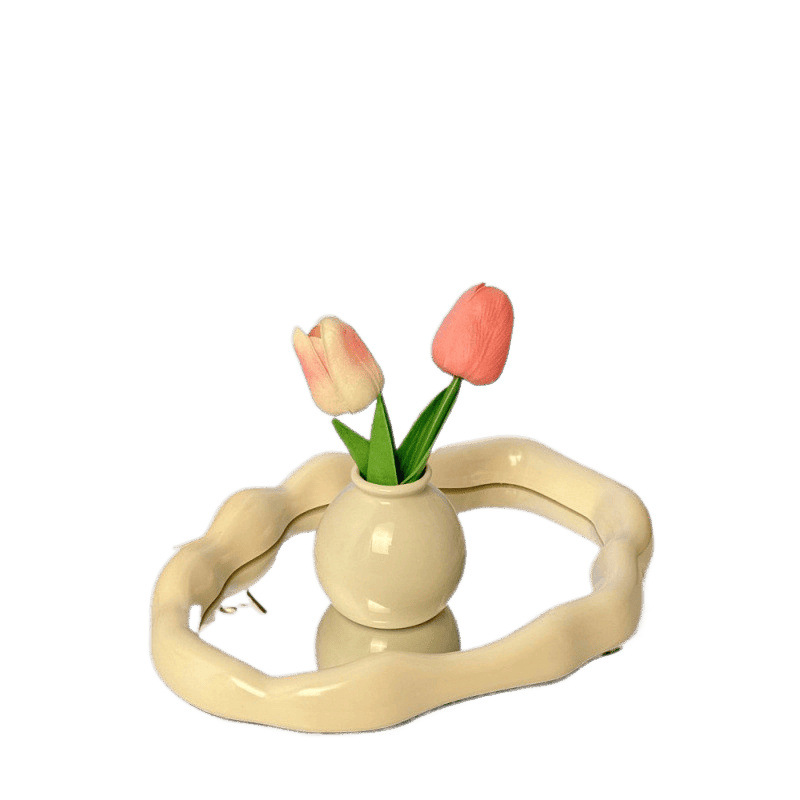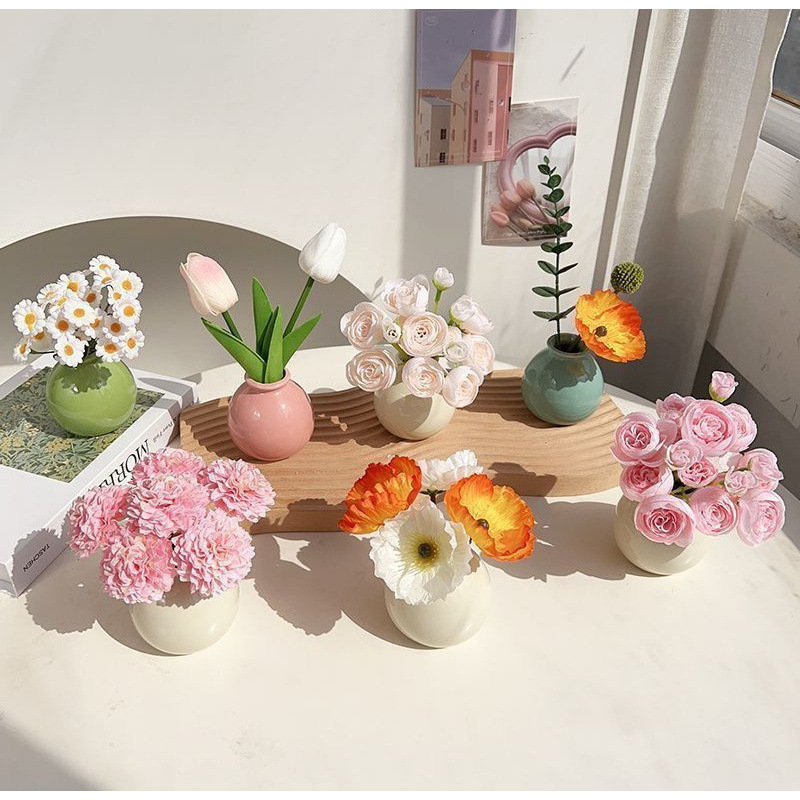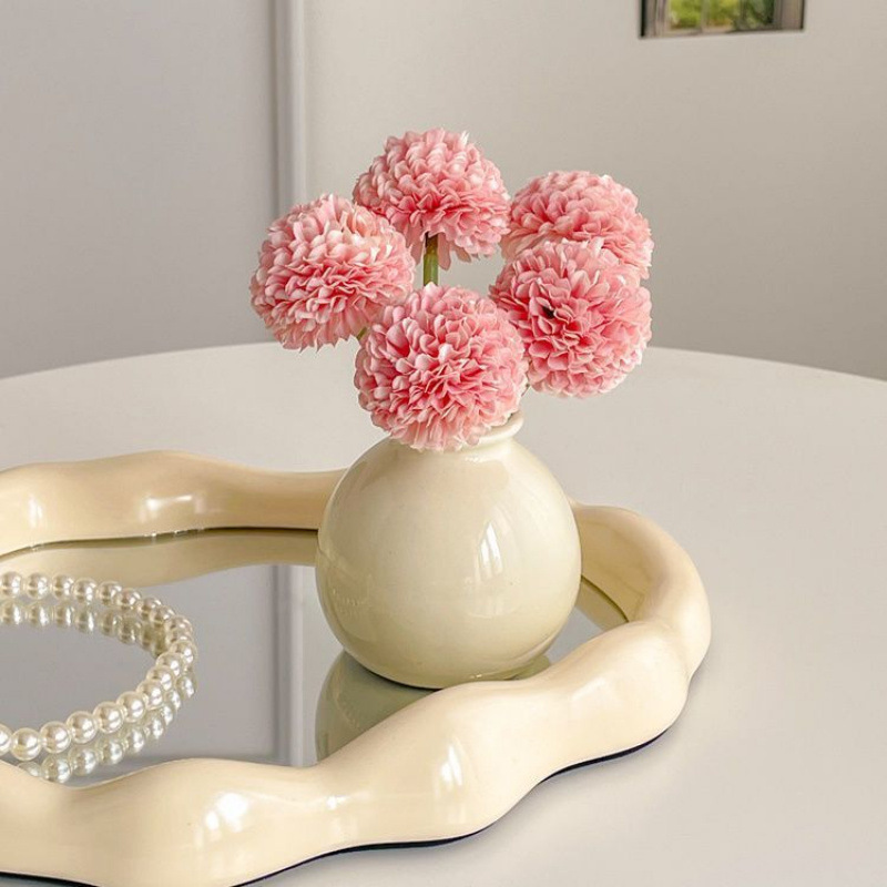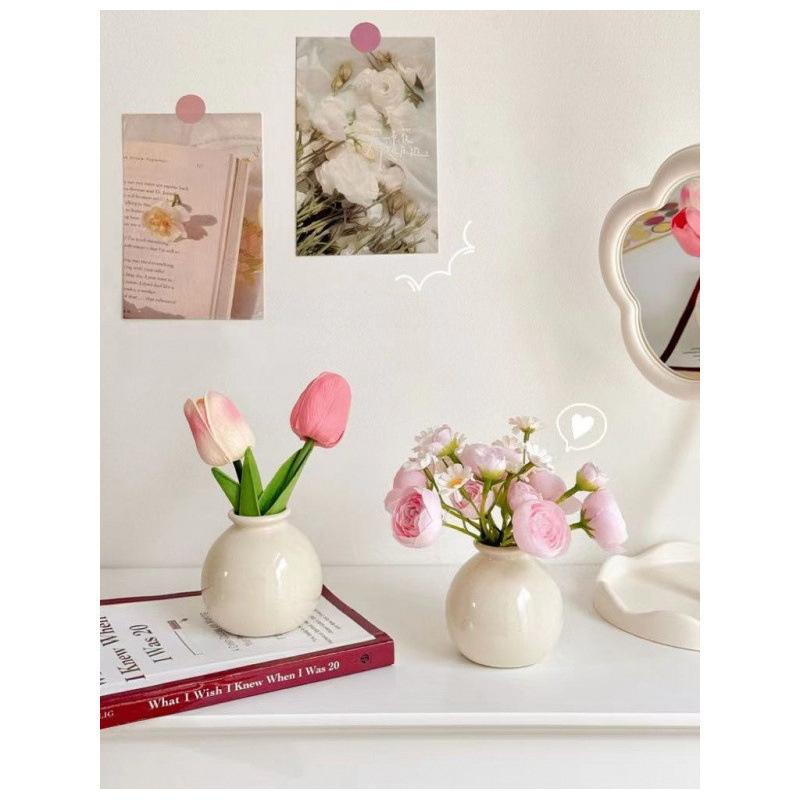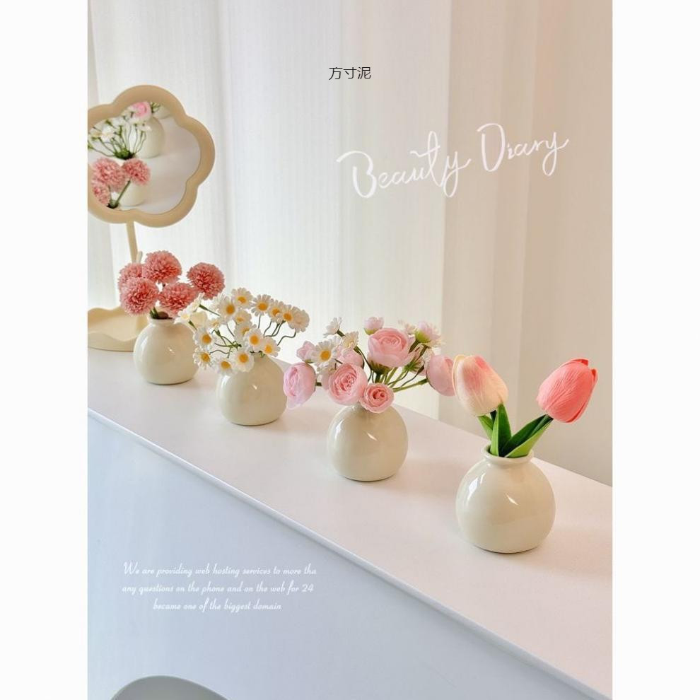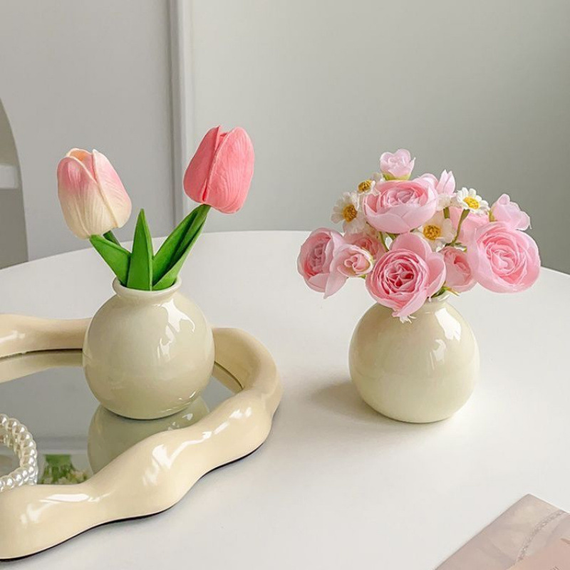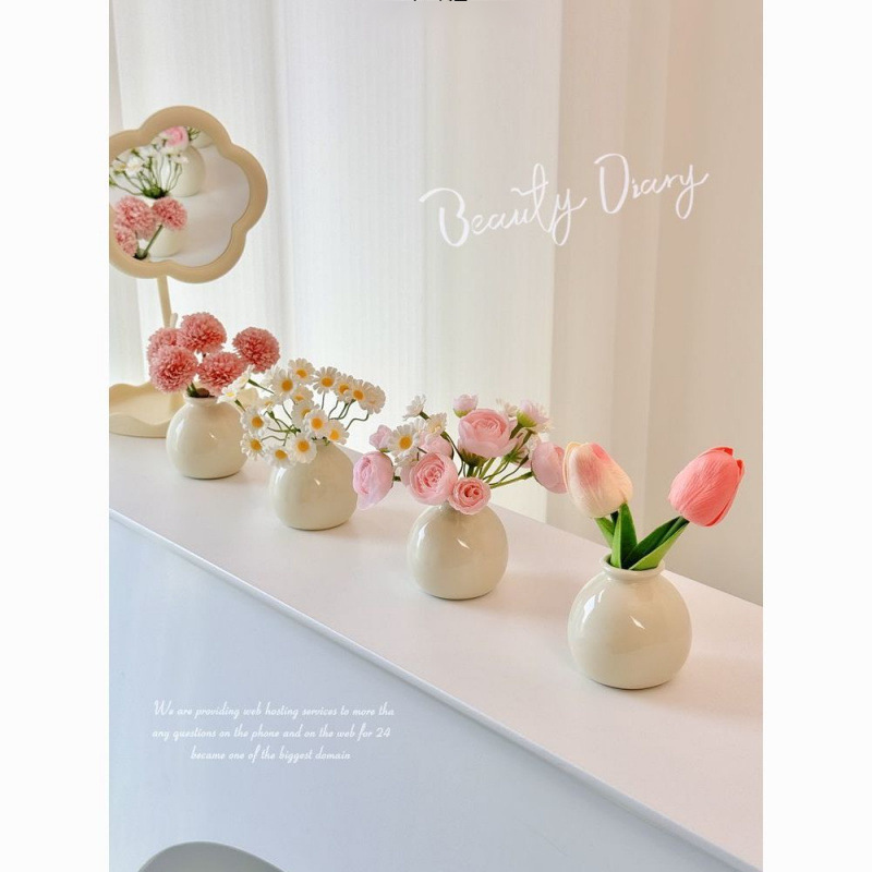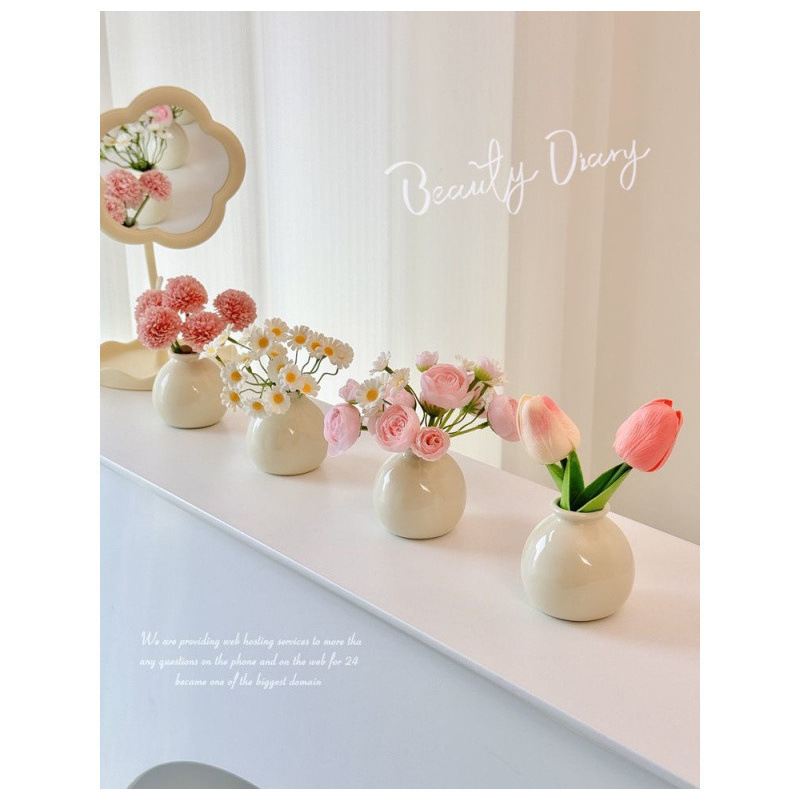 Керамическая маленькая ваза в кремовом стиле с сухоцветами и искусственными цветами, украшения для рабочего стола, прихожей, гостиной, цельная оптовая продажа