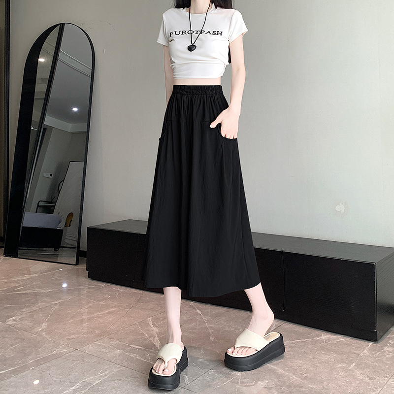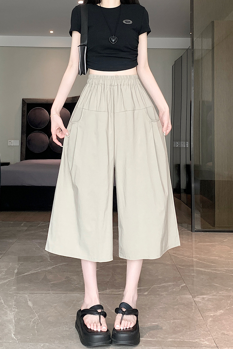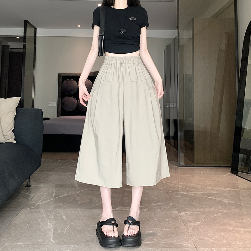 150 миниатюрных укороченных широких брюк для женщин, летние свободные утягивающие прямые брюки, повседневные брюки с высокой талией 145 см
