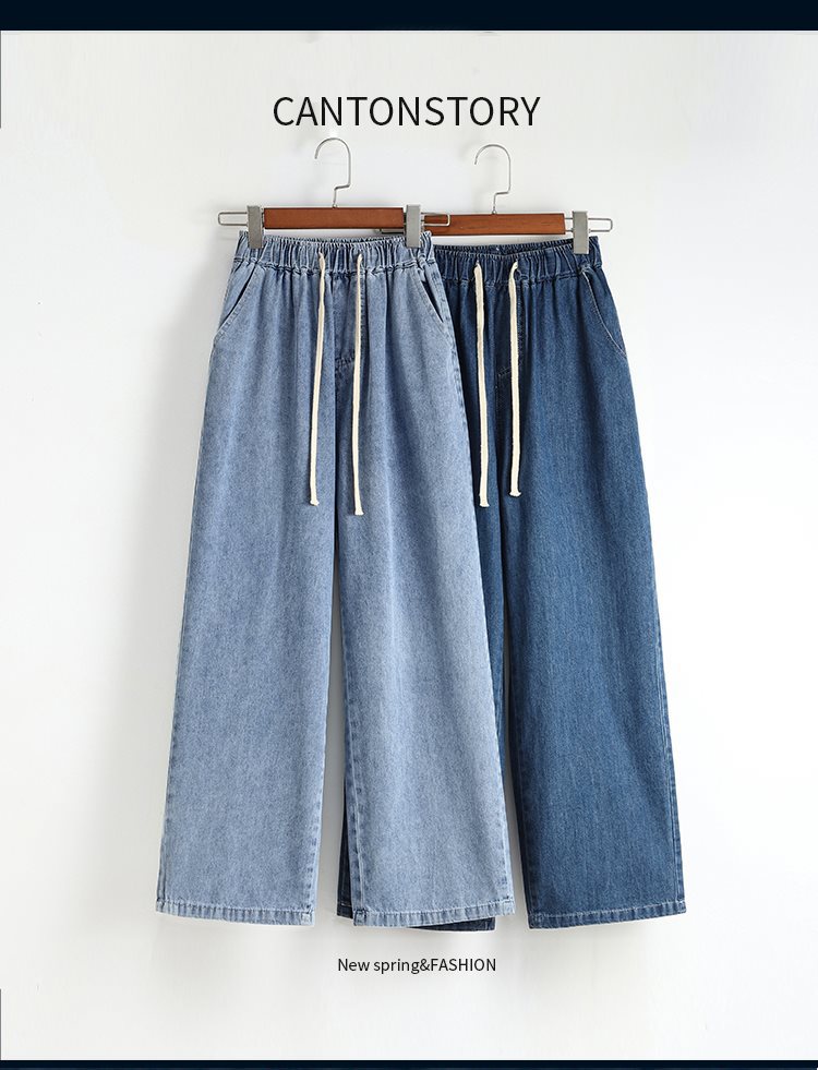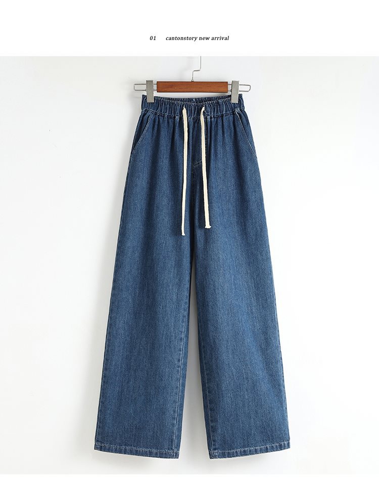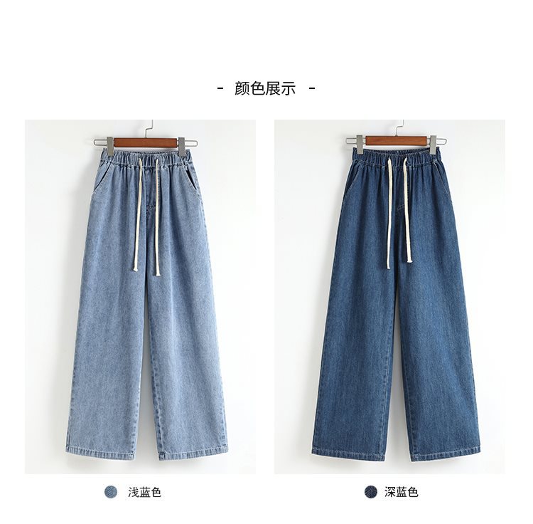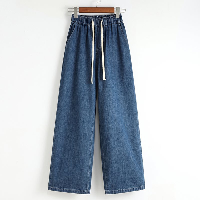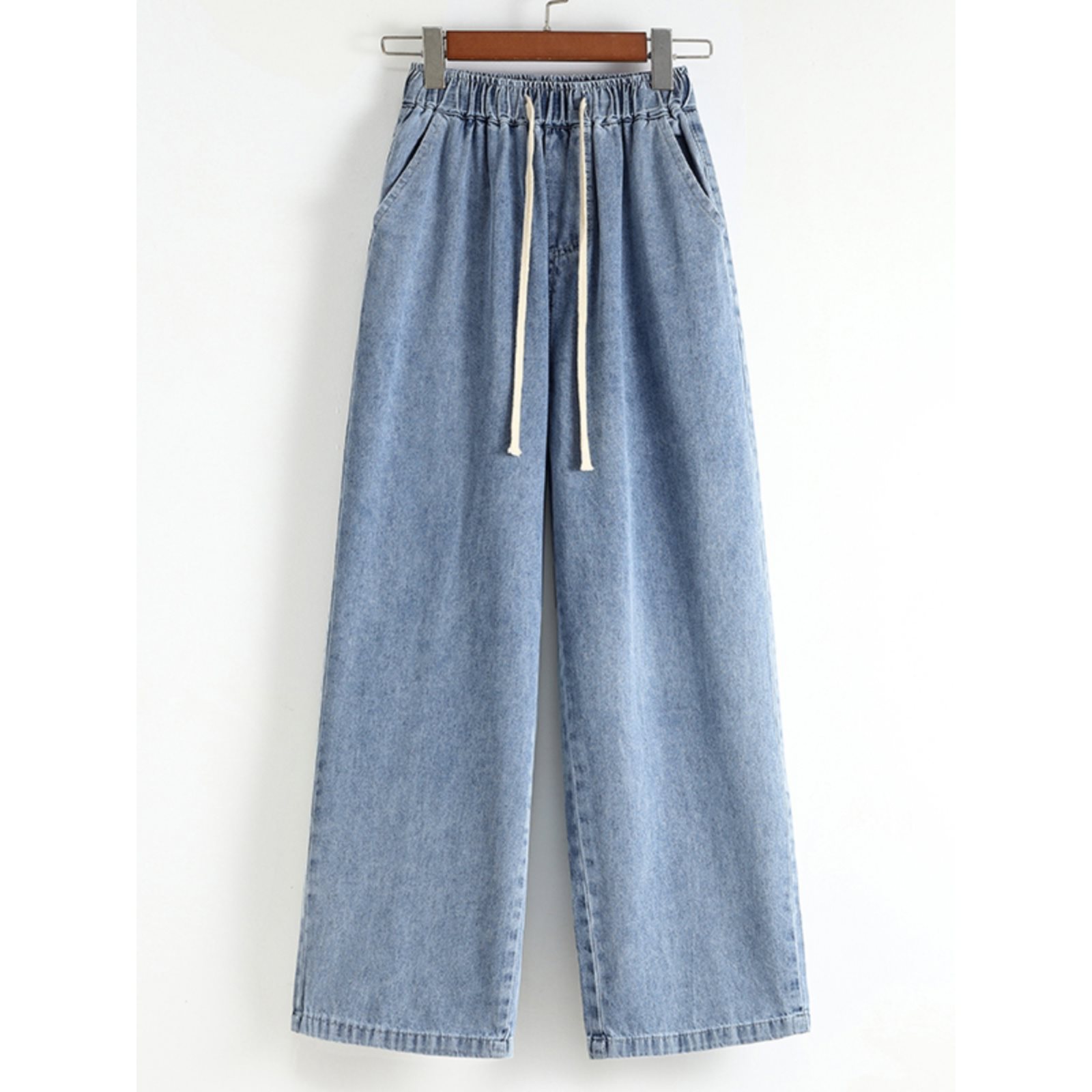 Прямые женские джинсы больших размеров, новый свободный крой с высокой талией для пышных фигур, эластичная талия с завязками, утягивающие широкие брюки.