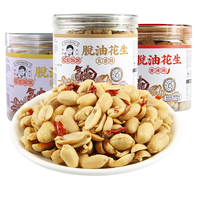 Арахис для девочек, обезжиренный арахис, 308 г, орехи, жареные семена, приготовленная еда, очищенные консервы, готовые к употреблению закуски, арахис