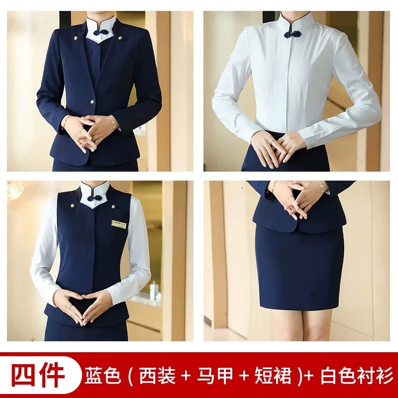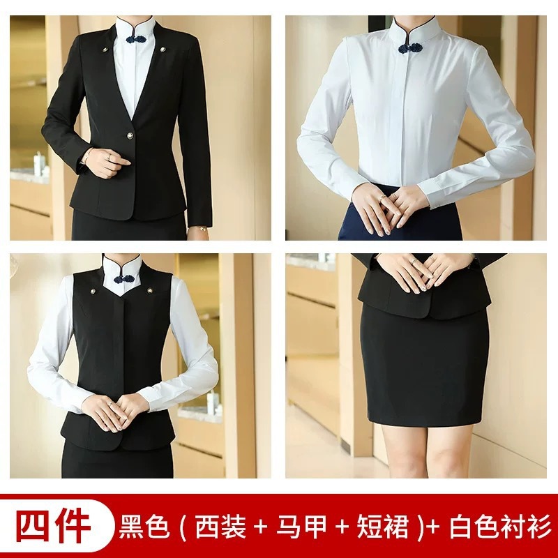 Кассир на стойке регистрации отеля, профессиональный женский костюм, костюм с длинными рукавами, косметолог, ювелирный магазин, ресторан, официант, рабочая одежда