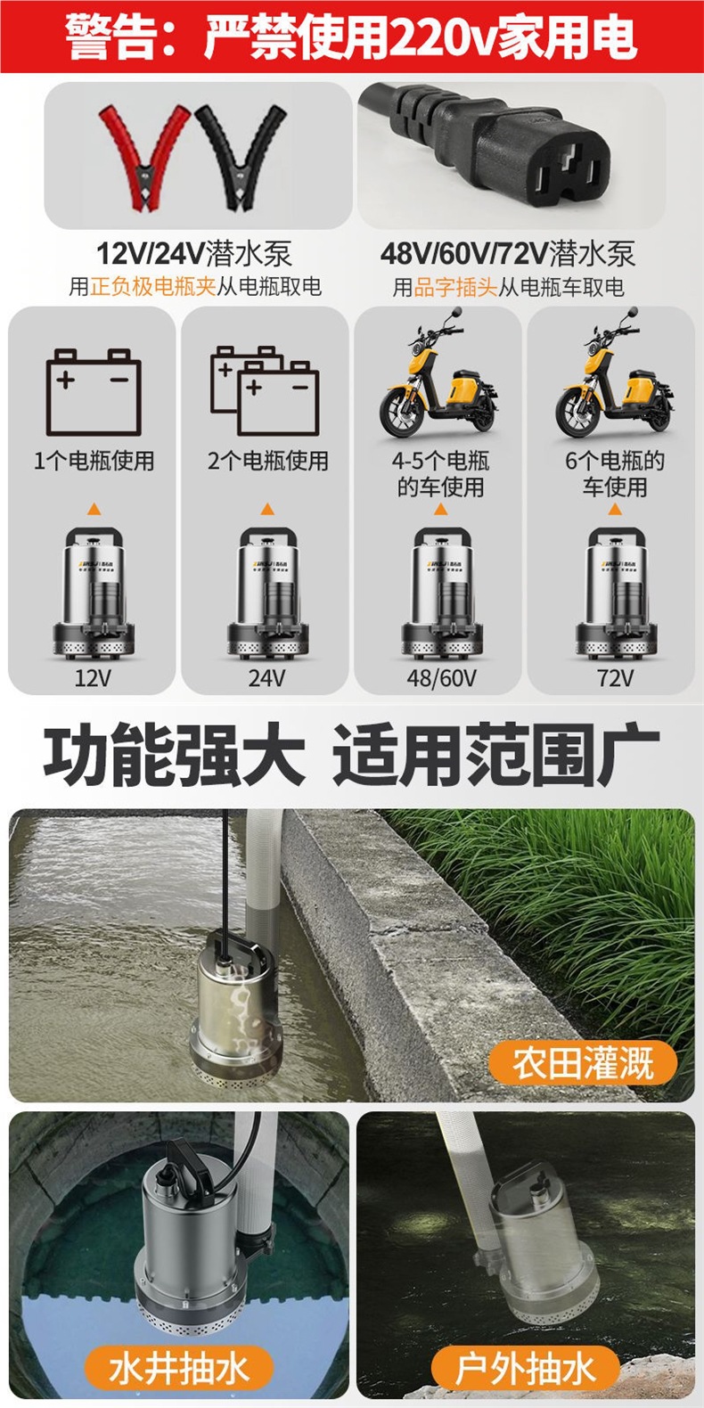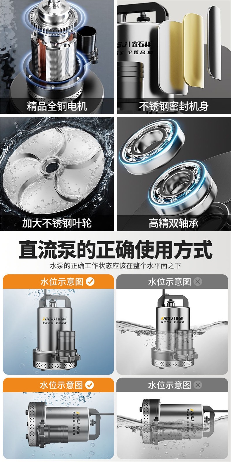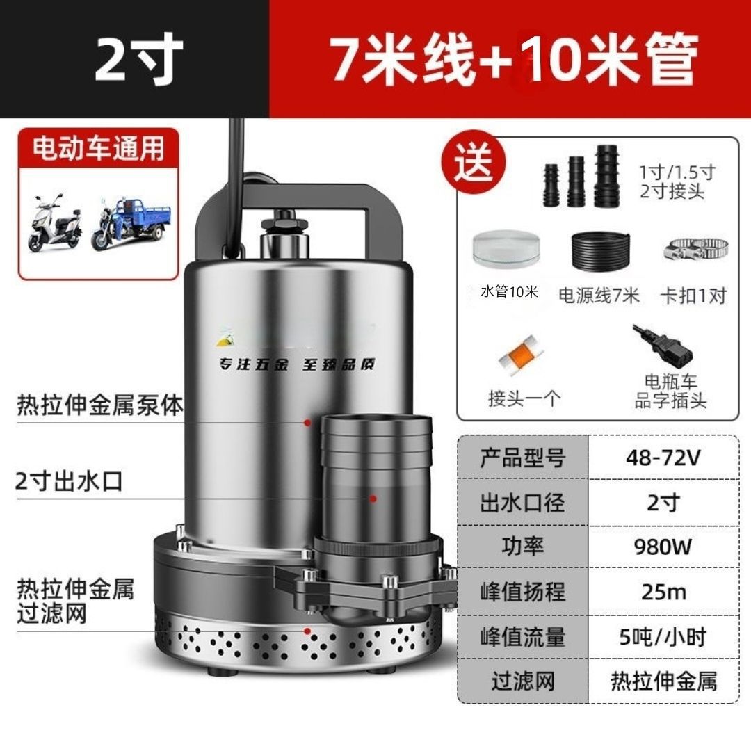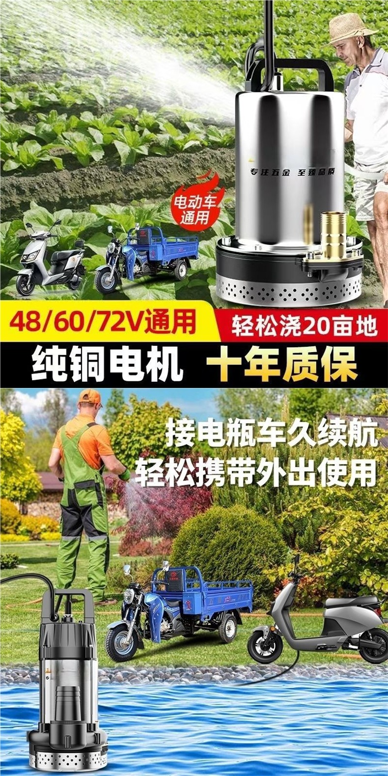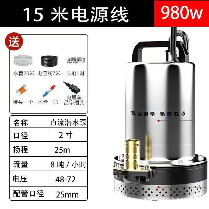 Погружной насос постоянного тока для электромобилей, универсальный бытовой водяной насос 48-72, сельскохозяйственный аккумуляторный водяной насос для орошения и бытового использования.