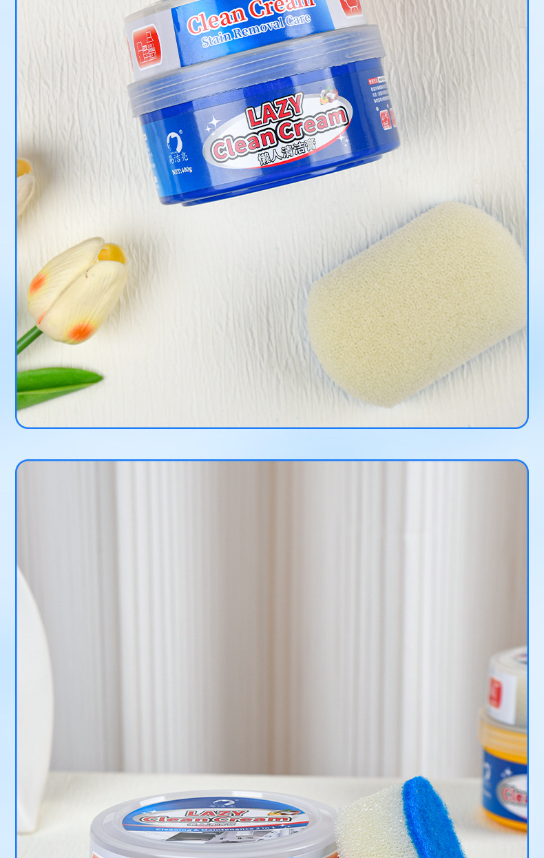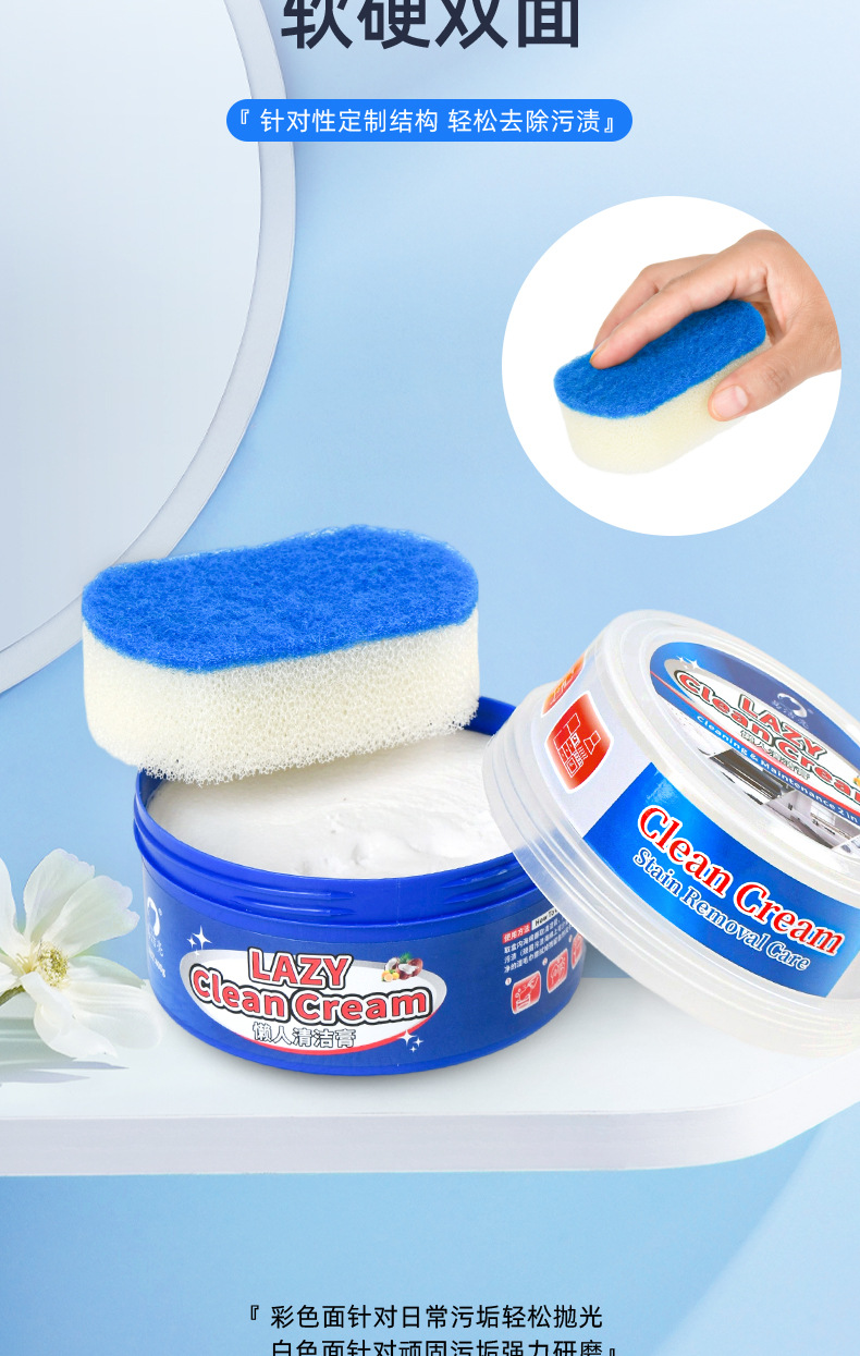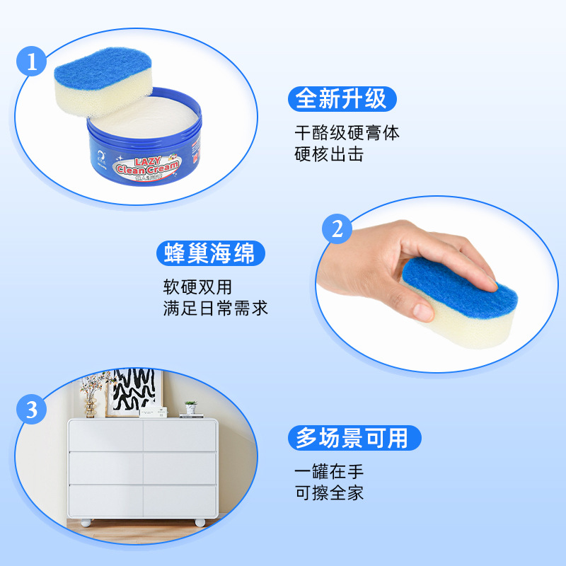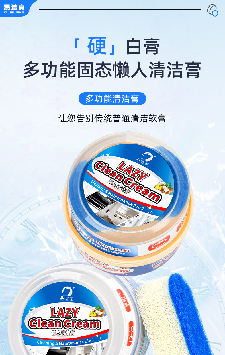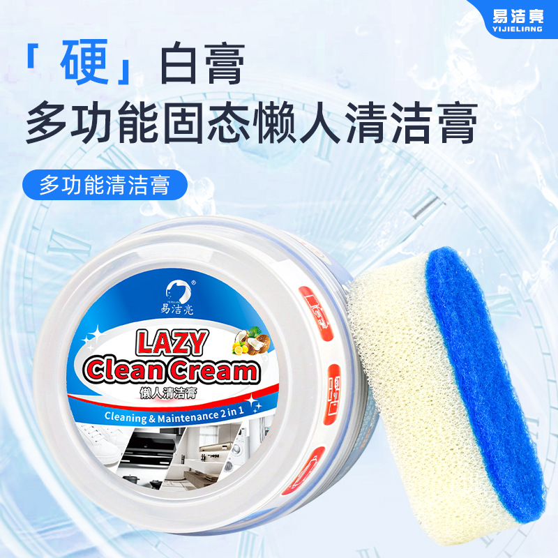 Yijieliang 400 г ленивый чистящий крем синяя прозрачная коробка; Yijieliang 400 г ленивый чистящий крем желтая коробка; Синяя чистящая подушечка из люфы из хлопка для чистки пасты.