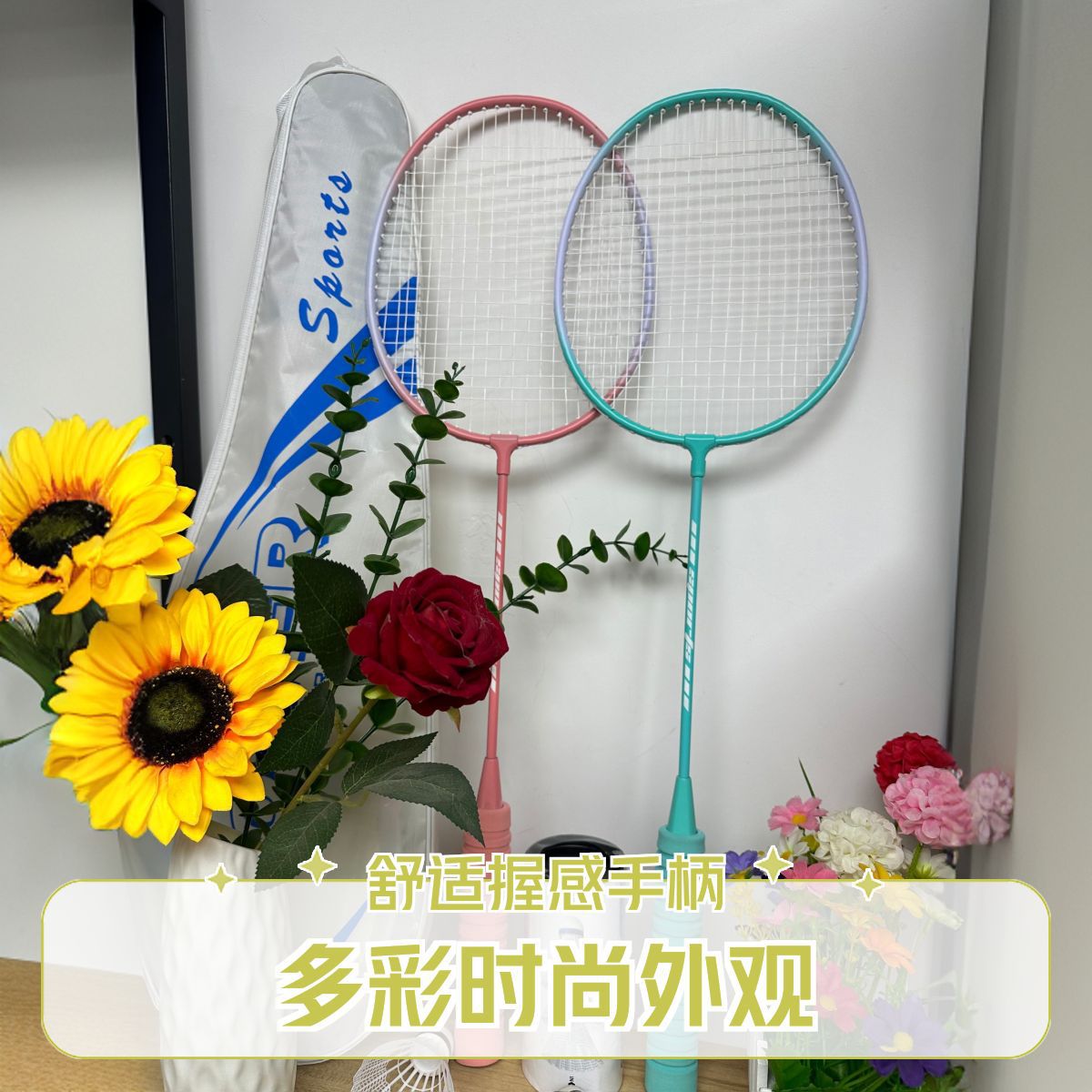 [Ручка-губка] светло-зеленый + розовый / в подарок 3 мяча + сумка для ракетки