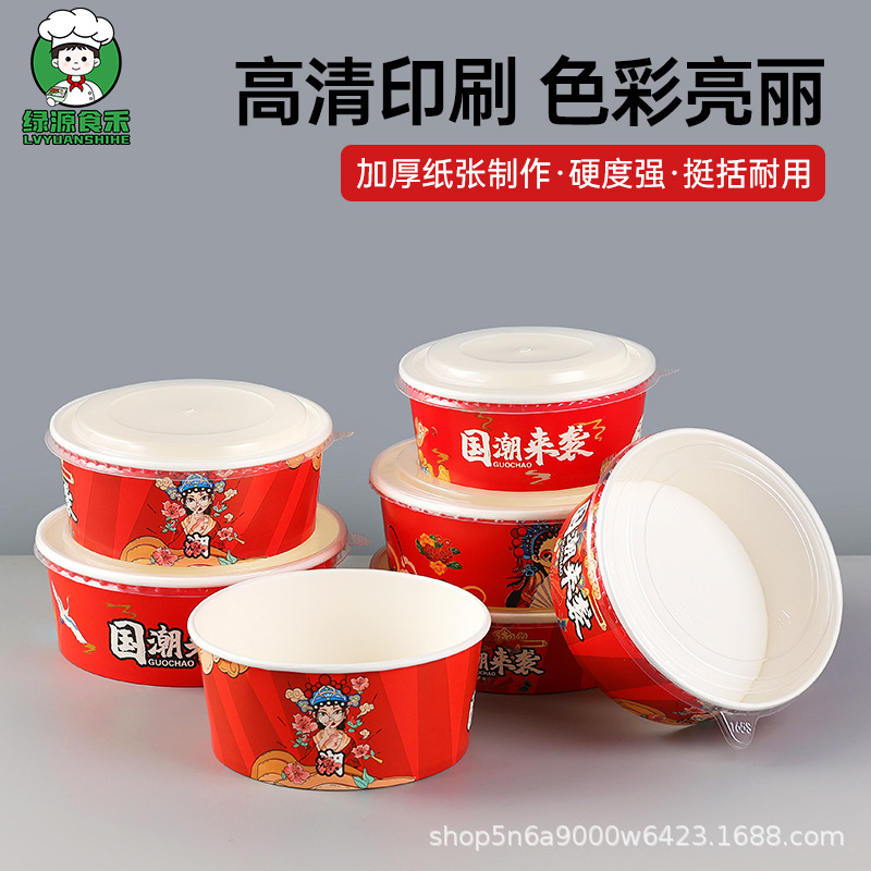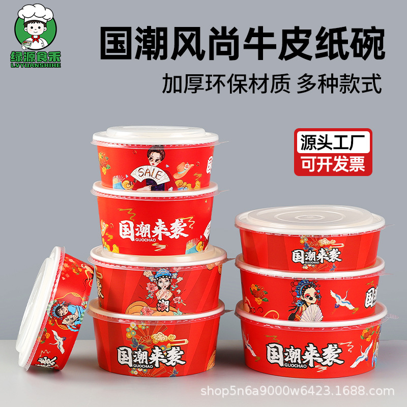Одноразовая упаковочная коробка из крафт-бумаги в китайском стиле, салат, барбекю, бибимбап, бумажная миска на вынос, крышка из свиных копчений, рис, ланч-бокс