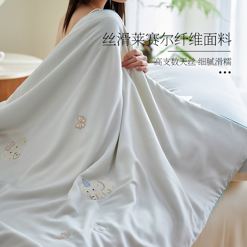 Летнее прохладное одеяло класса A Lenzing Tencel, комплект из четырех предметов, шелковистое одиночное маленькое свежее летнее одеяло, соевое моющееся одеяло с кондиционером