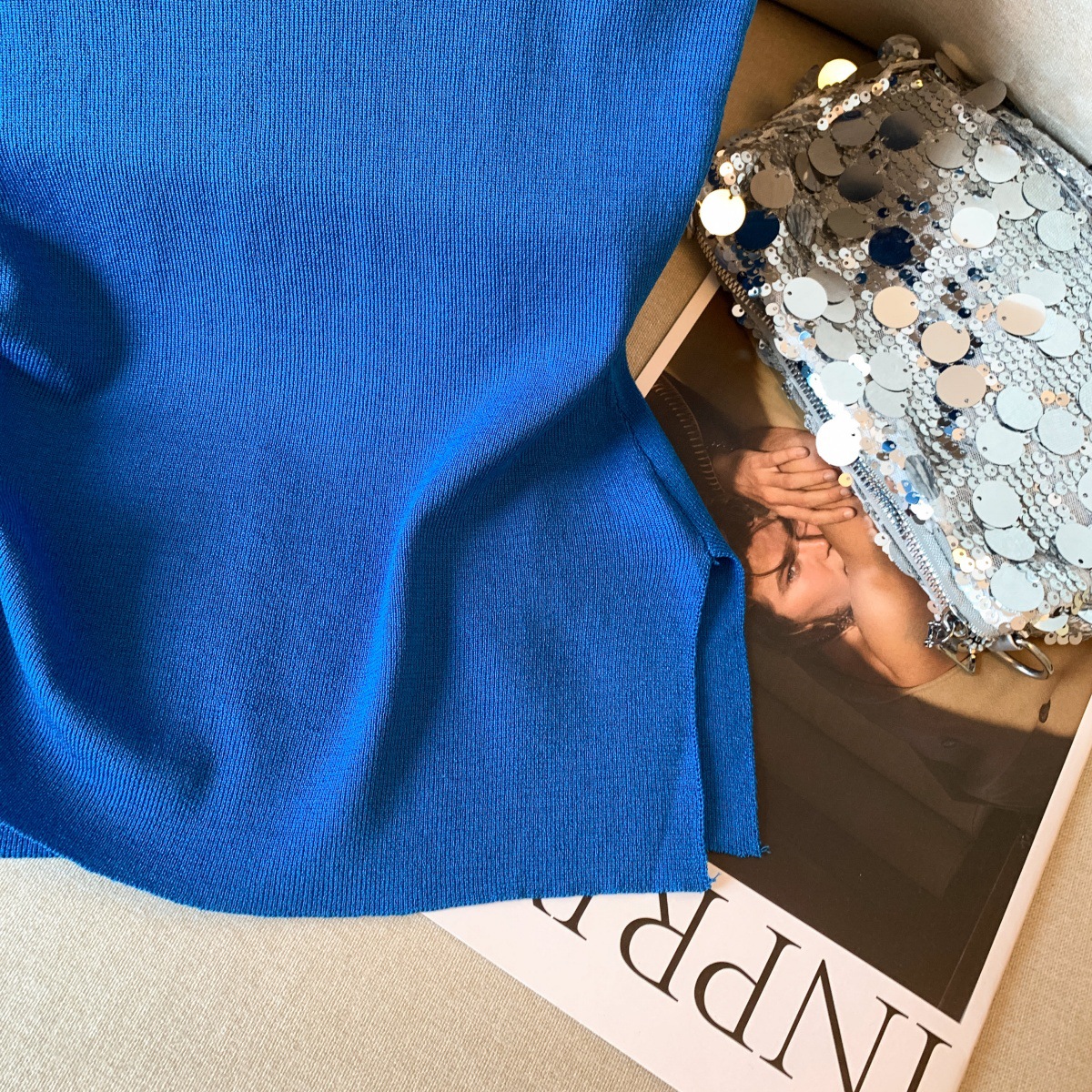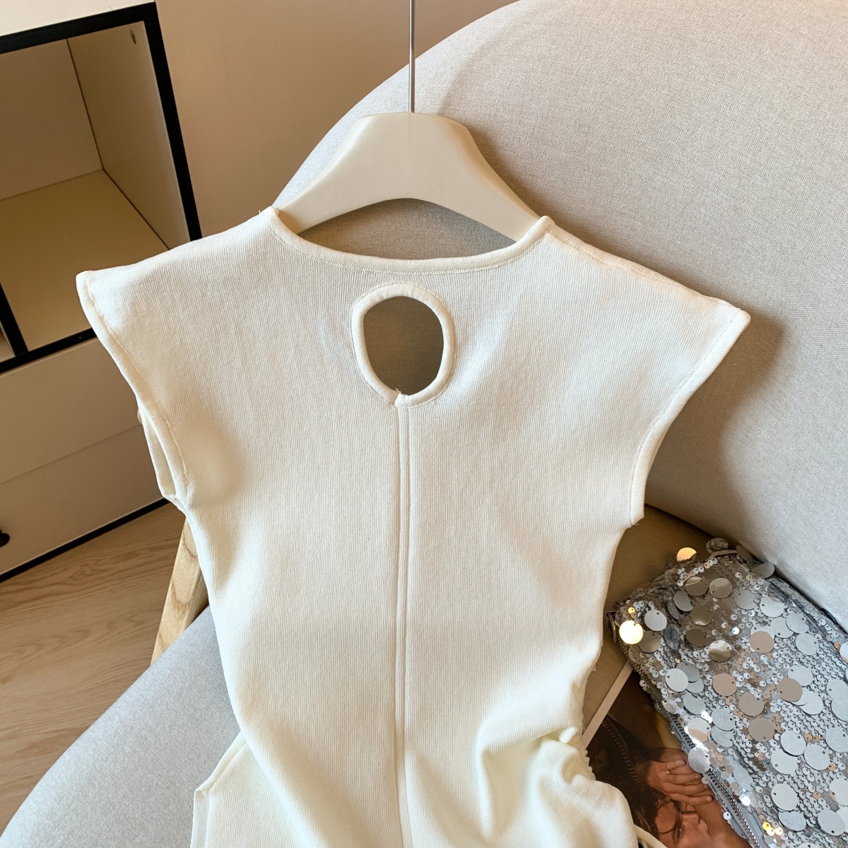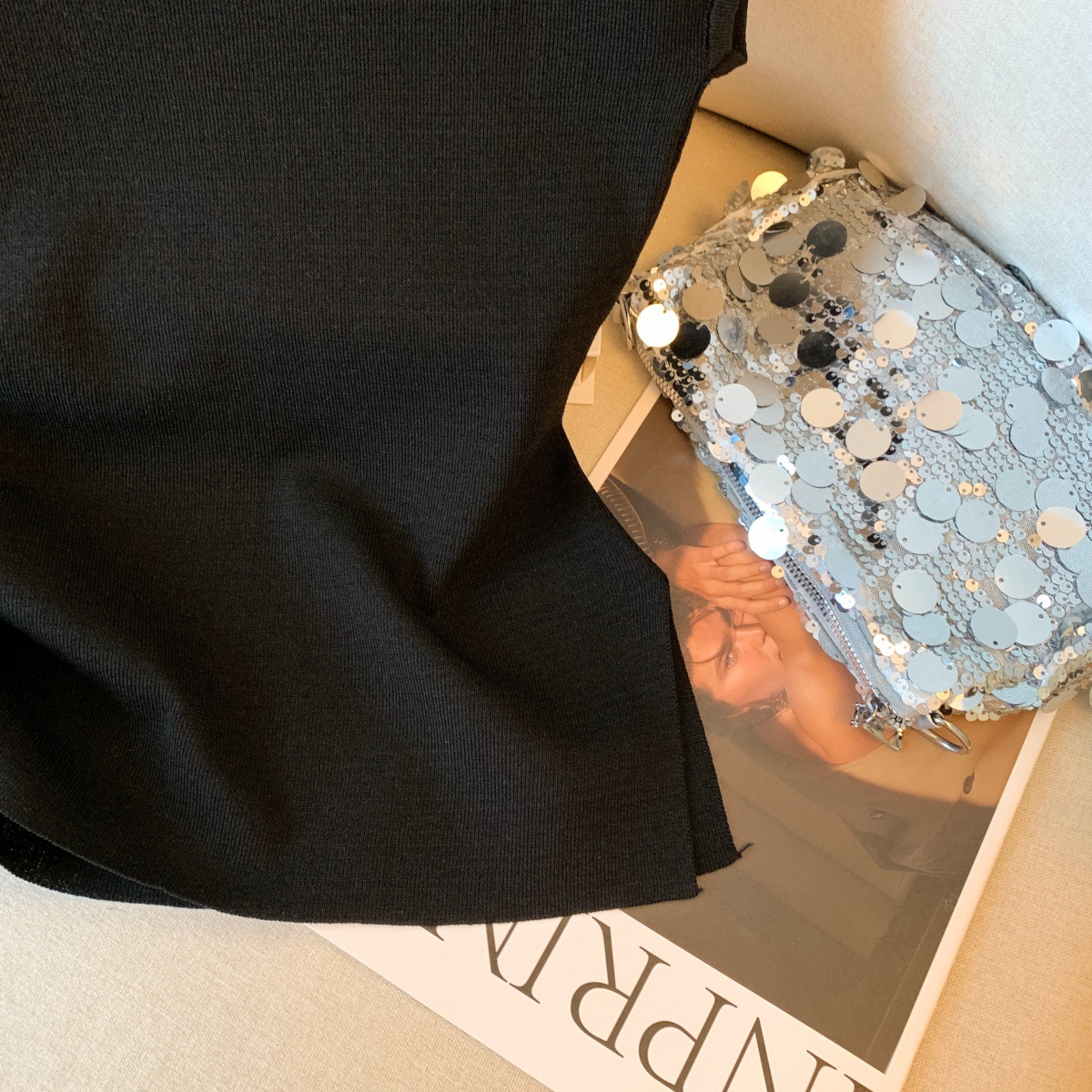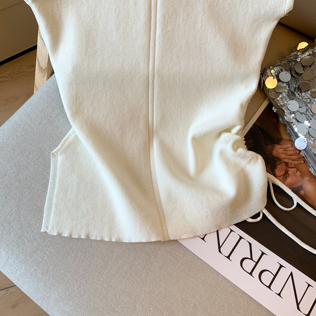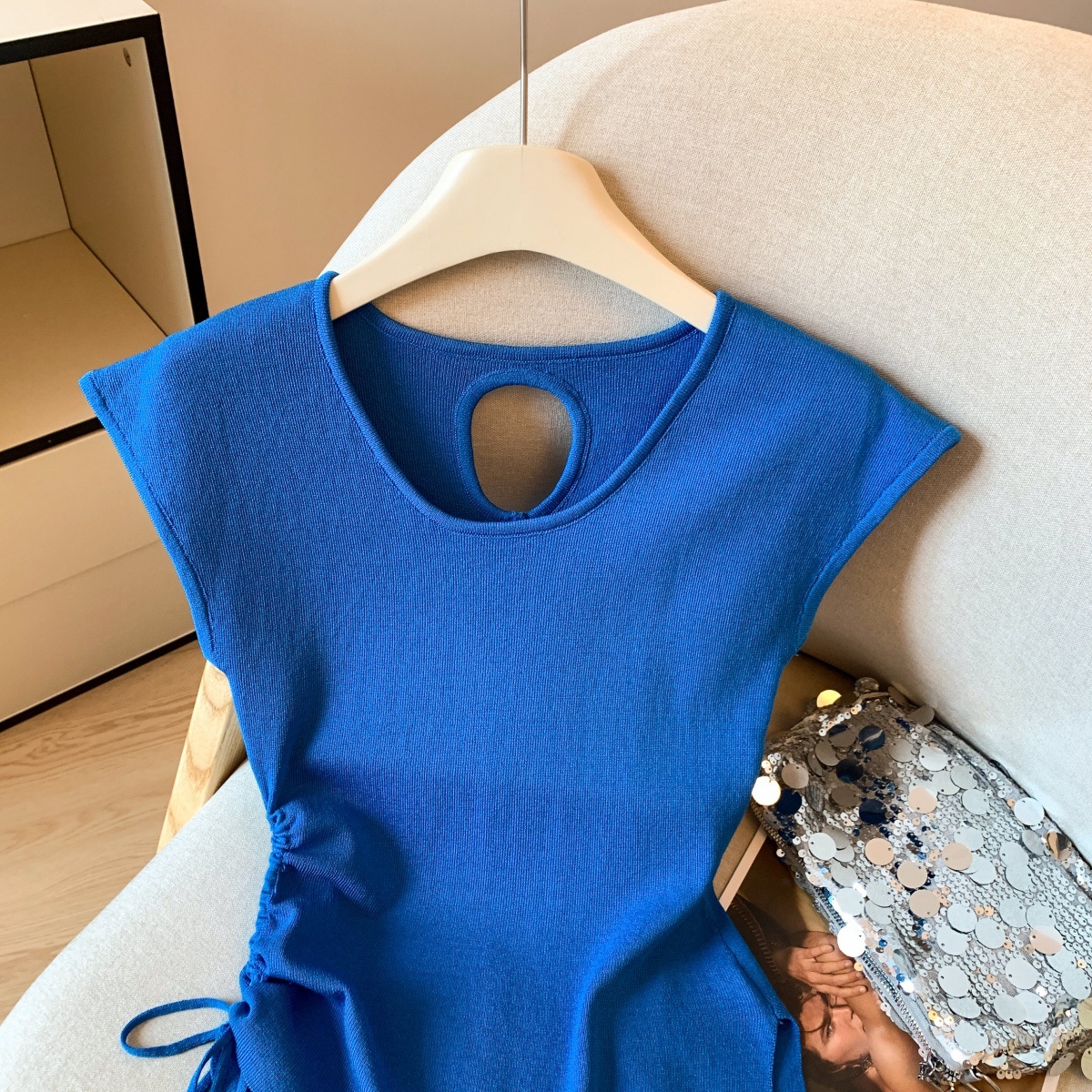Настоящая фотография корейского трикотажа из полого ледяного шелка для женщин, облегающий крой, шнурок, асимметричный дизайн, топ с короткими рукавами.
