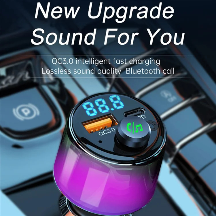 Автомобильный Bluetooth-передатчик Автомобильное MP3 FM Bluetooth Автомобильное зарядное устройство PD30W + QC18W Быстрая зарядка окружающего света BC90