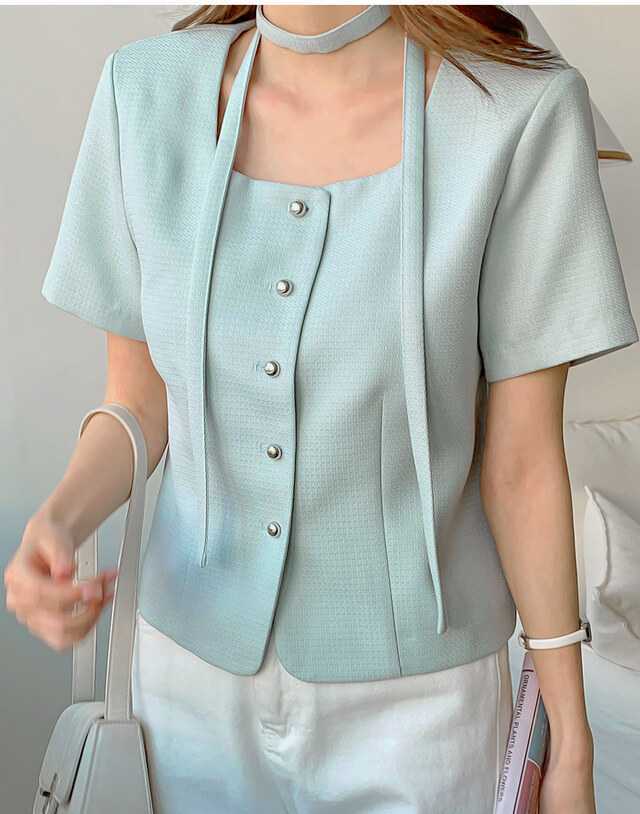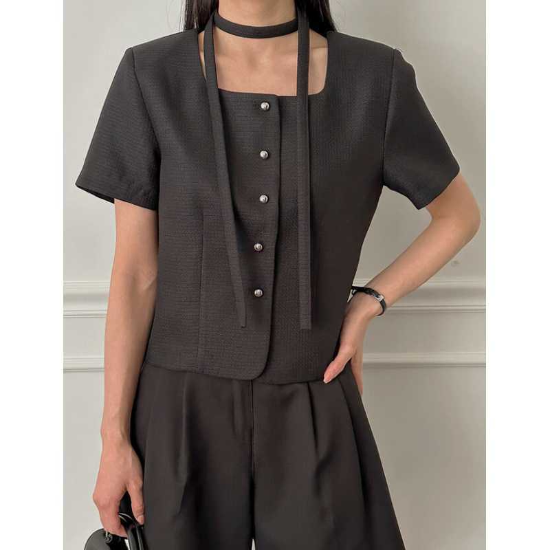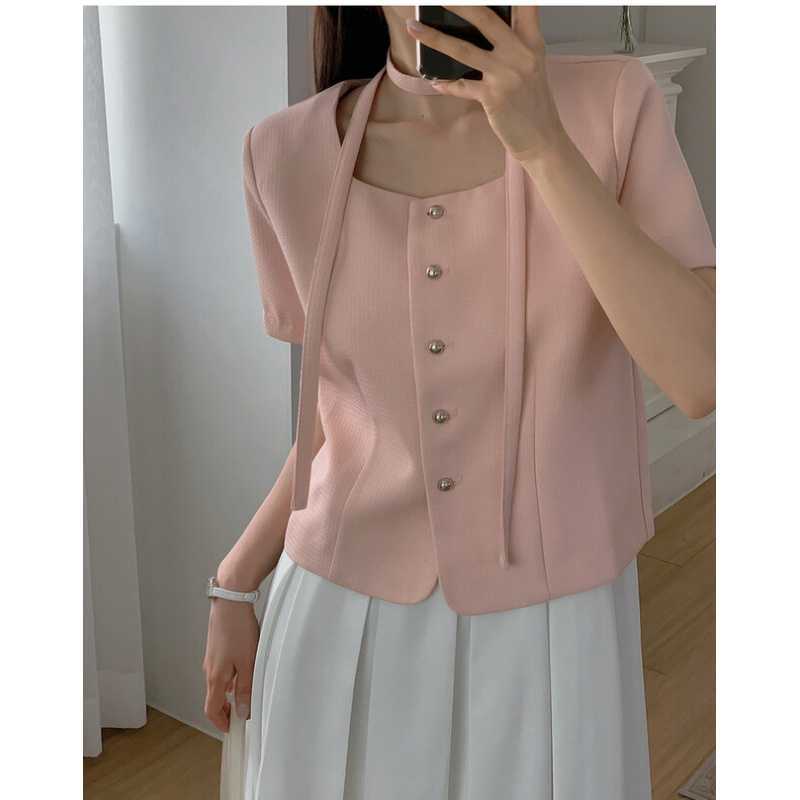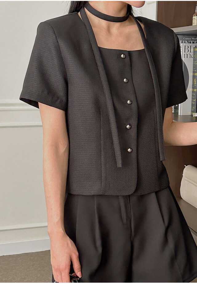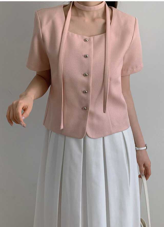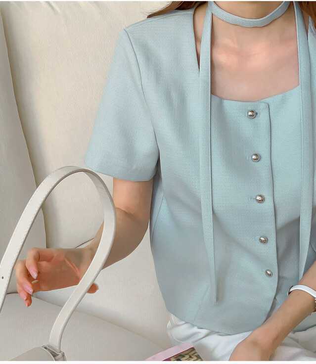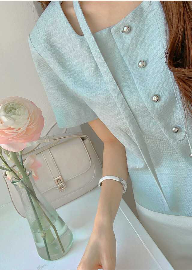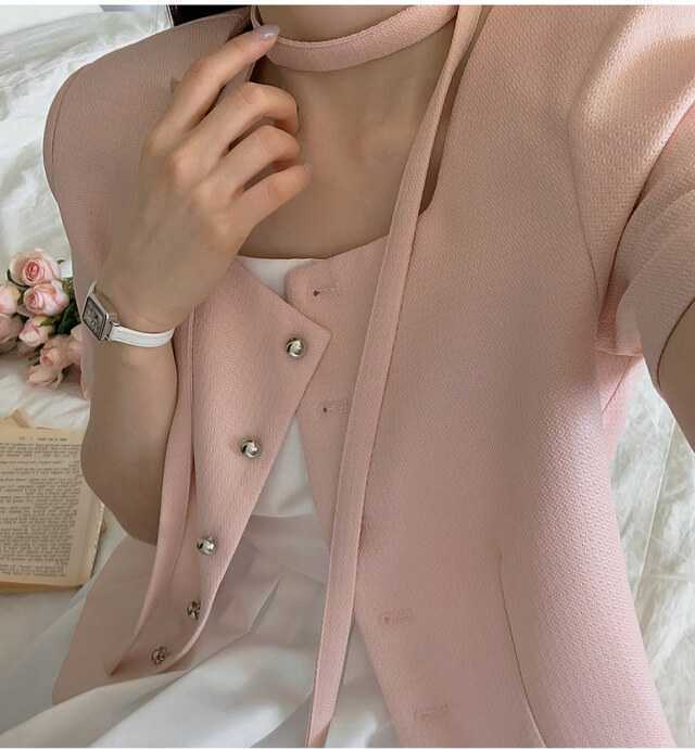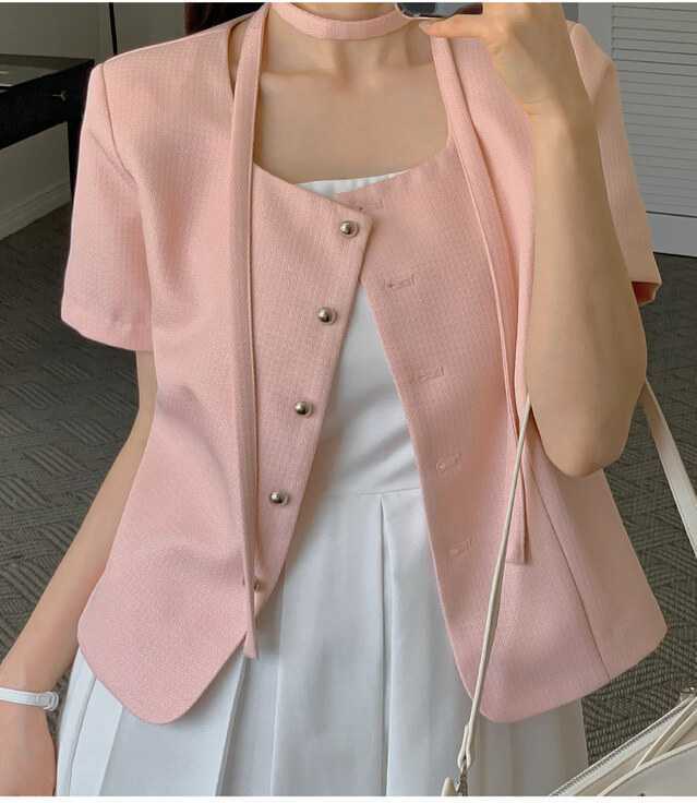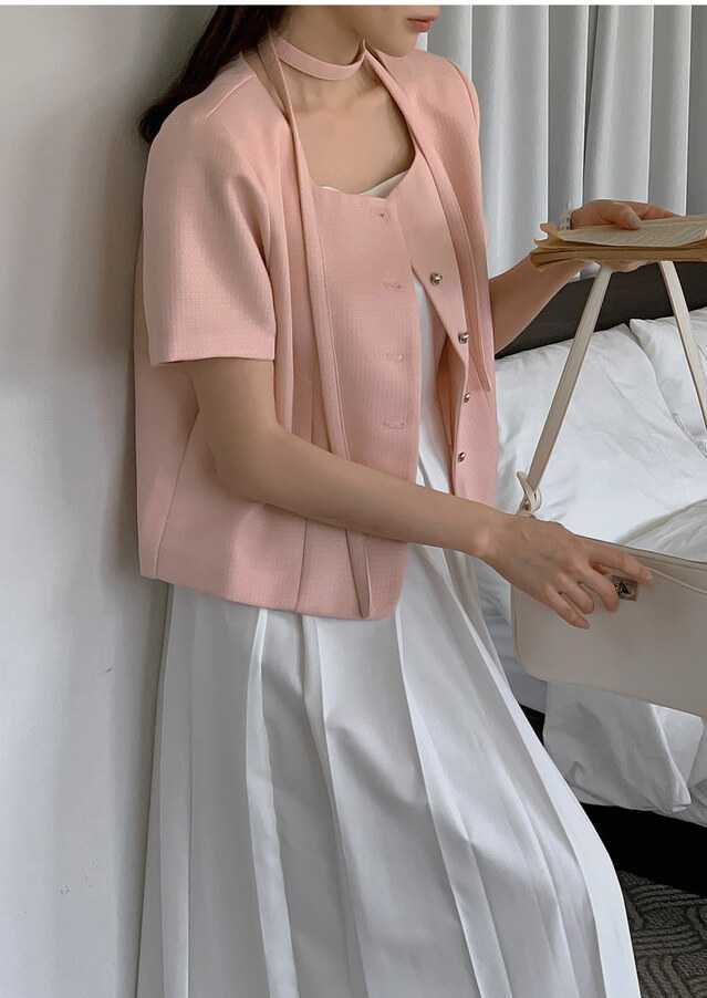 В наличии Корейский шикарный однобортный твидовый жакет в стиле Chanel с круглым вырезом и лентой во французском стиле.