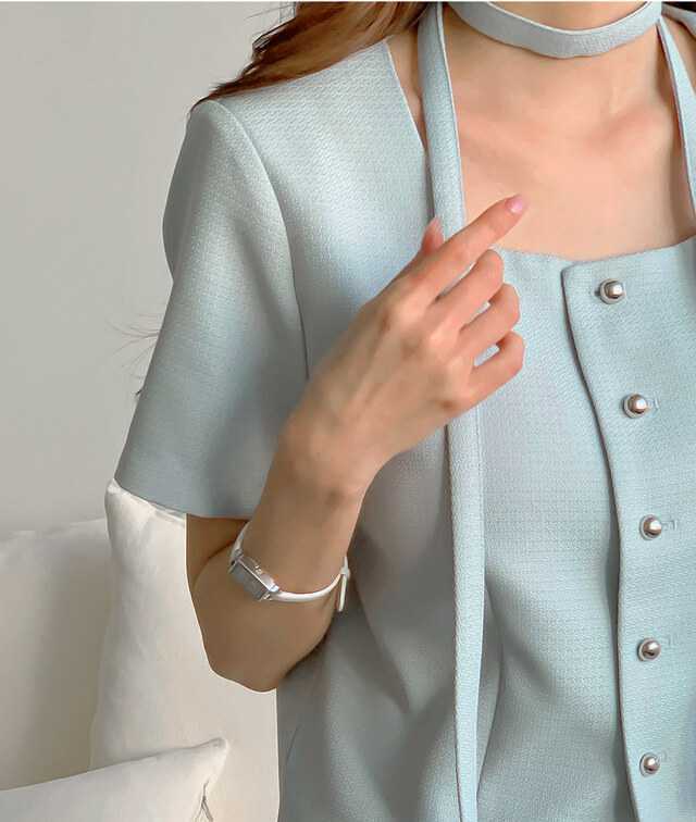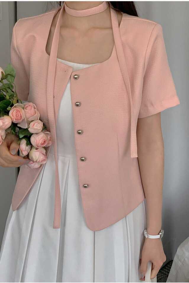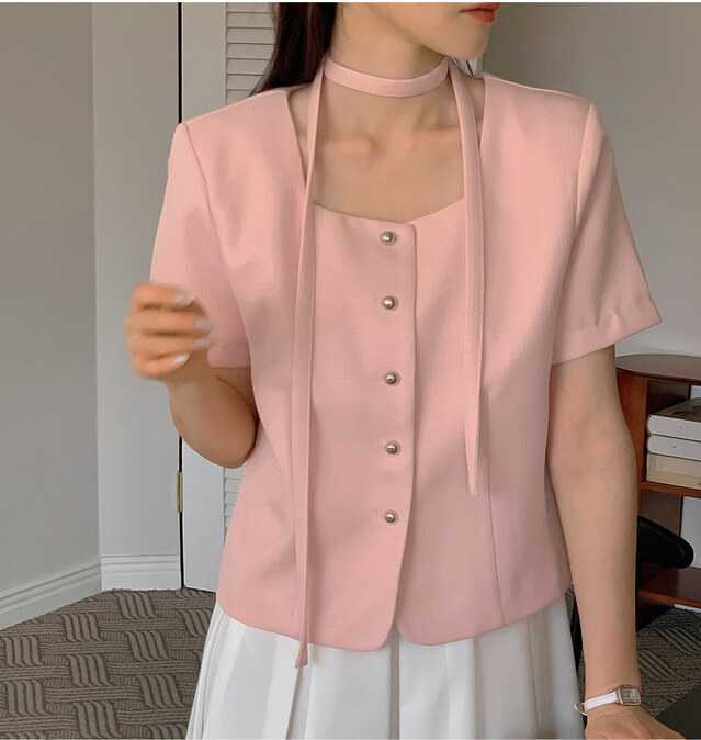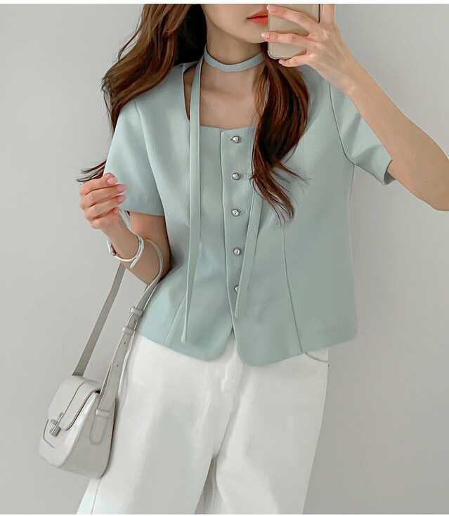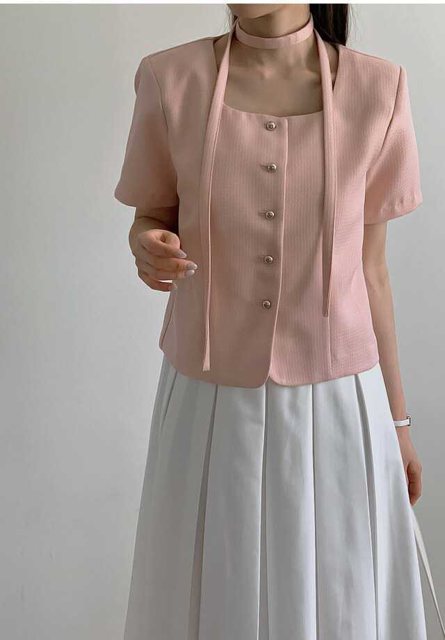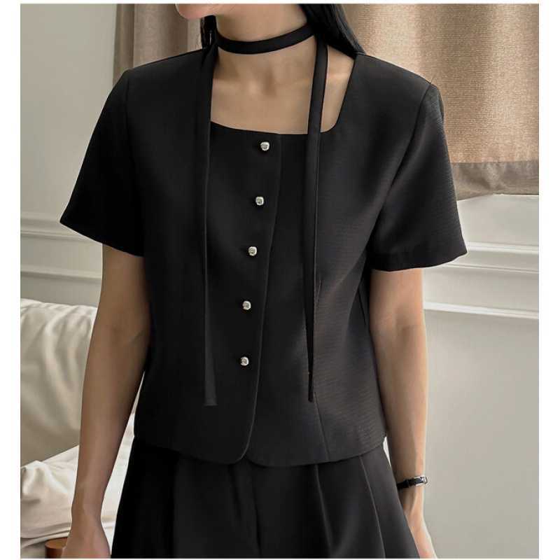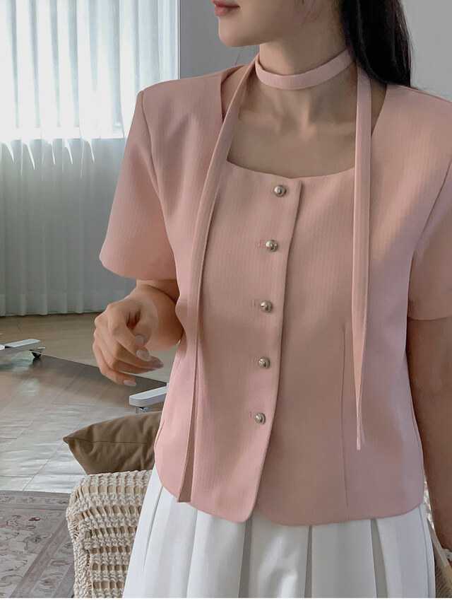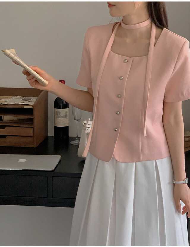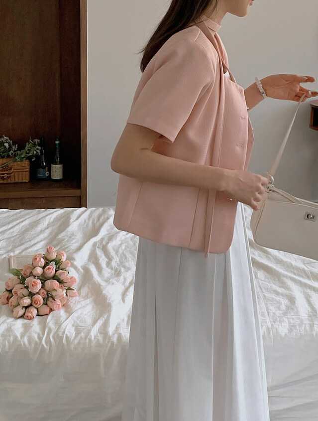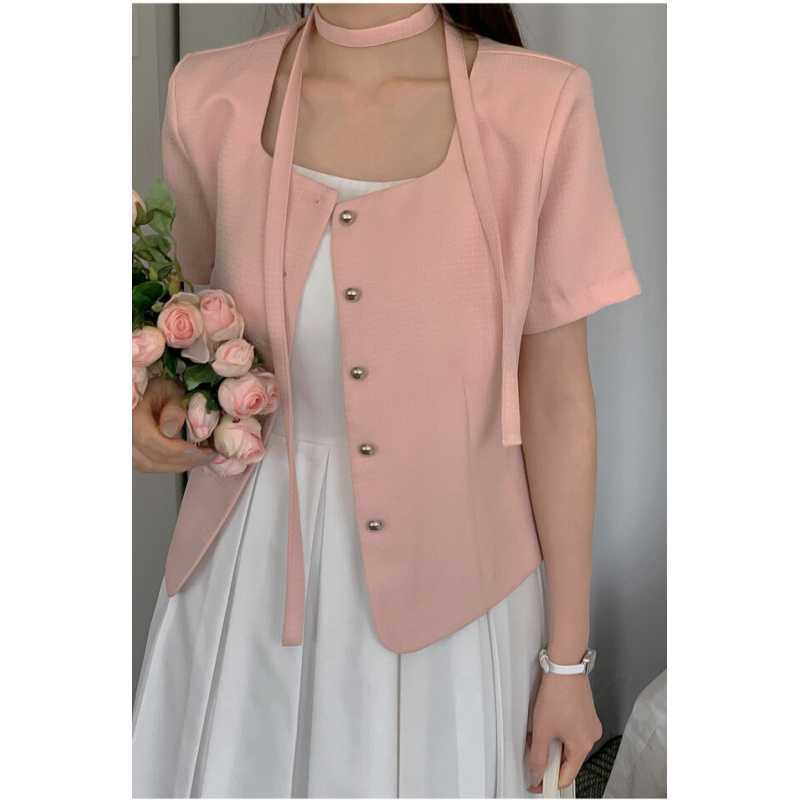 В наличии Корейский шикарный однобортный твидовый жакет в стиле Chanel с круглым вырезом и лентой во французском стиле.