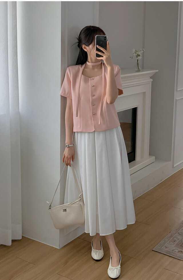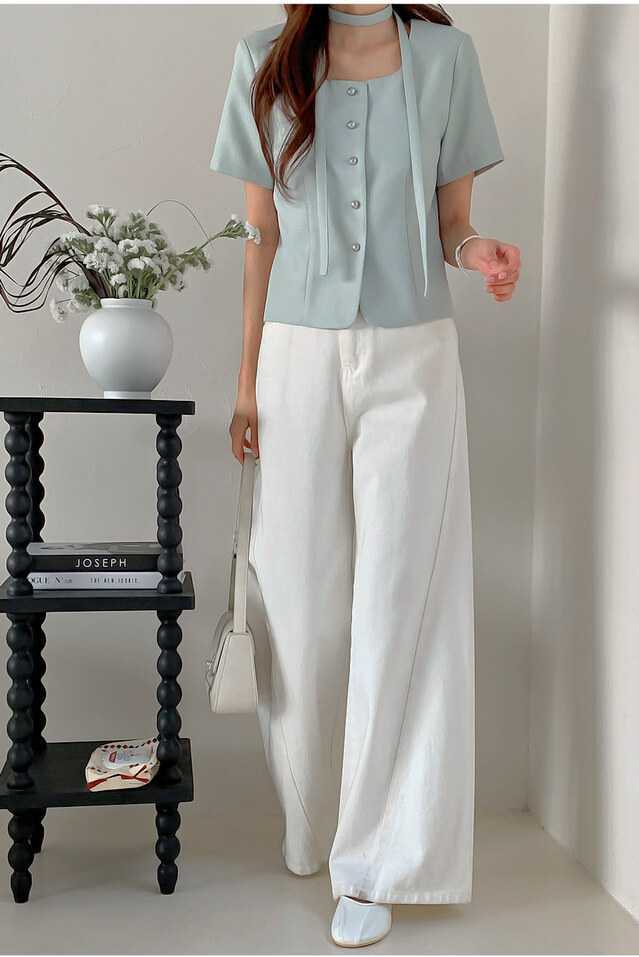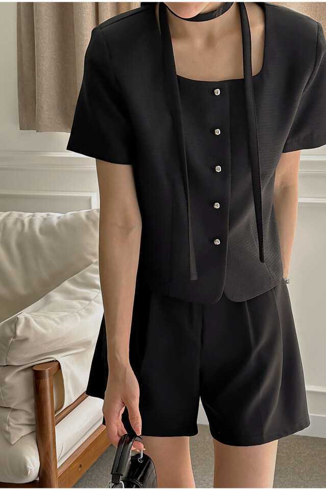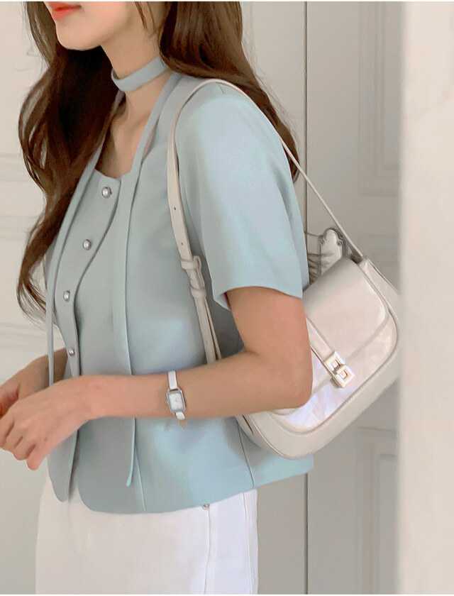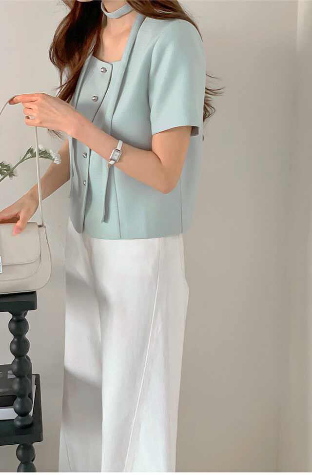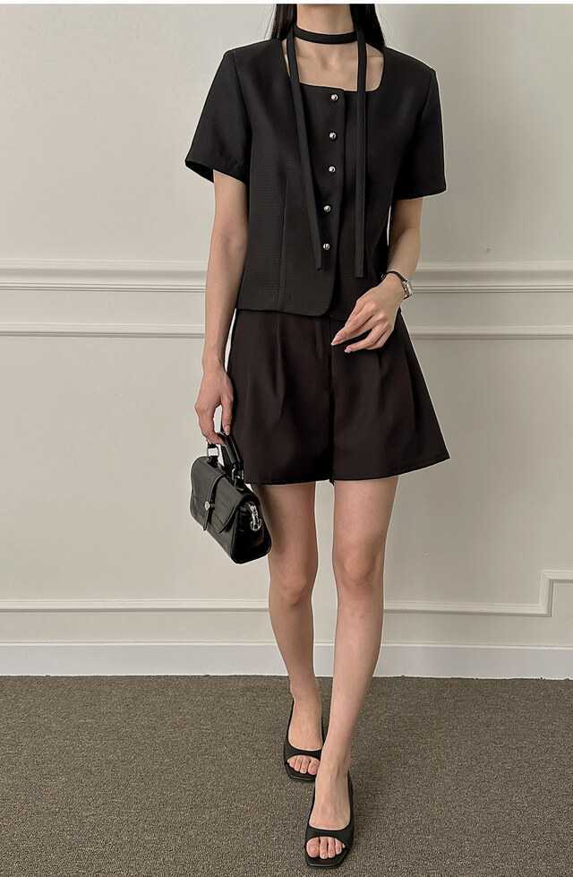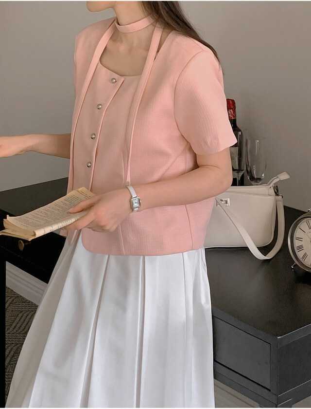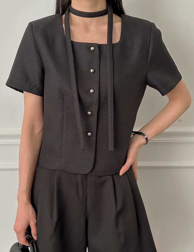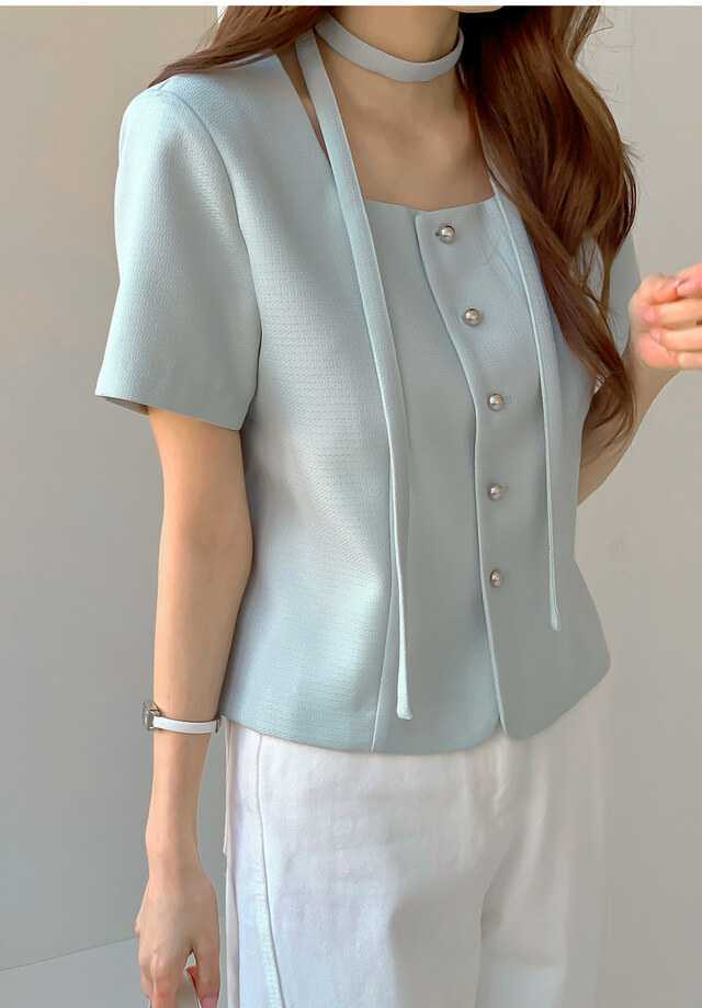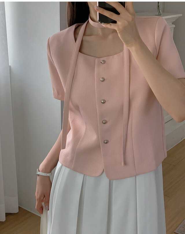 В наличии Корейский шикарный однобортный твидовый жакет в стиле Chanel с круглым вырезом и лентой во французском стиле.