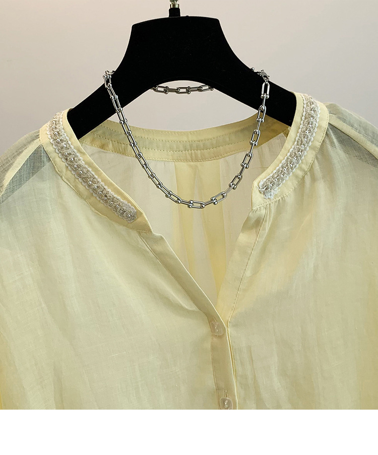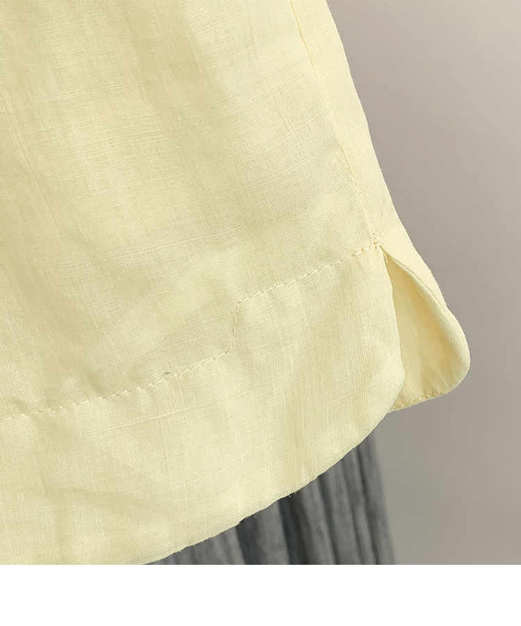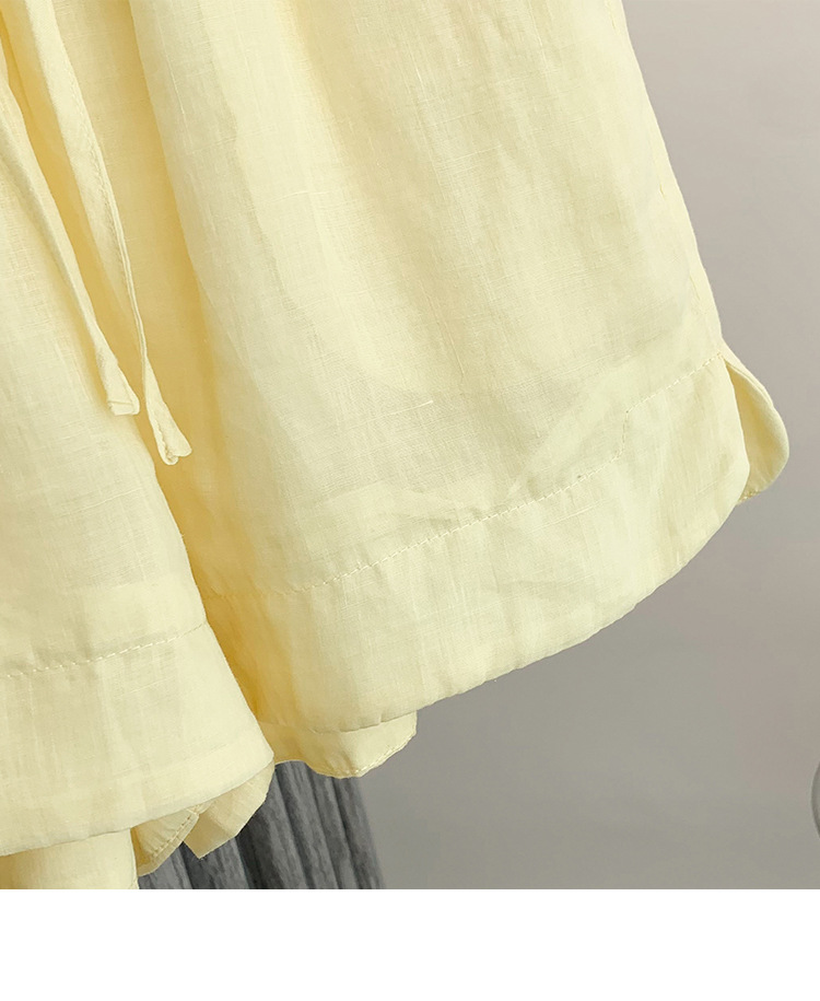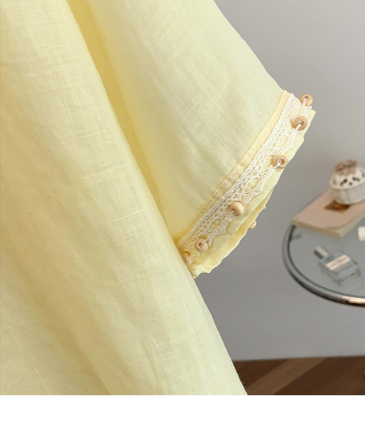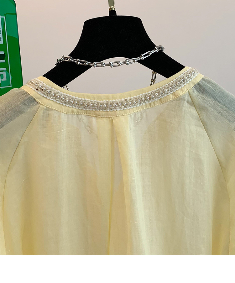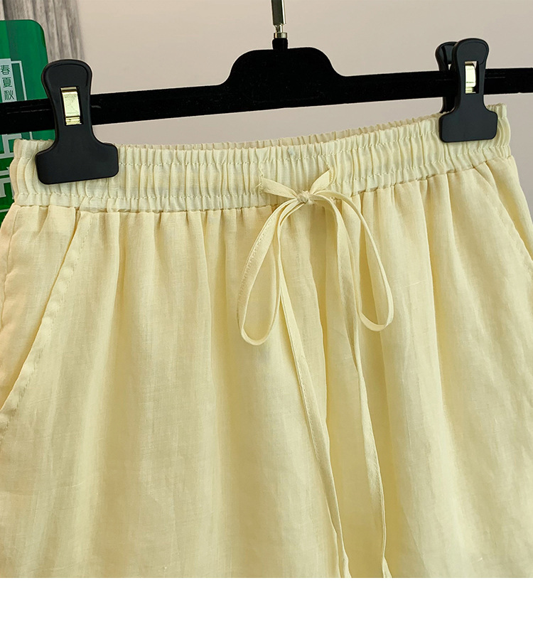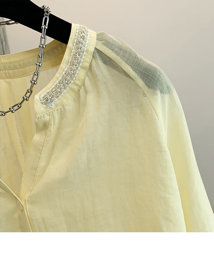 Настоящее фото нового повседневного женского костюма из чистого хлопка, рубашки с бисером, универсальных шорт с короткими рукавами и свободного топа в ленивом стиле.