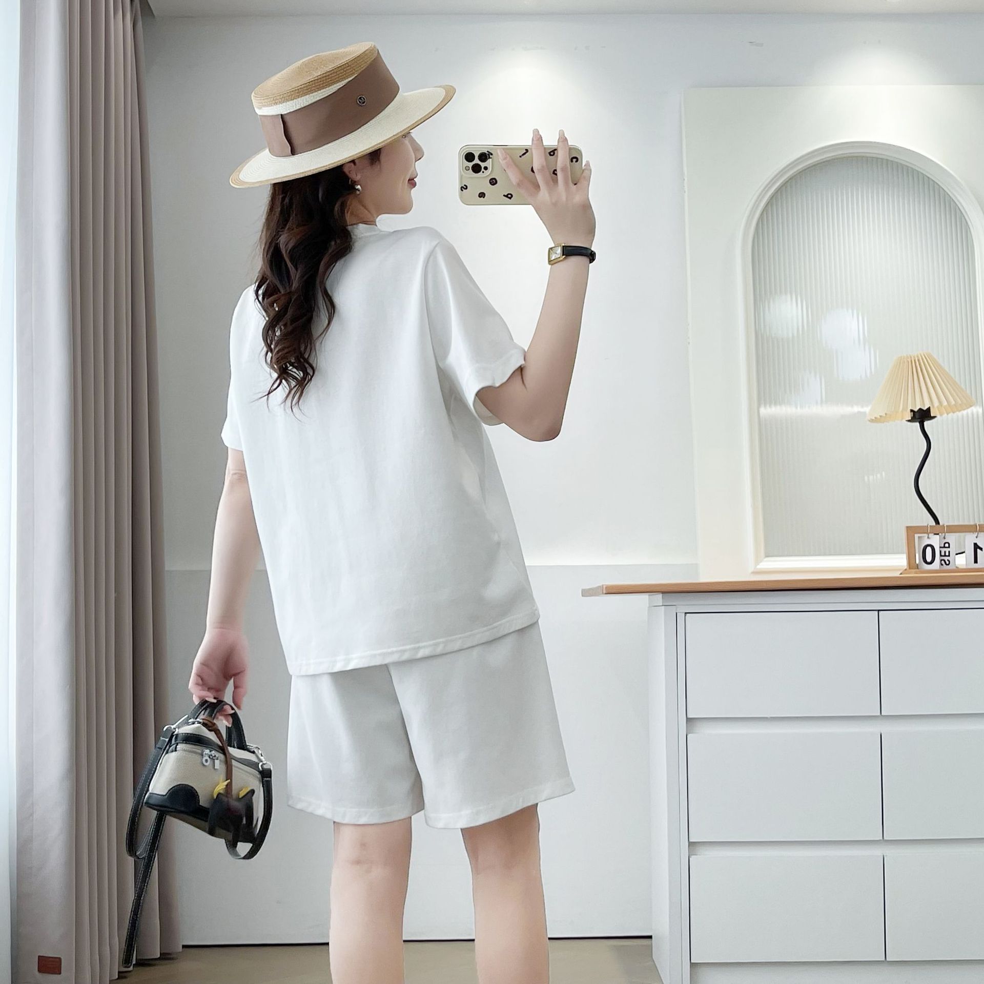 Летний костюм 2025 года больших размеров из хлопчатобумажной ткани, модный повседневный костюм для полных женщин, клетчатый свободный повседневный комплект с коротким рукавом и шортами 6208
