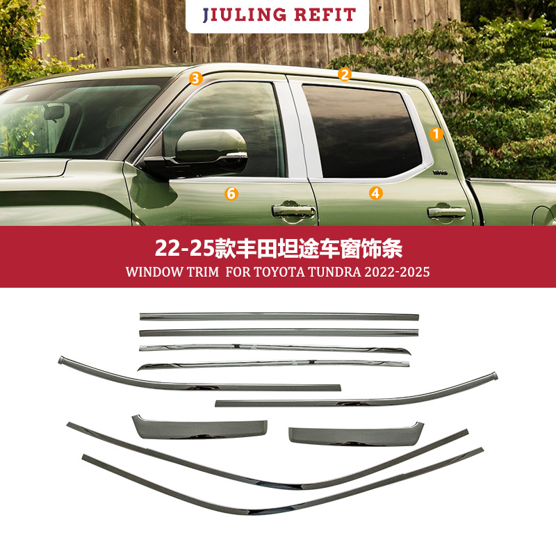 Подходит для Toyota Tundra 22-25 годов выпуска, модифицированная отделка окон, черно-серебряная дверная рама, хромированные декоративные защитные аксессуары