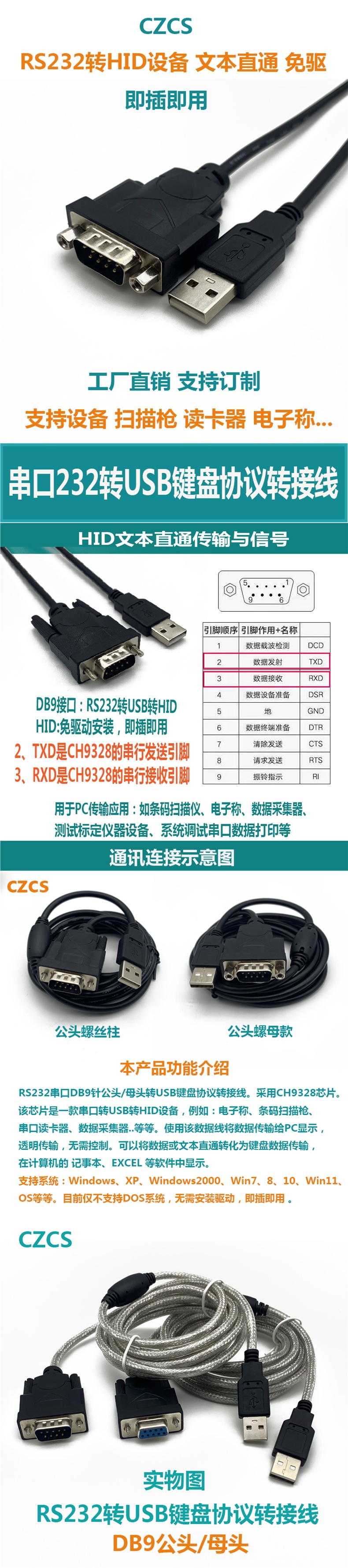 232 последовательный порт для преобразования протокола USB-клавиатуры RS232 в устройство HID для цифрового весового сканера без драйверов