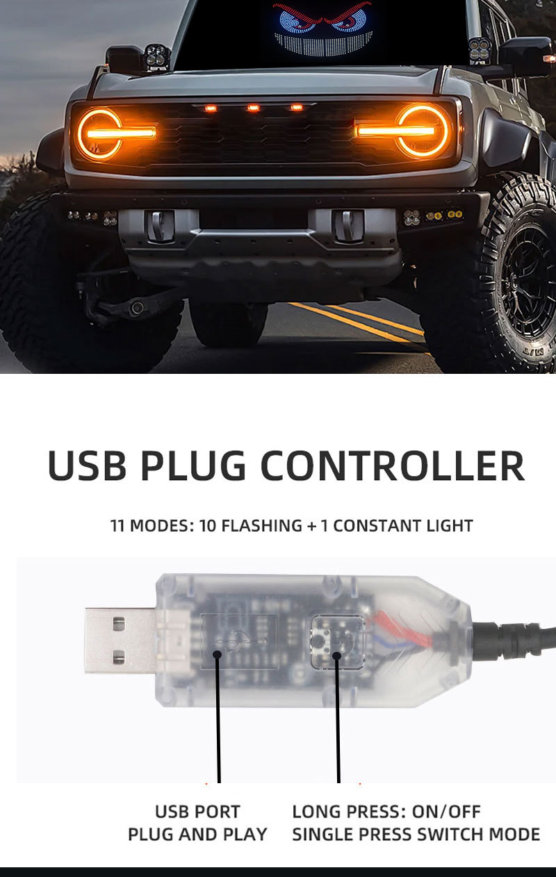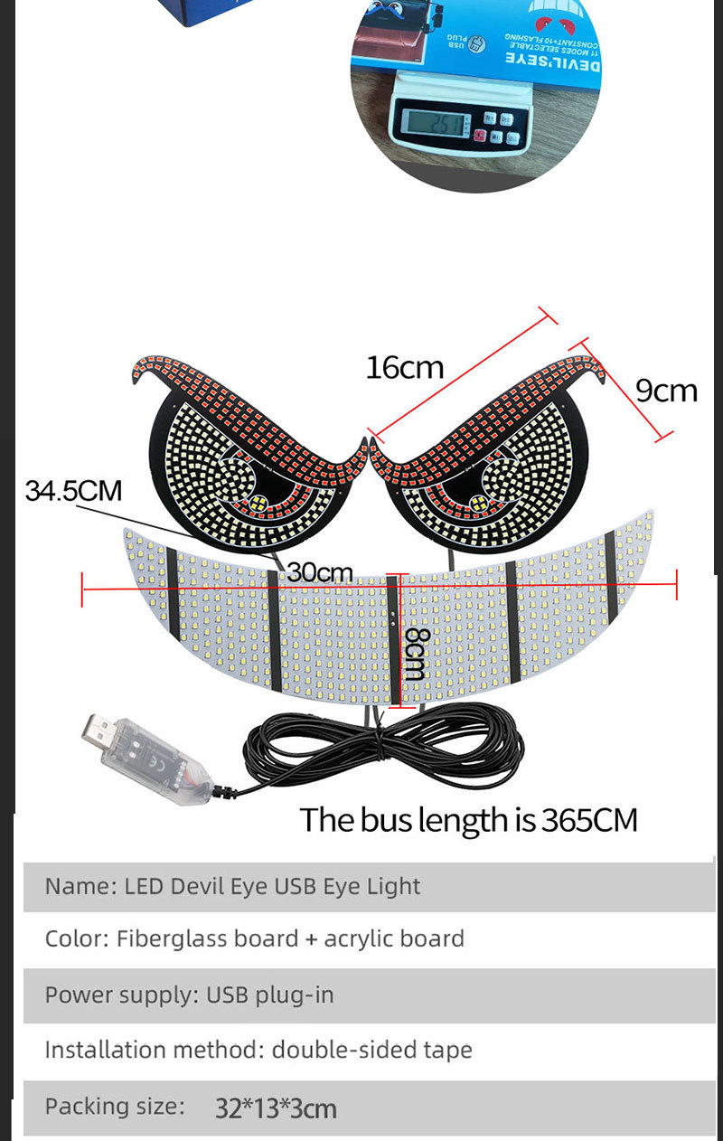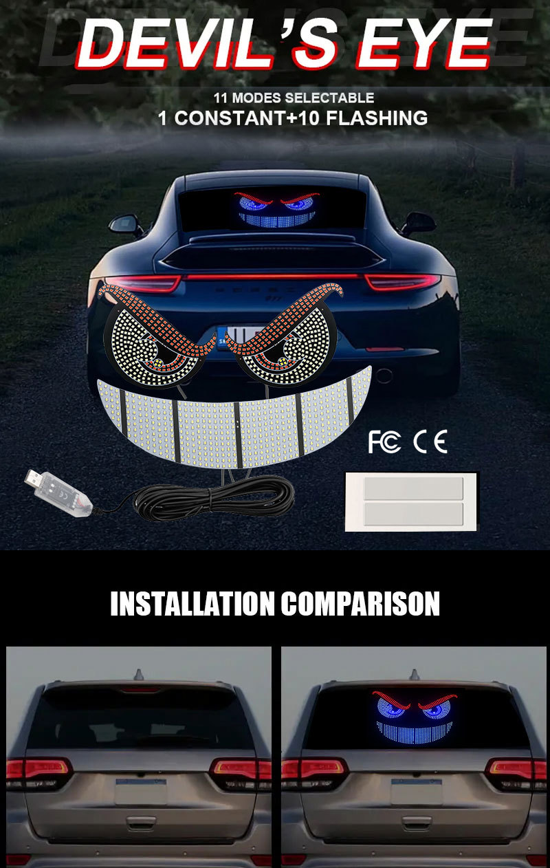 Новая USB-наклейка для автомобиля с динамической подсветкой "Глаз дьявола", светодиодный дисплей для грузовиков и автомобилей, передние и задние стеклянные фары.