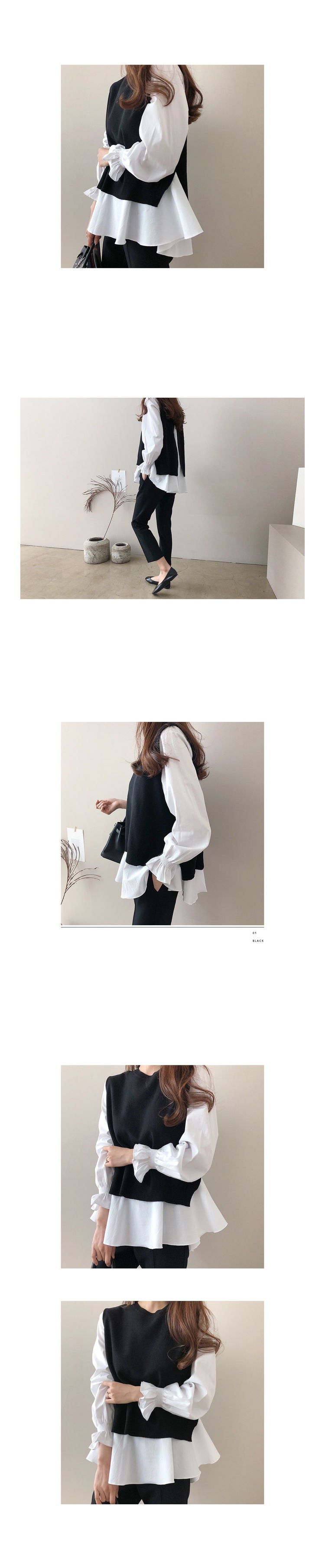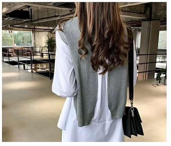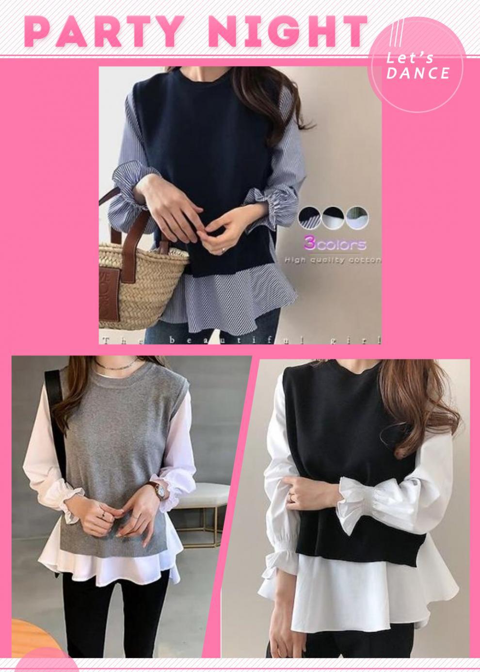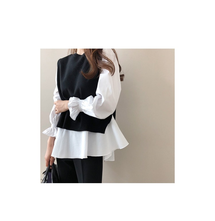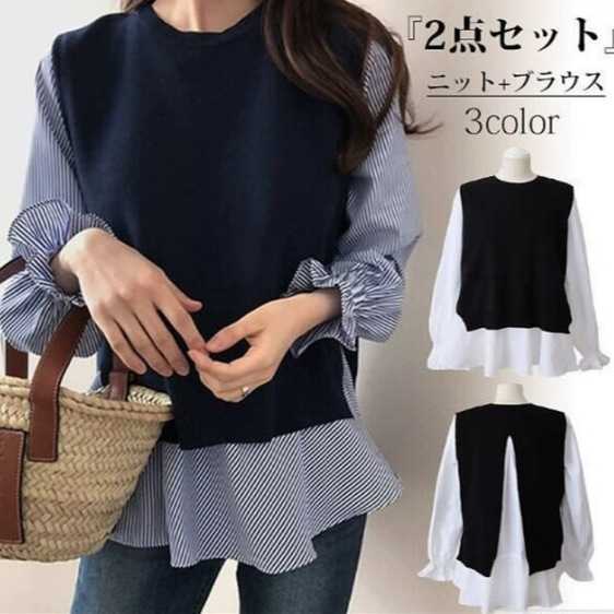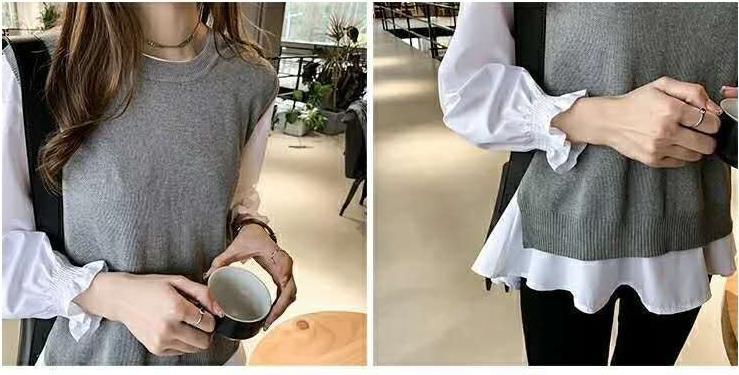 Женская одежда для внешней торговли в японском и корейском стиле, популярные топы больших размеров на осень и зиму, женская рубашка из двух частей с длинными рукавами и вязаным жилетом