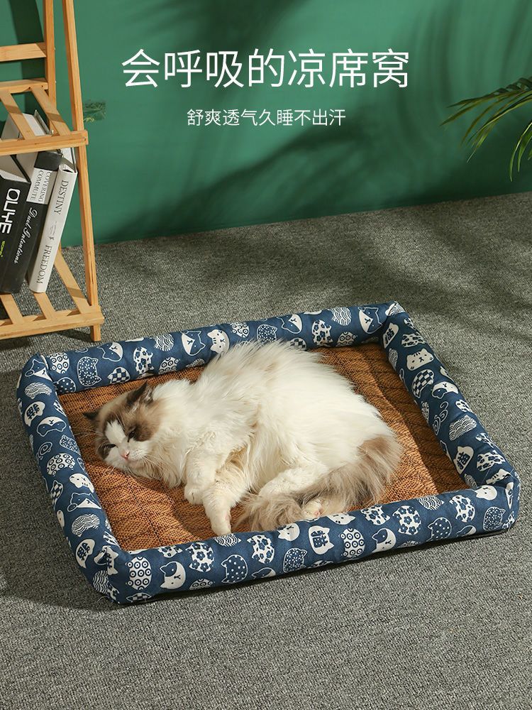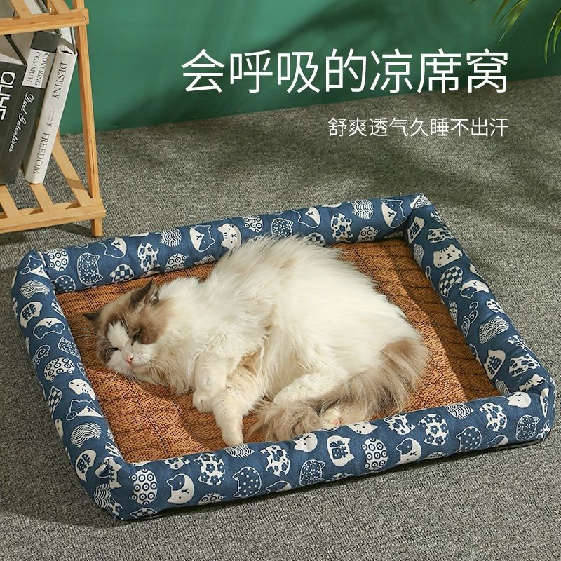 Летний коврик для кошачьей будки, квадратная будка, универсальный четырехсезонный коврик из ротанга, устойчивый к царапинам и укусам коврик для кошек и собак, охлаждающая кровать