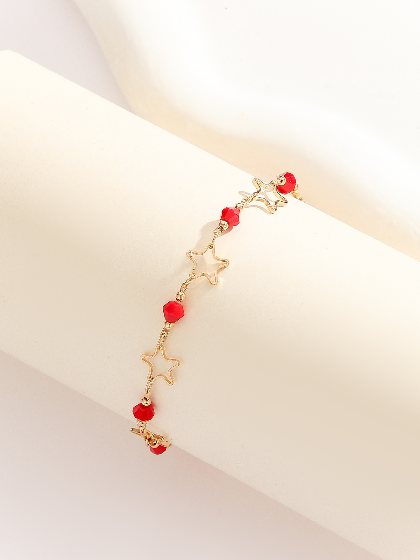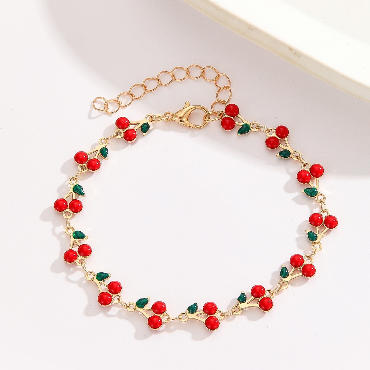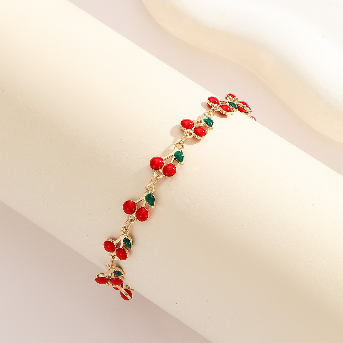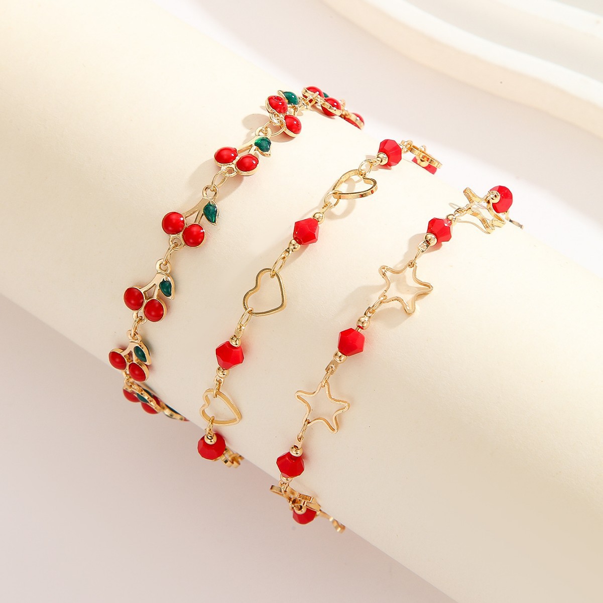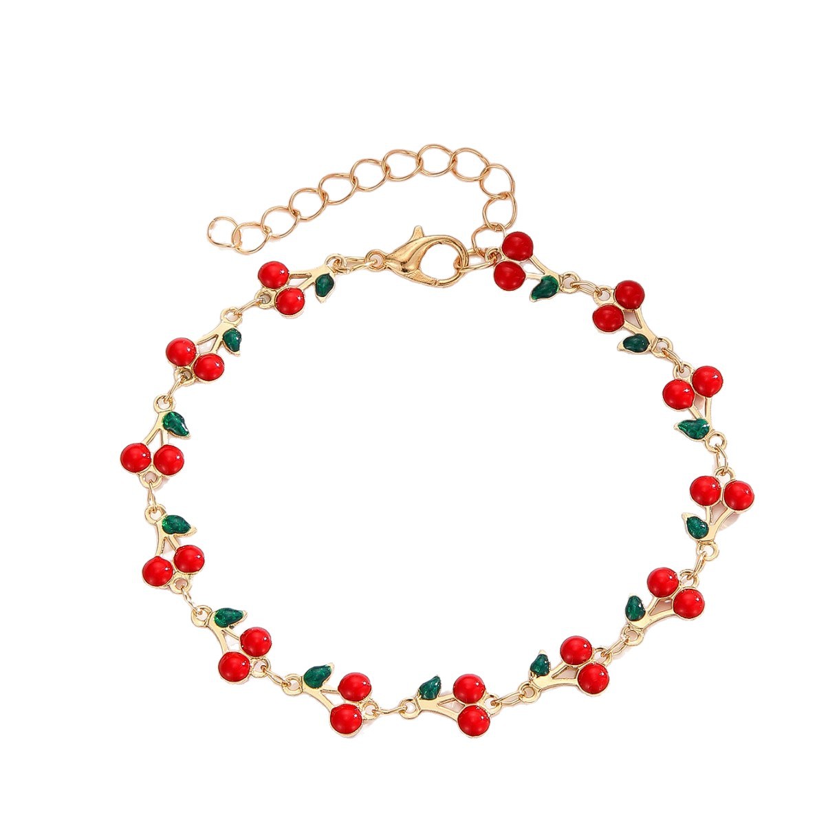 Корейский модный красный кристалл вишневый полый браслет с пятиконечной звездой, модный фруктовый браслет, производитель, оптовая продажа
