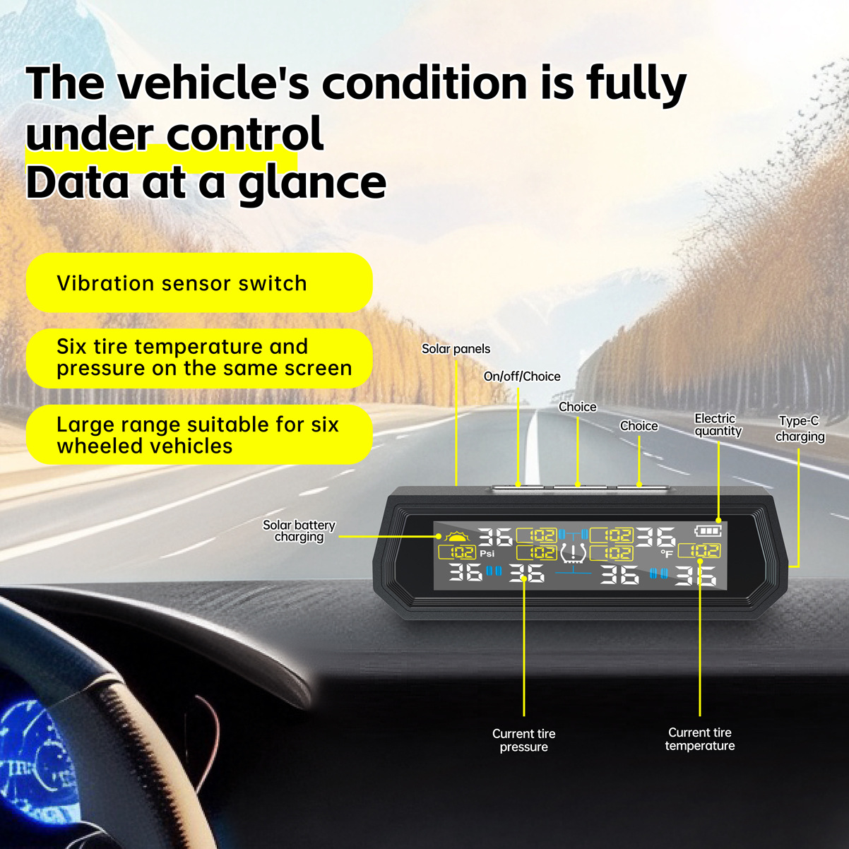 T17-6 колесо солнечная шина мониторинг давления в шинах обновление атмосферного давления 9,9 бар 144 фунтов на квадратный дюйм RV шесть давление в шинах