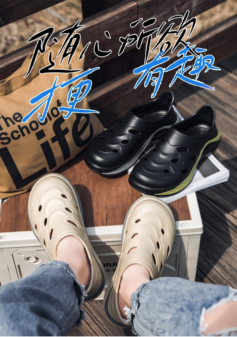 Мужские сабо больших размеров, летние, из ЭВА, на каблуке-сумке, дышащие, для улицы, с мягкой нескользящей подошвой