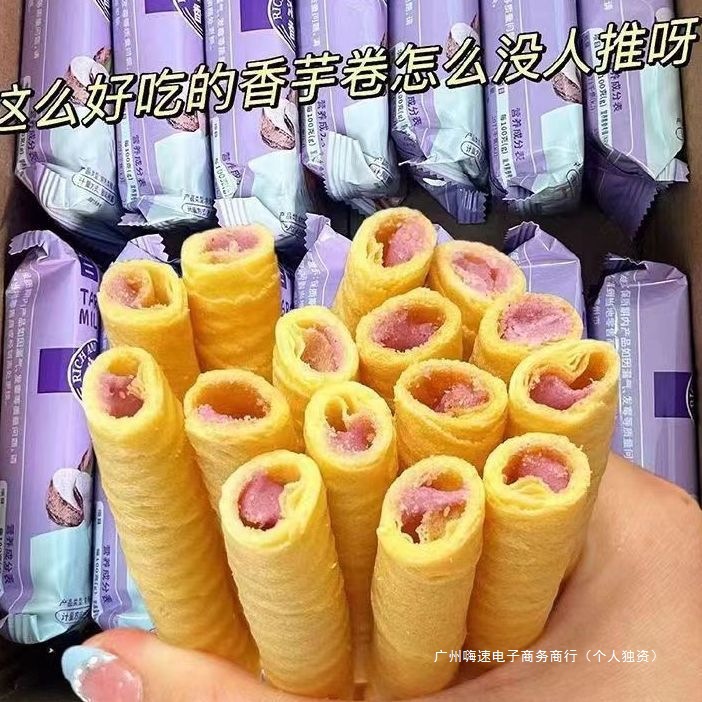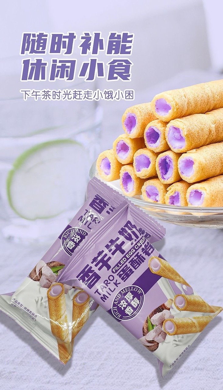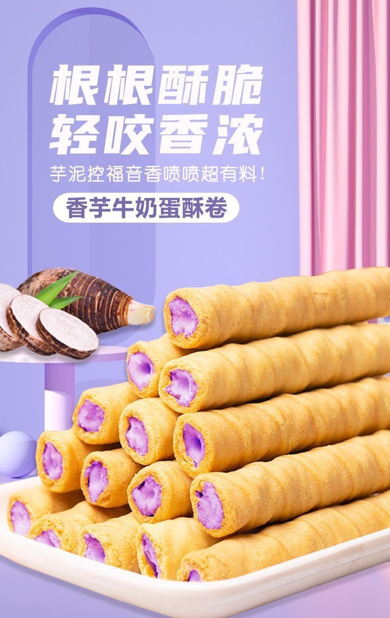 Специальное предложение: яичные рулеты с молоком таро, насыщенный начинкой, офисное хрустящее повседневное печенье, закуски, чтобы удовлетворить тягу к еде, в упаковке.
