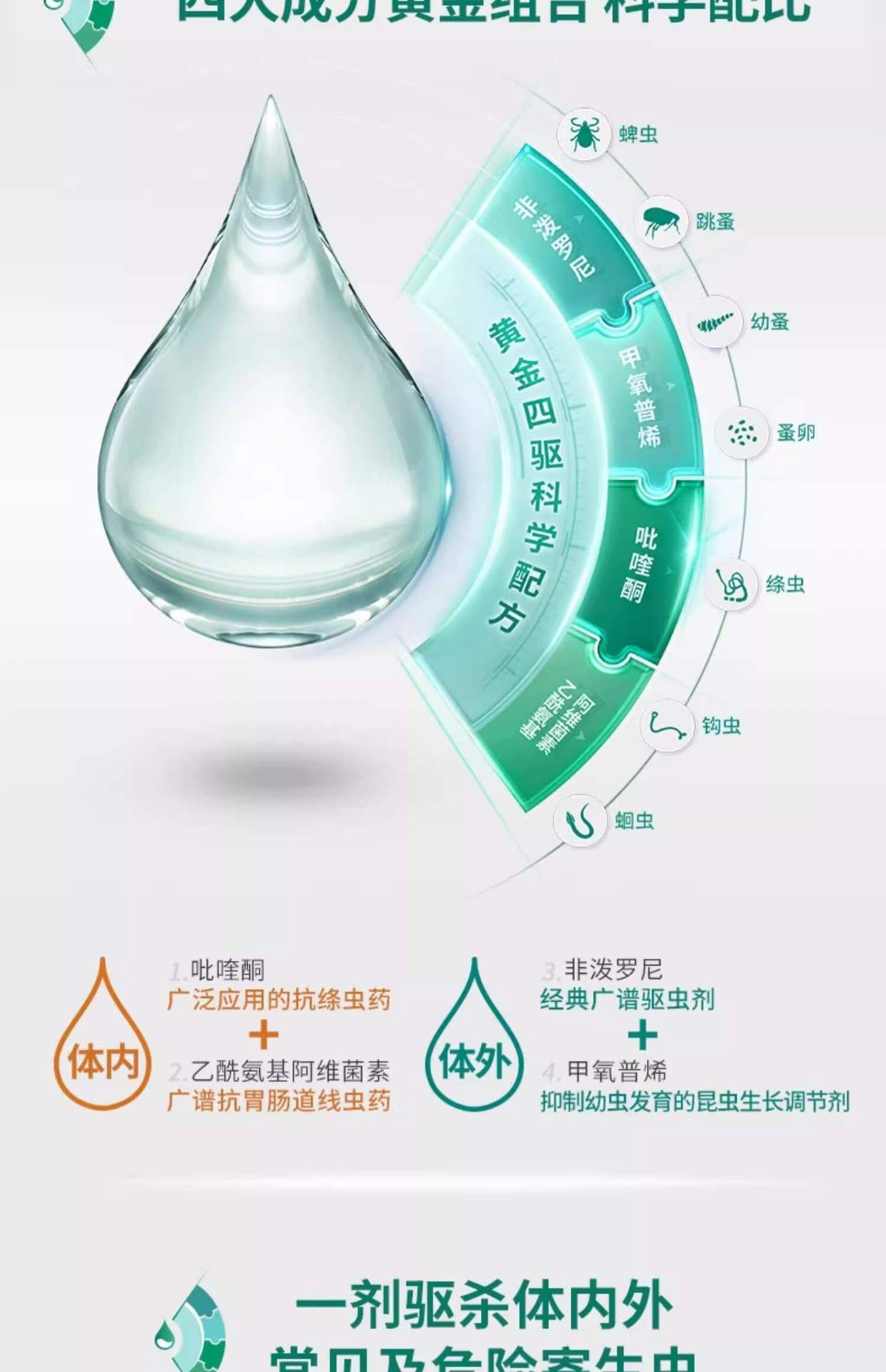 Капли Bolien Compound Fipronil Praziquantel для кошек, внутреннее и внешнее средство от гельминтов, капли в маленькой тубе