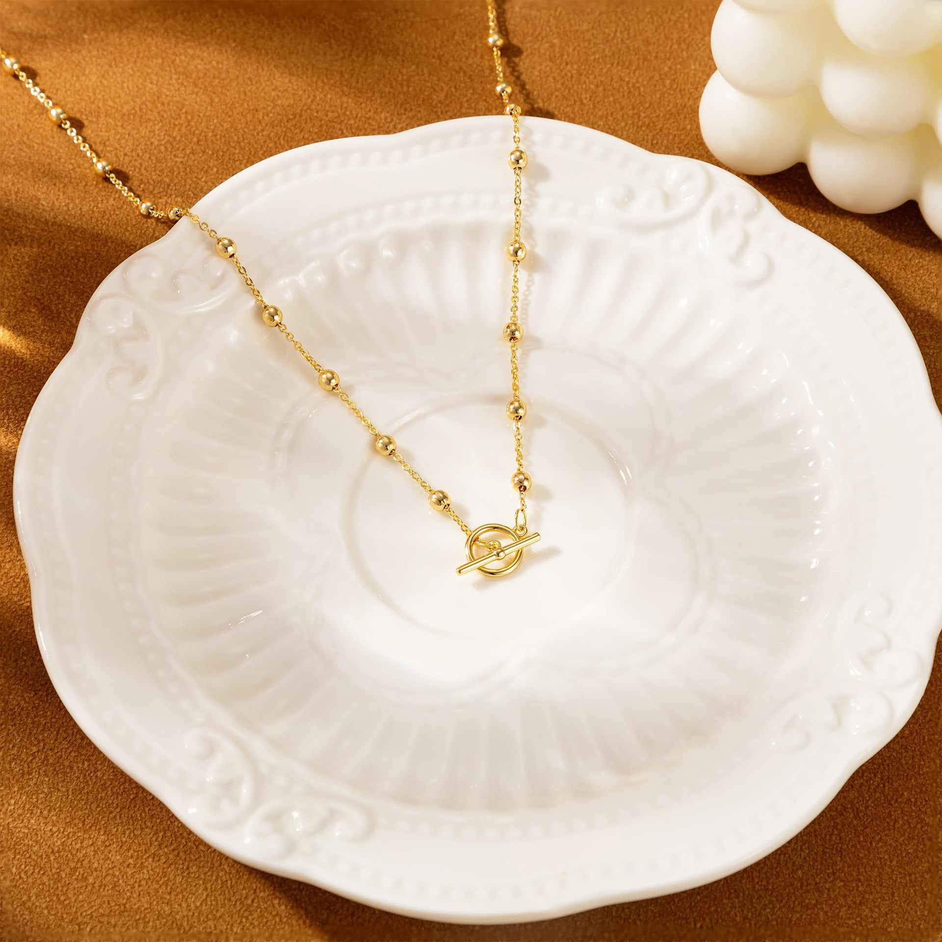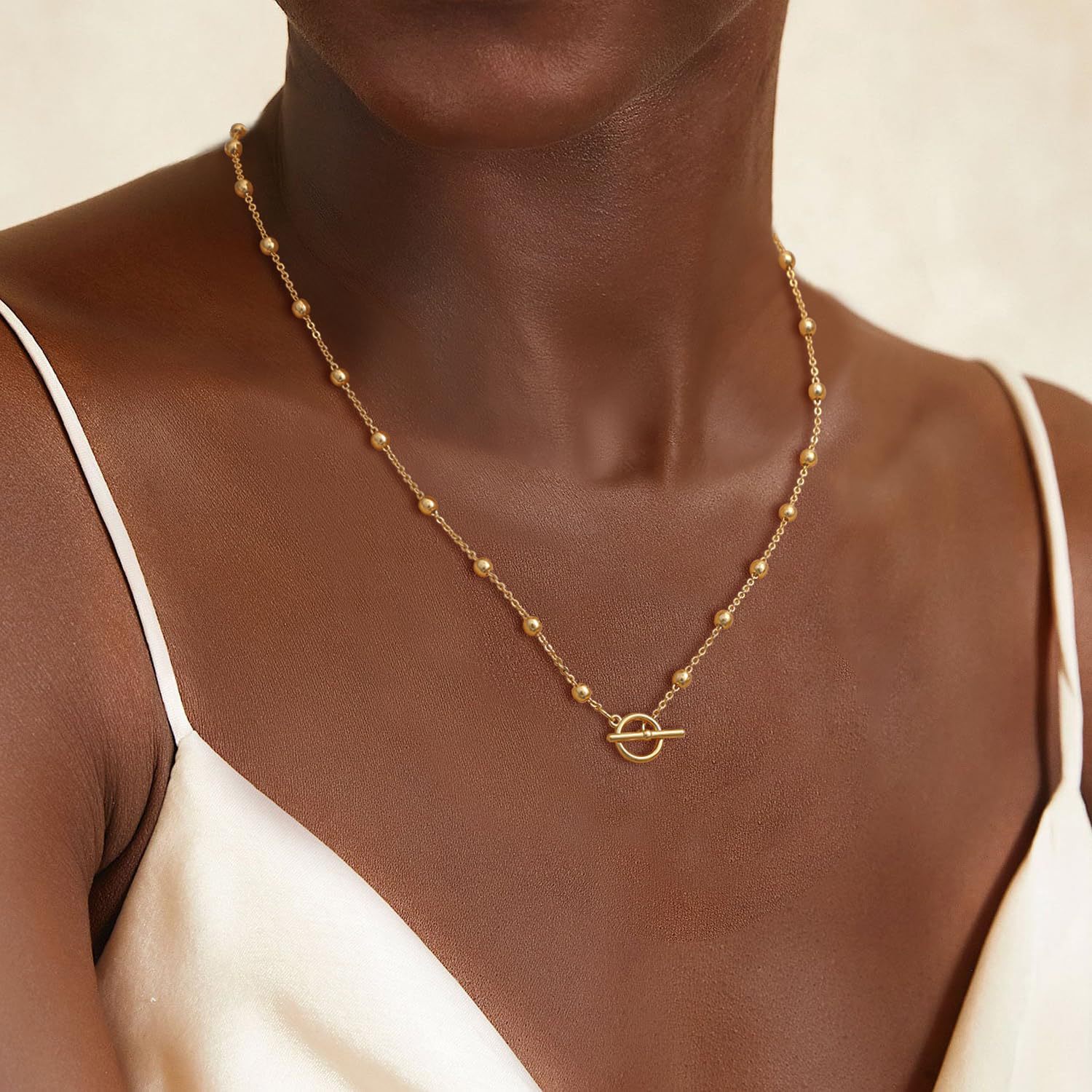 2025 Новинка Amazon: персонализированное ожерелье с зажимом OT, многослойное металлическое ожерелье с шариковой цепочкой, женская цепочка на ключицу