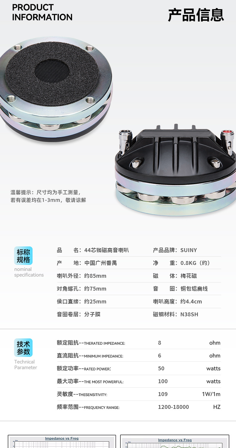 SUINY/Shuyin 44-ядерный неодимовый магнитный твитер, драйвер сцены, KTV, мощный профессиональный алюминиевый твитер с задней крышкой