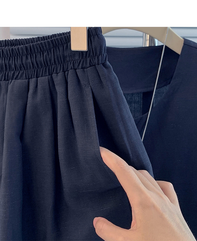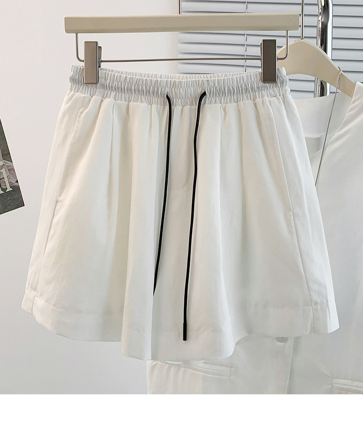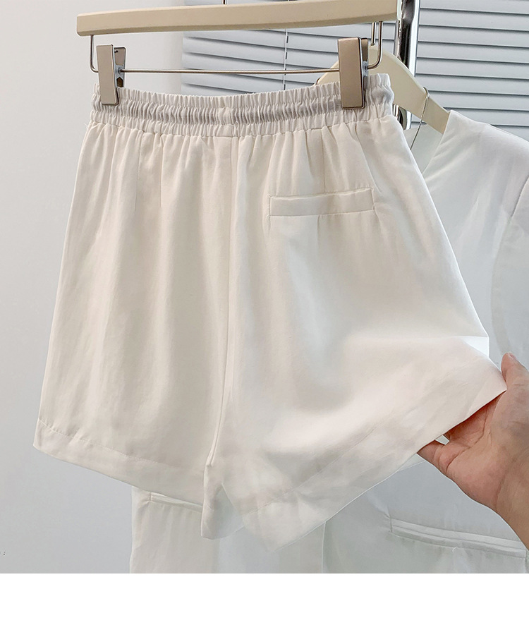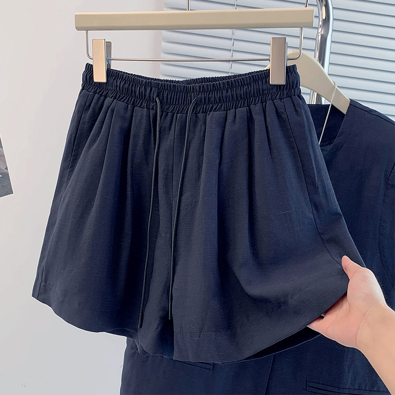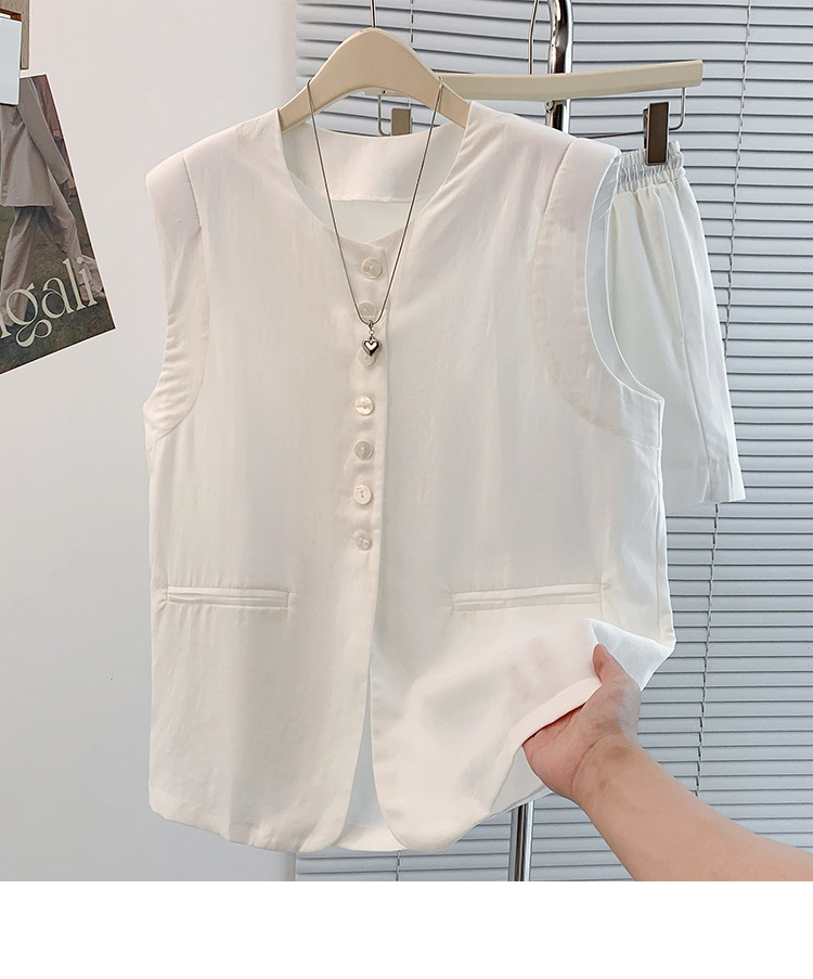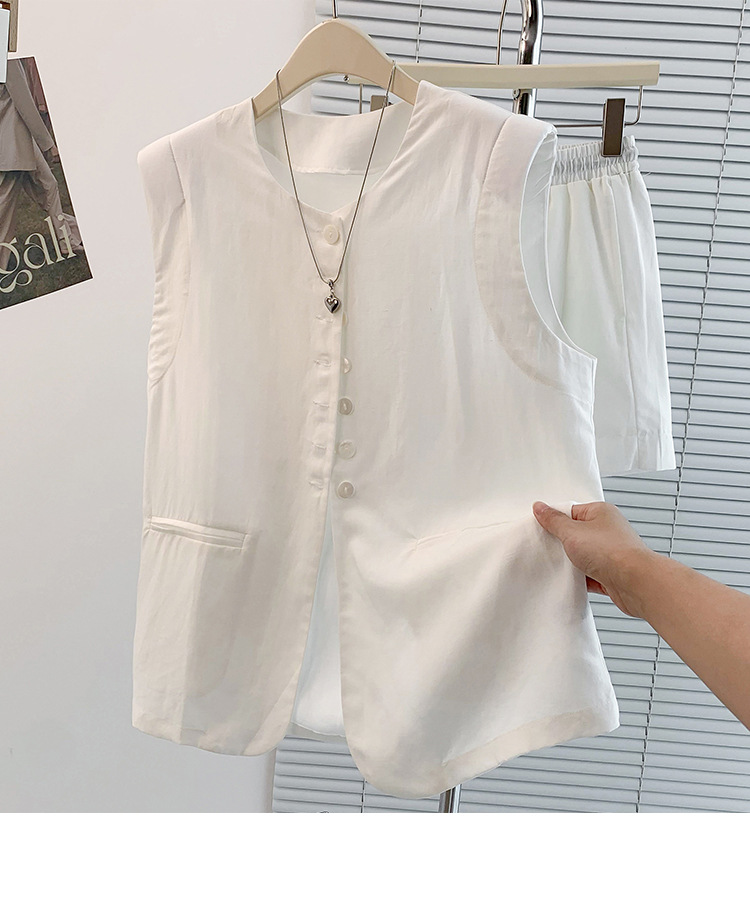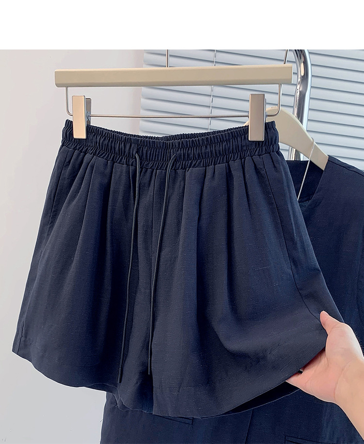 Настоящая фотография европейского льняного жилета без рукавов с эластичными шортами, модный женский костюм из двух предметов, повседневный элегантный комплект
