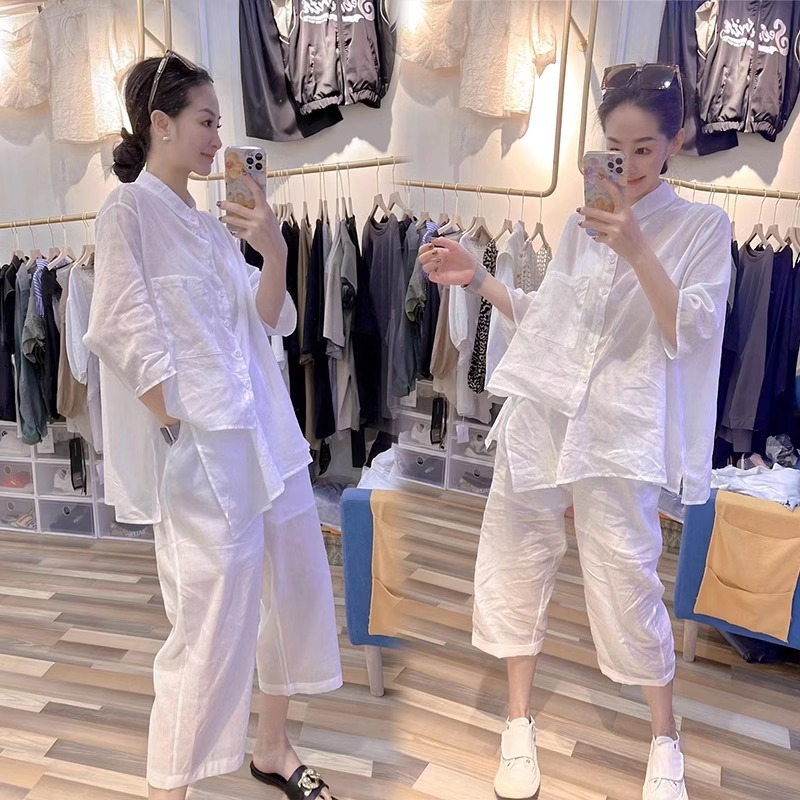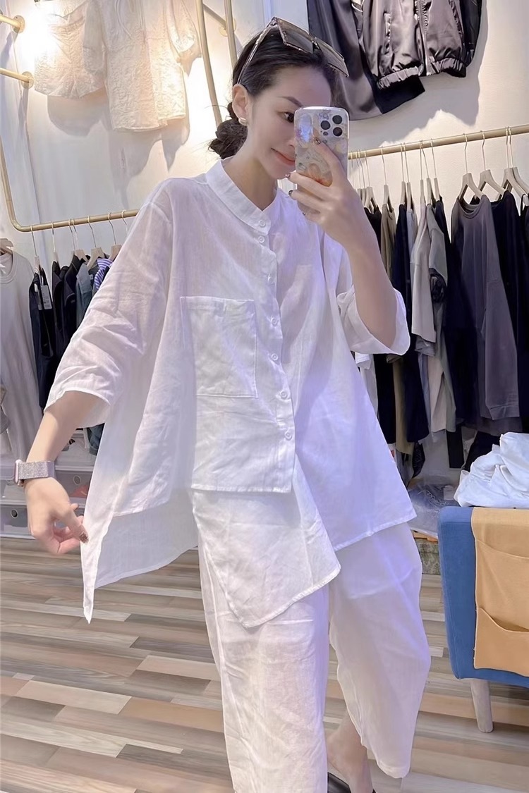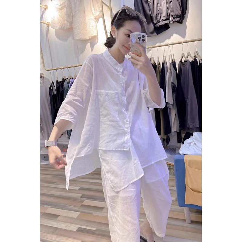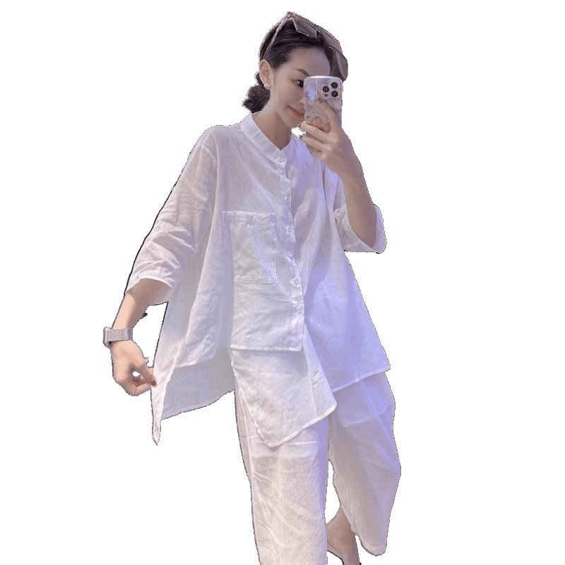 Готовый комплект из рубашки и шорт с защитой от солнца, женский летний костюм в европейском стиле, рубашка нестандартной формы, широкие брюки, комплект из двух предметов
