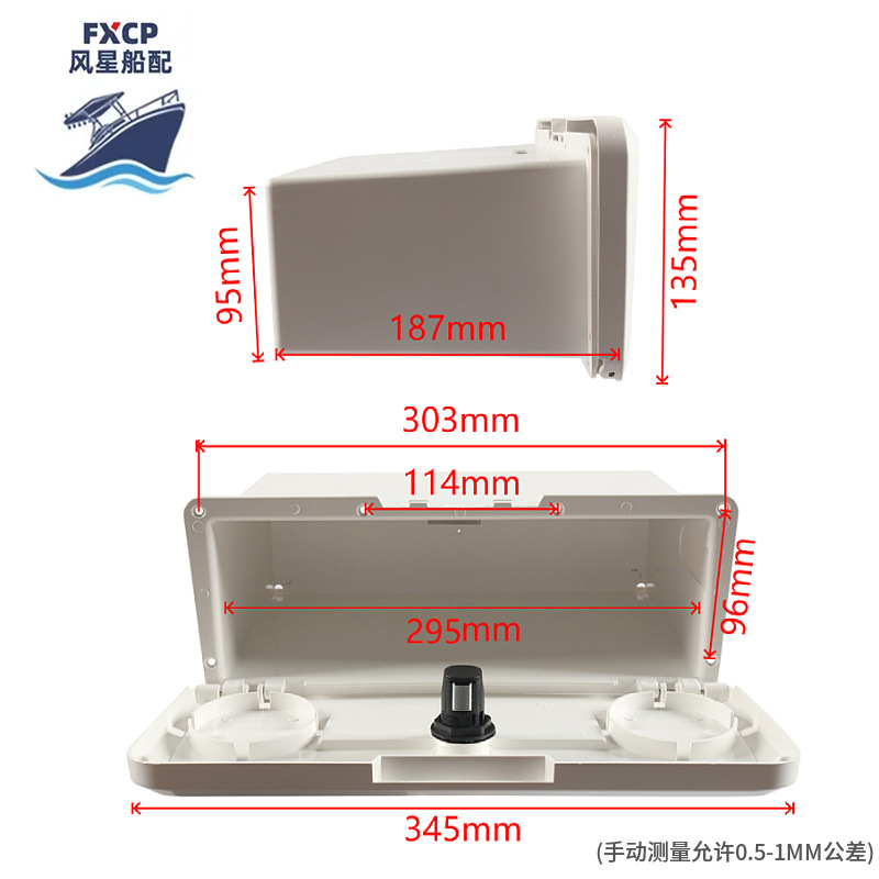 【产品名称】:白色-船用储物盒/船用手套箱(带按压锁)