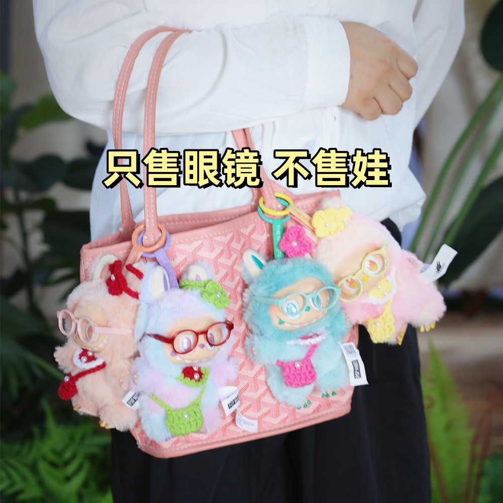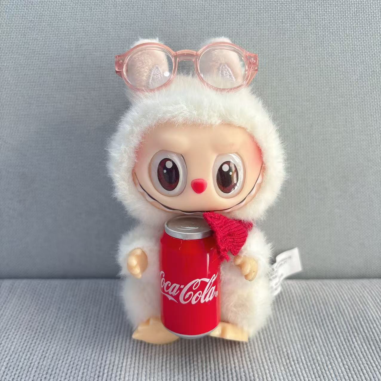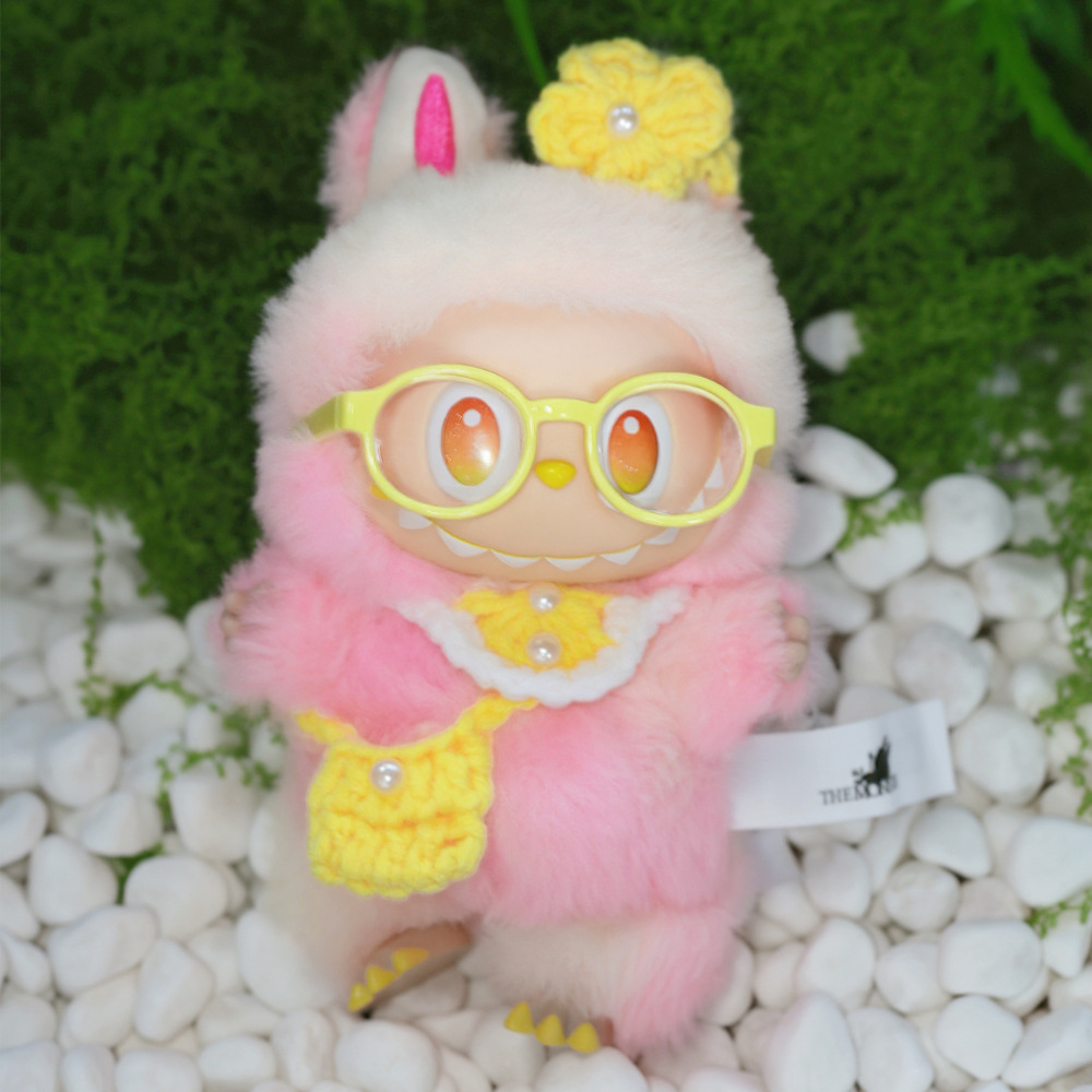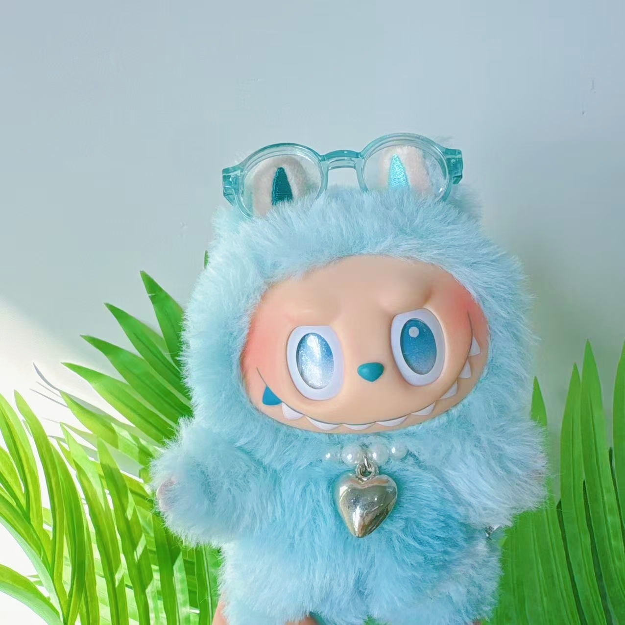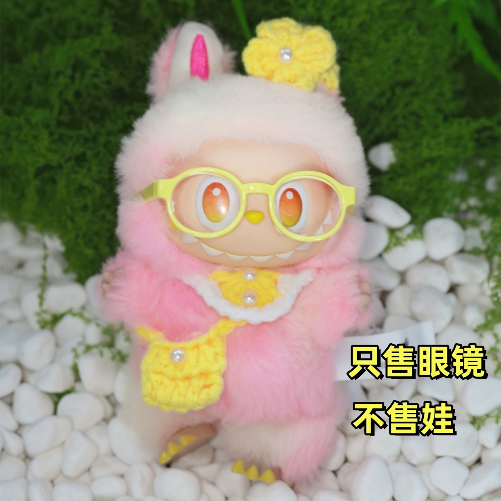 Виниловые очки Labubu 13 см, самокритический медведь 10 см, хлопковая кукла, модная плюшевая игрушка, аксессуары для переодевания