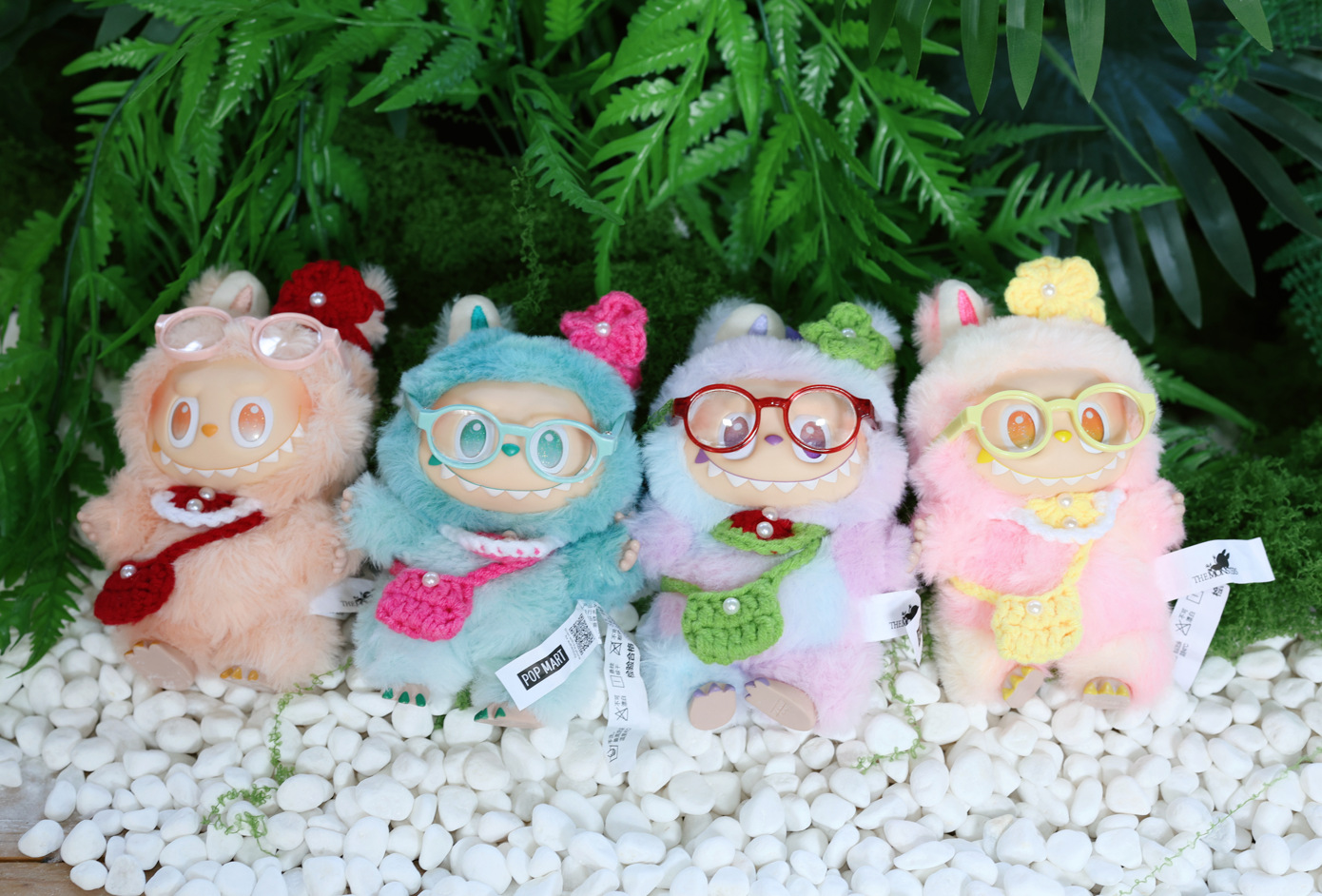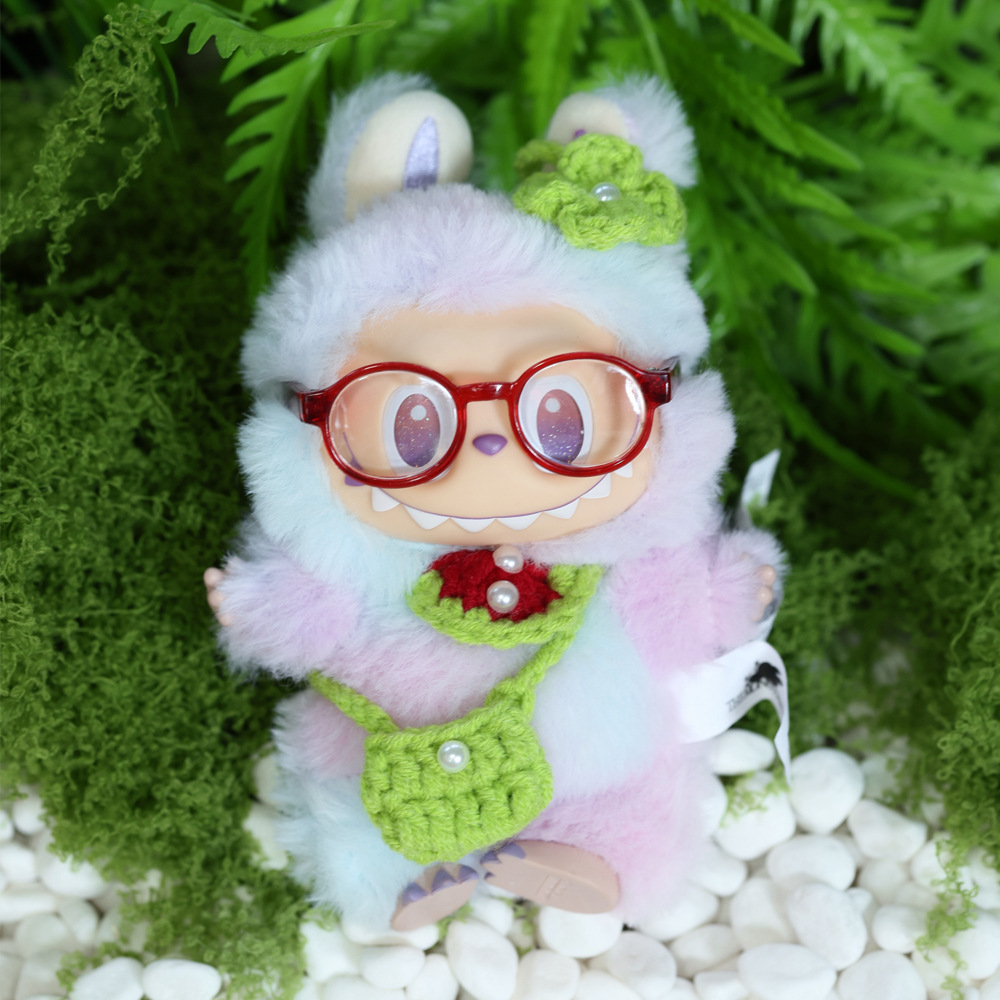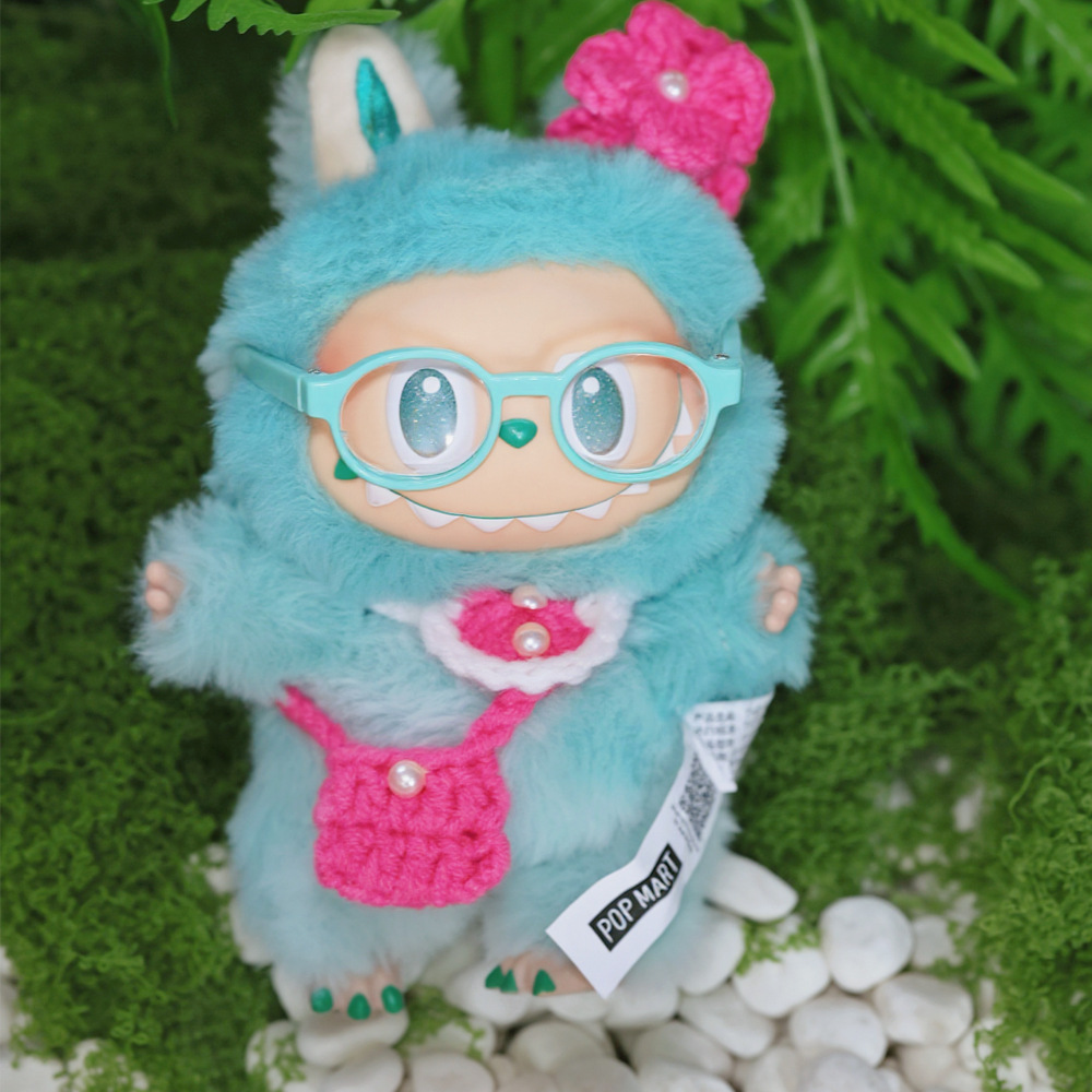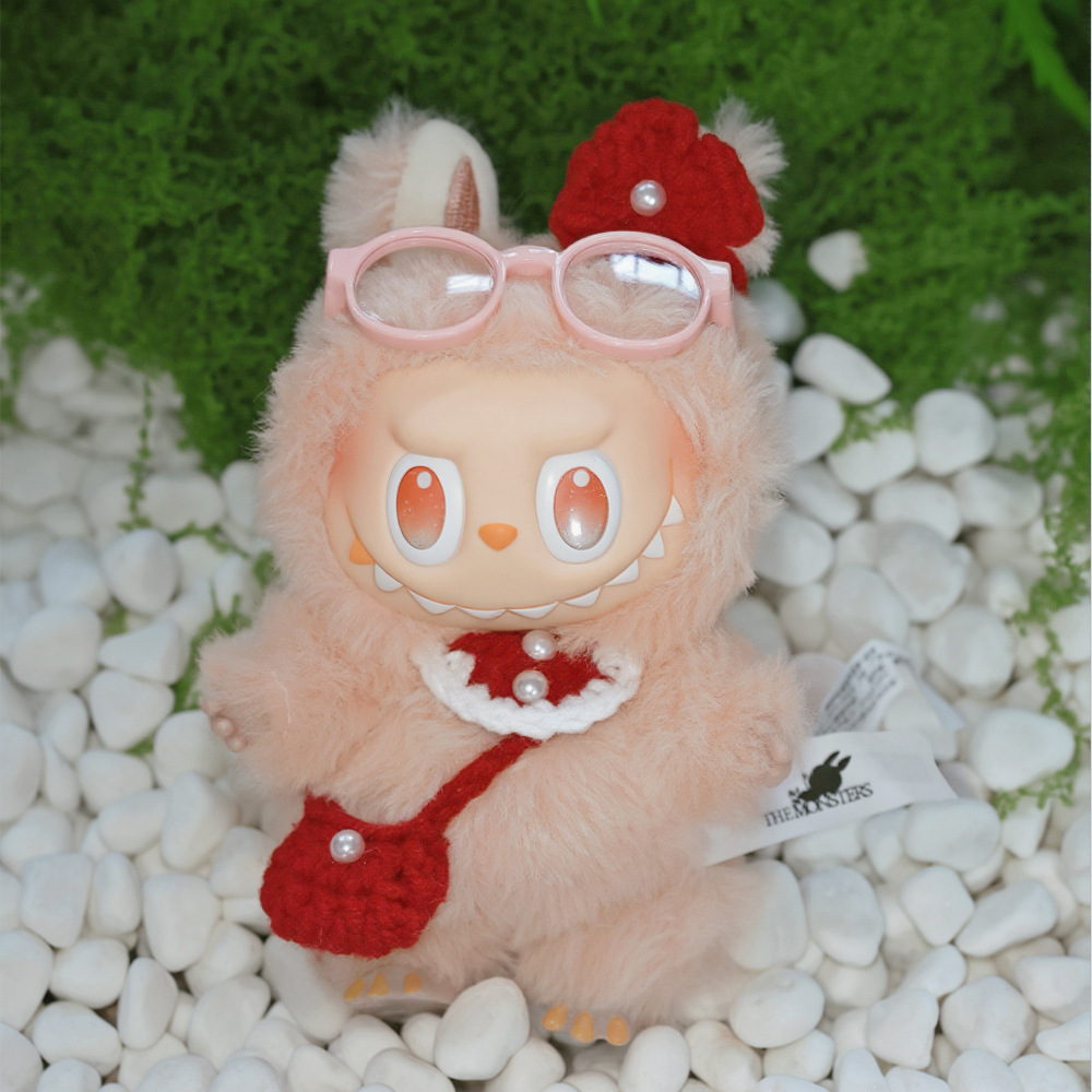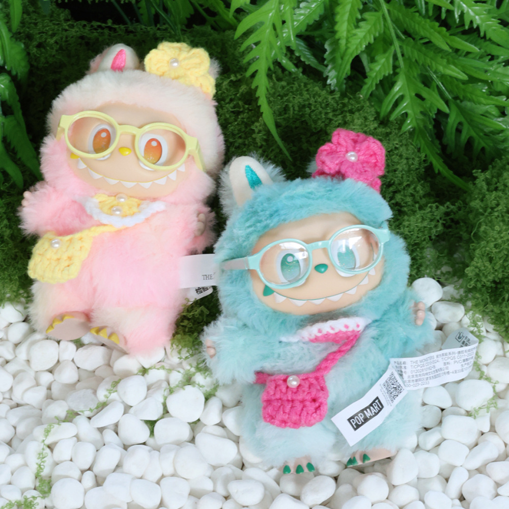 Виниловые очки Labubu 13 см, самокритический медведь 10 см, хлопковая кукла, модная плюшевая игрушка, аксессуары для переодевания