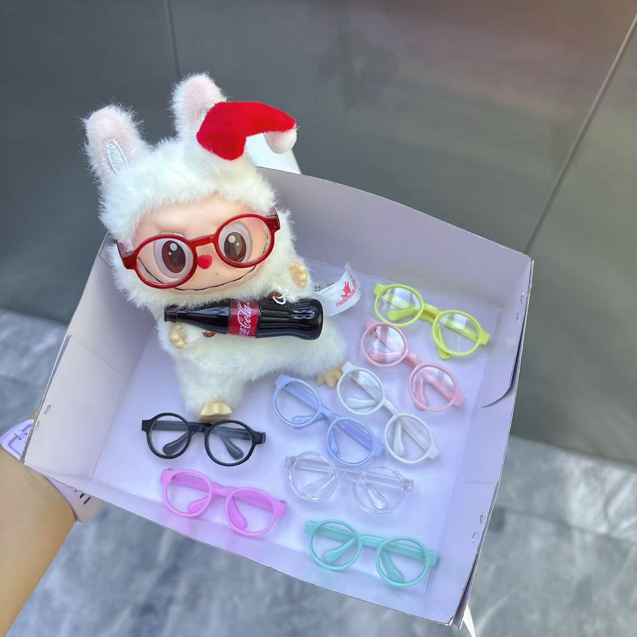 产品描述:镜片颜色都是透明的,镜框有多色可供选择,适合10-13cm高的大部分玩偶。价格便宜但是质量上乘,搭配衣服不可缺的一款百搭单品,拍照凹造型神器!