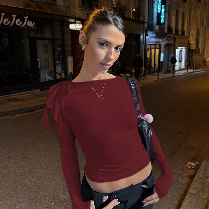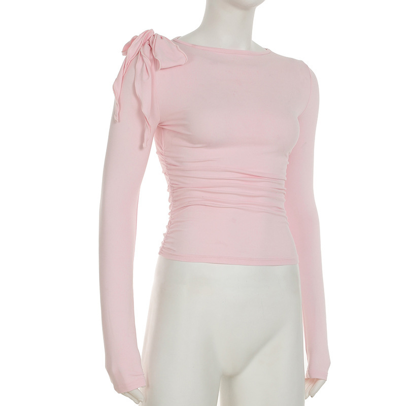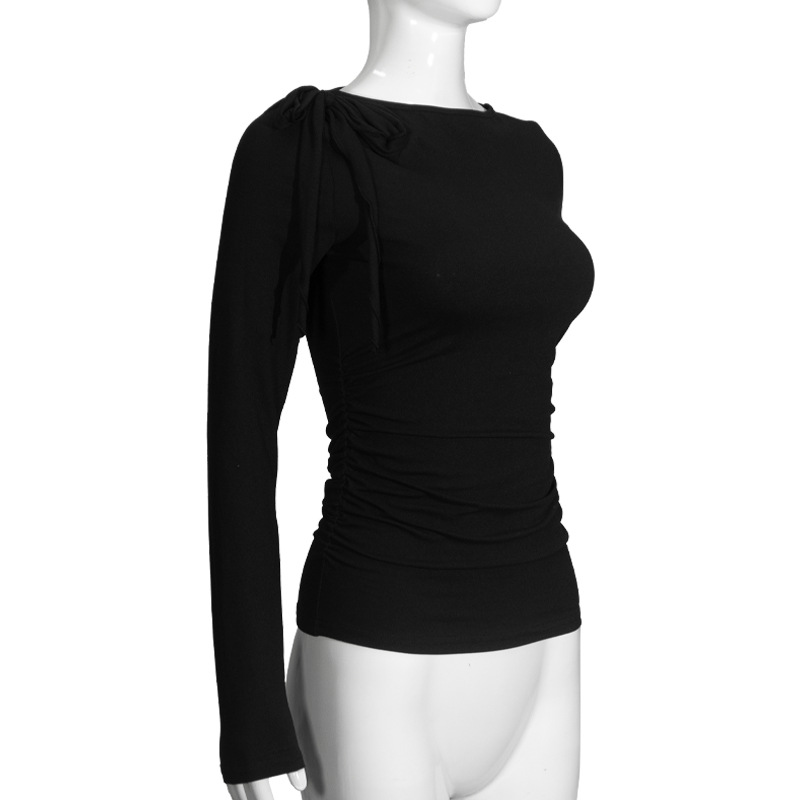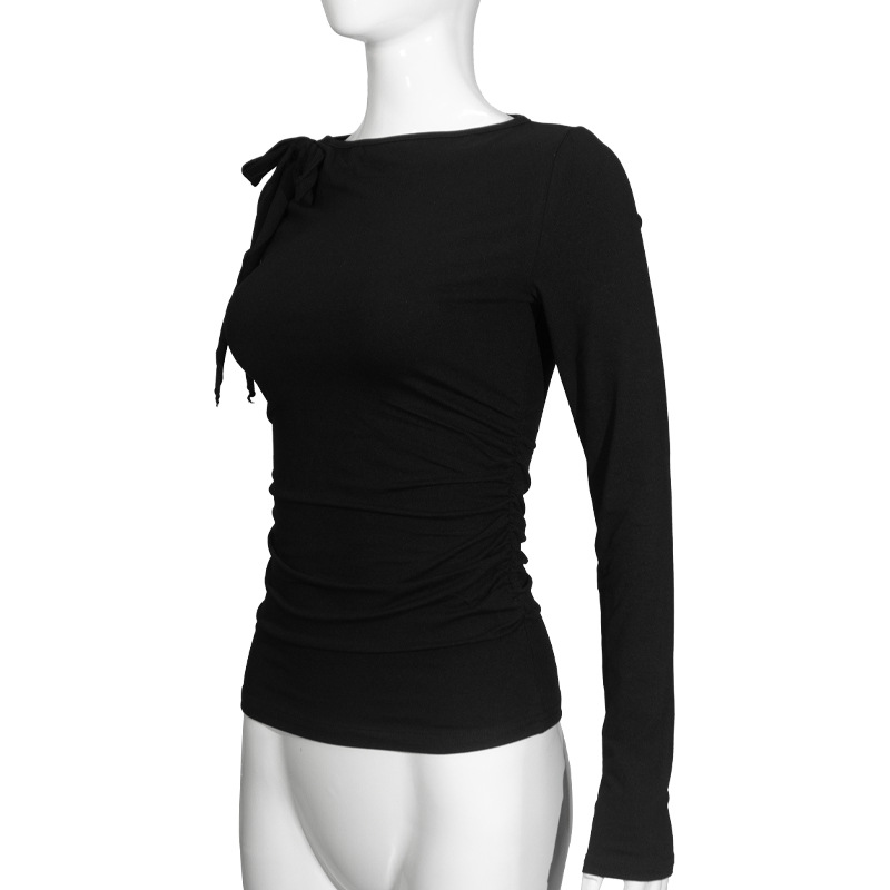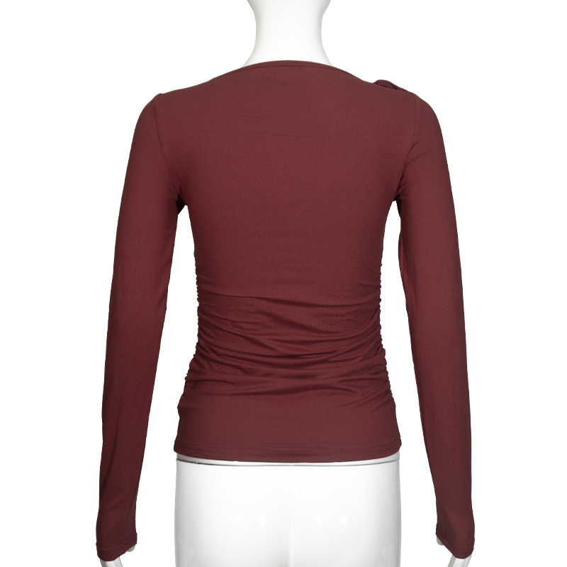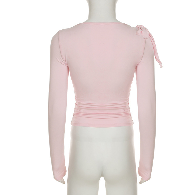 C926TP Европейский и американский трансграничный дизайн с ремешком на одно плечо, однотонный короткий топ, плиссированная талия, универсальный модный длинный рукав для похудения