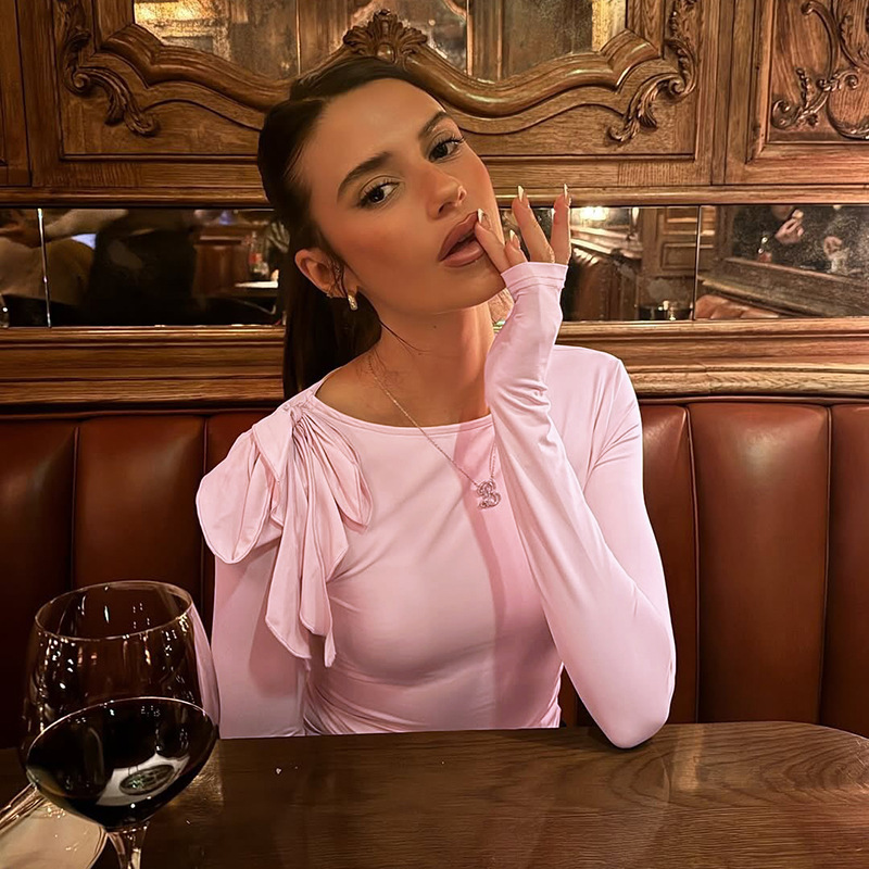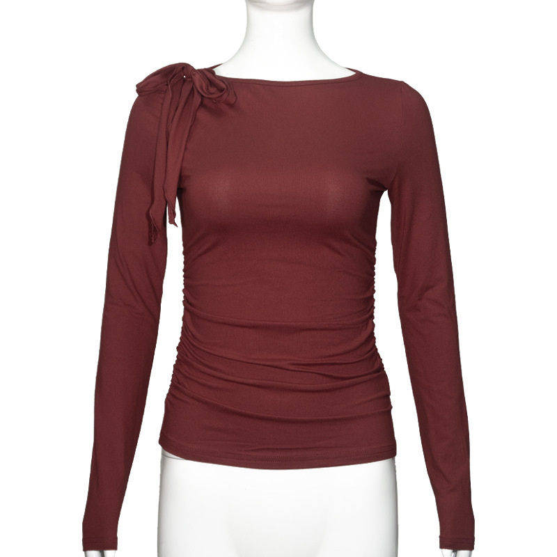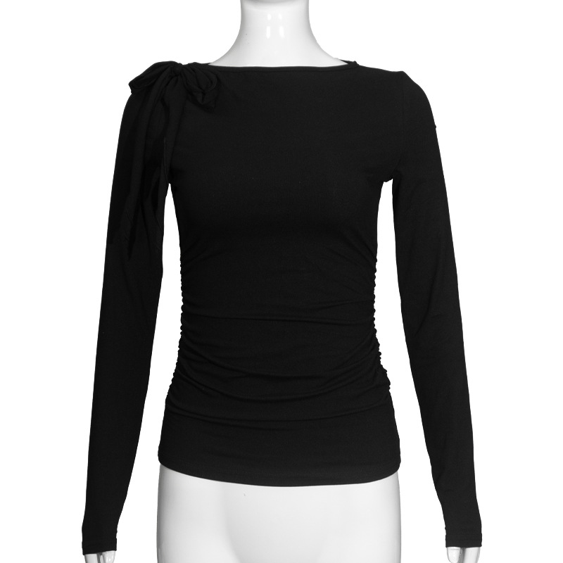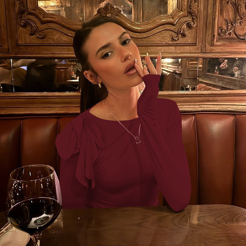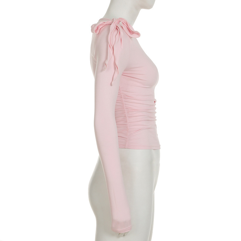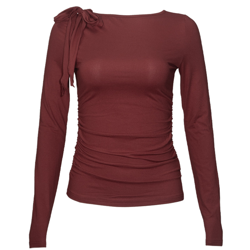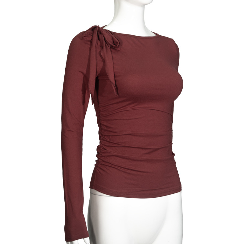 C926TP Европейский и американский трансграничный дизайн с ремешком на одно плечо, однотонный короткий топ, плиссированная талия, универсальный модный длинный рукав для похудения