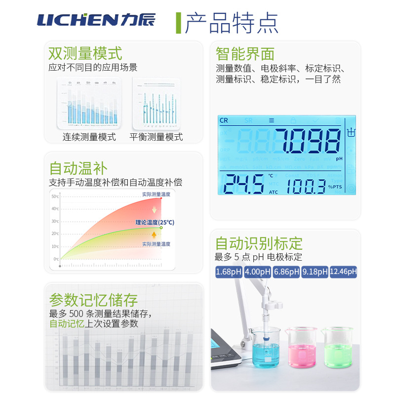 Lichen Technology Laboratory Настольный измеритель кислотности серии PHS, прецизионный pH-метр, кислотно-щелочной измеритель проводимости, многопараметрический