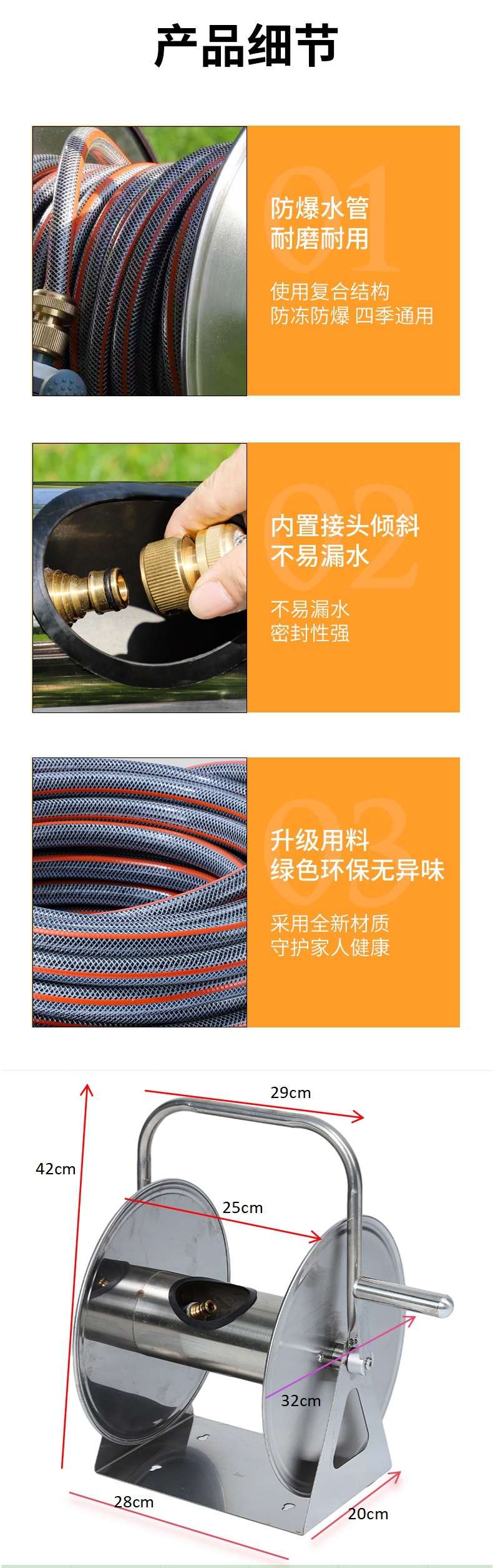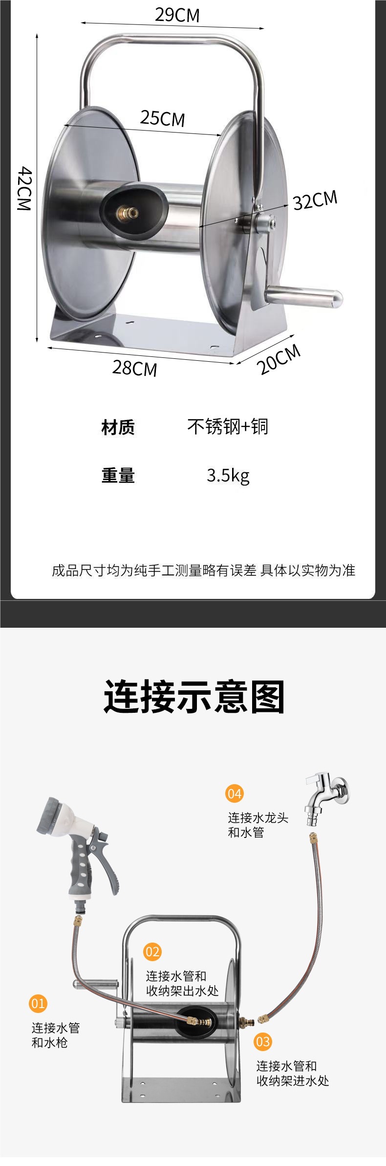 Кросс-бордерная стойка для хранения водопроводных труб из нержавеющей стали для полива цветов, автомойки, подвесная автоматическая катушка для шланга, стойка для намотки водопроводных труб для фермы