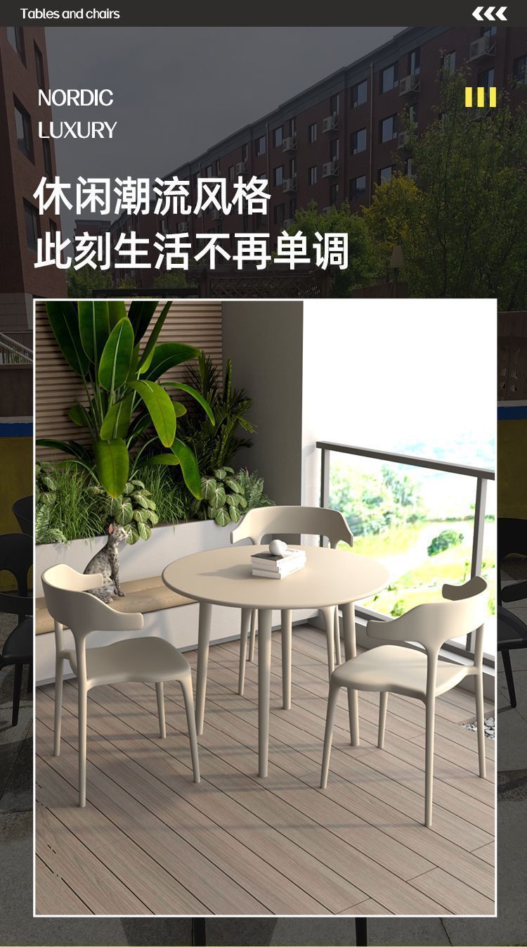 Уличный пластиковый стол и стулья для отдыха на балконе, комплект для кафе в стиле интернет-знаменитостей, простой обеденный стол для улицы