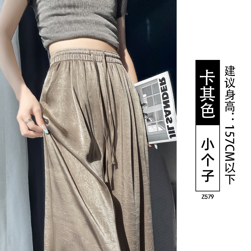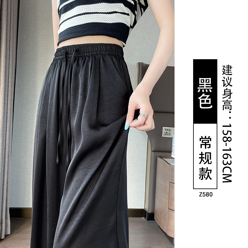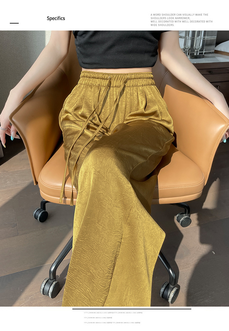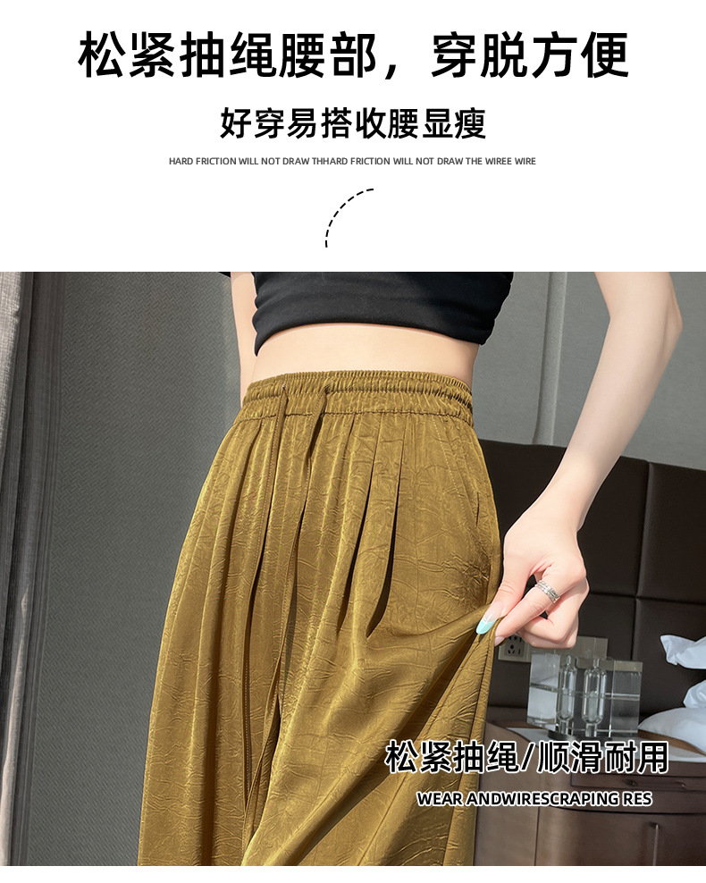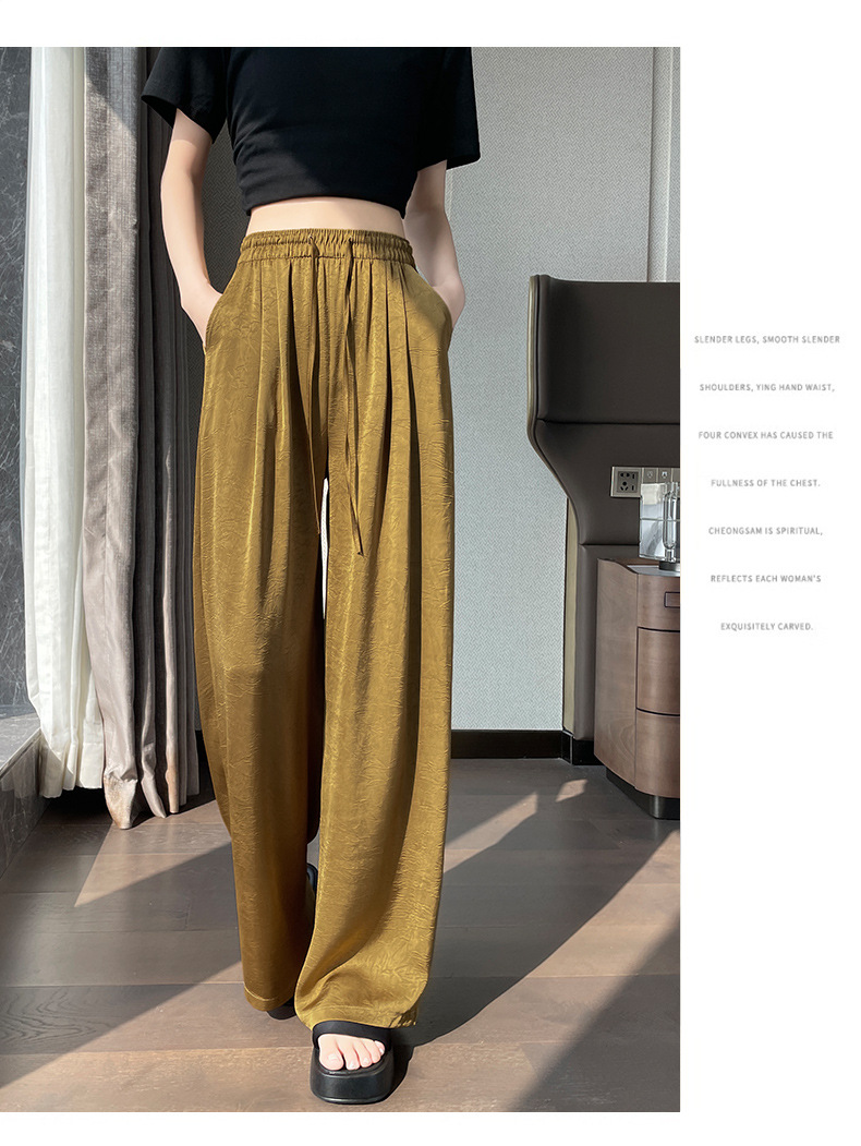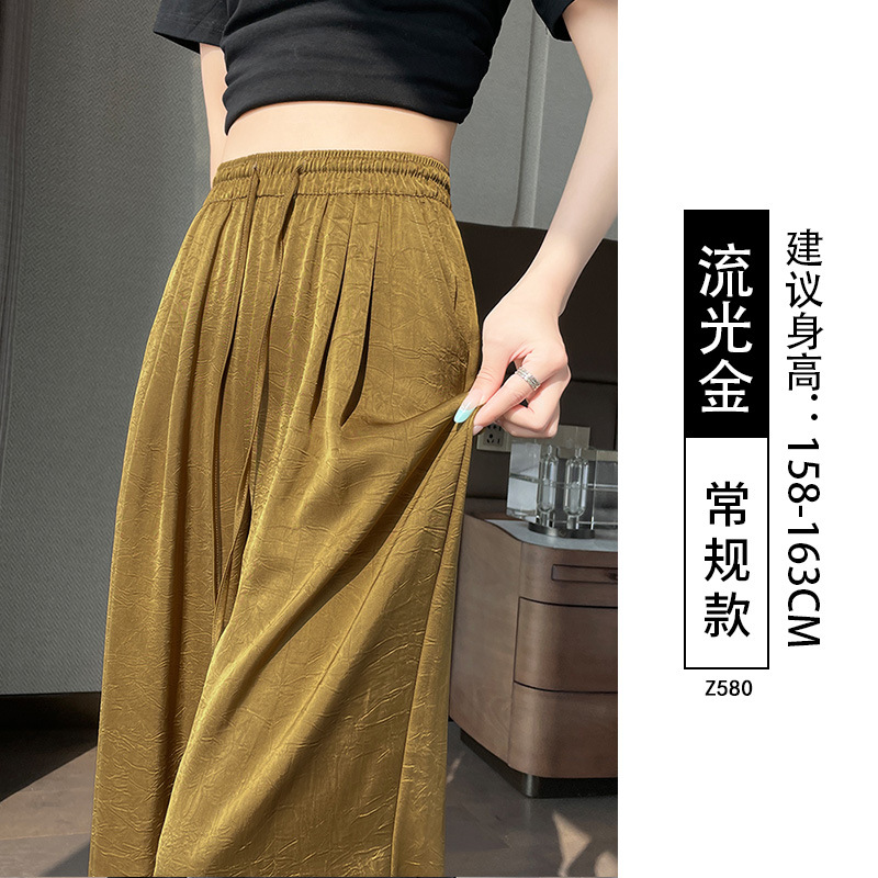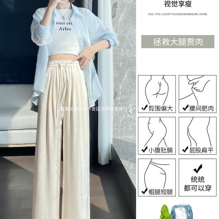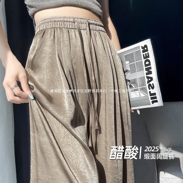 Широкие брюки из ацетатного атласа для женщин, летний тонкий стиль 2025, новые высококачественные драпированные брюки из ледяного шелка в китайском стиле