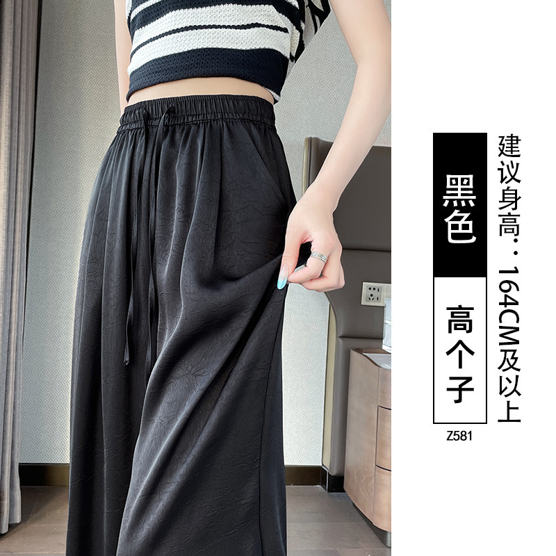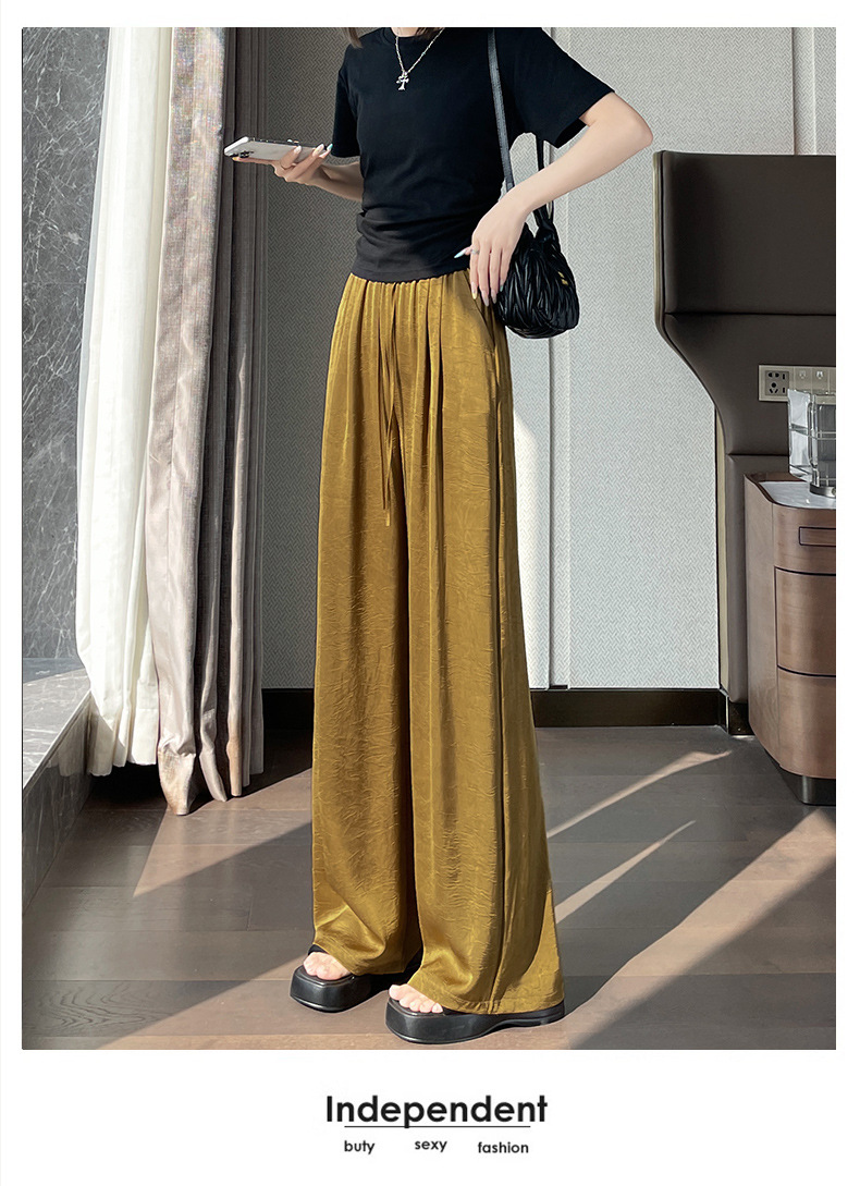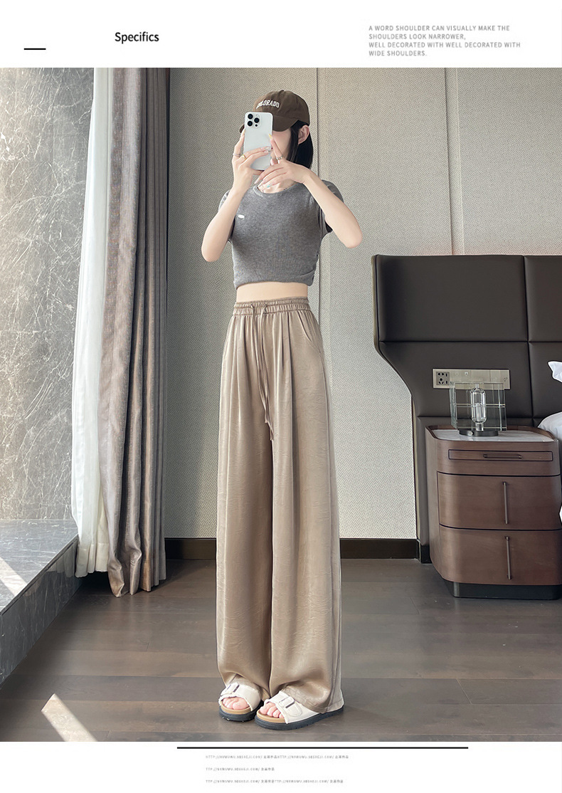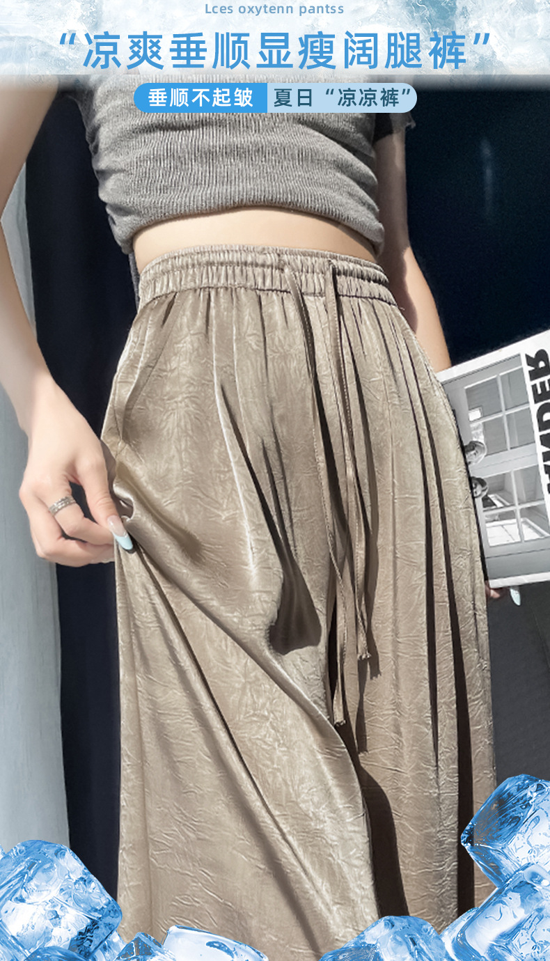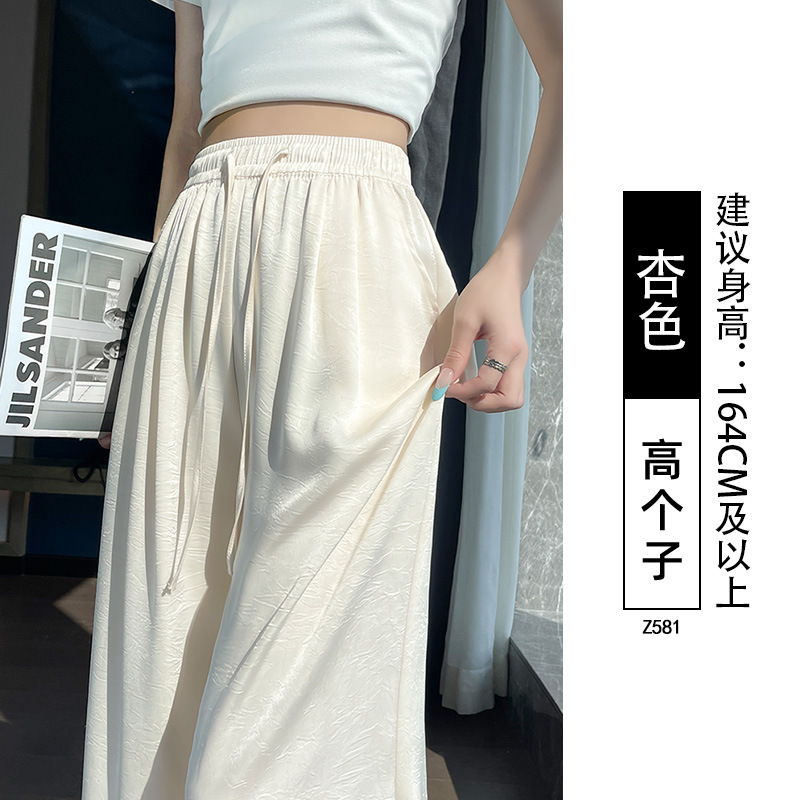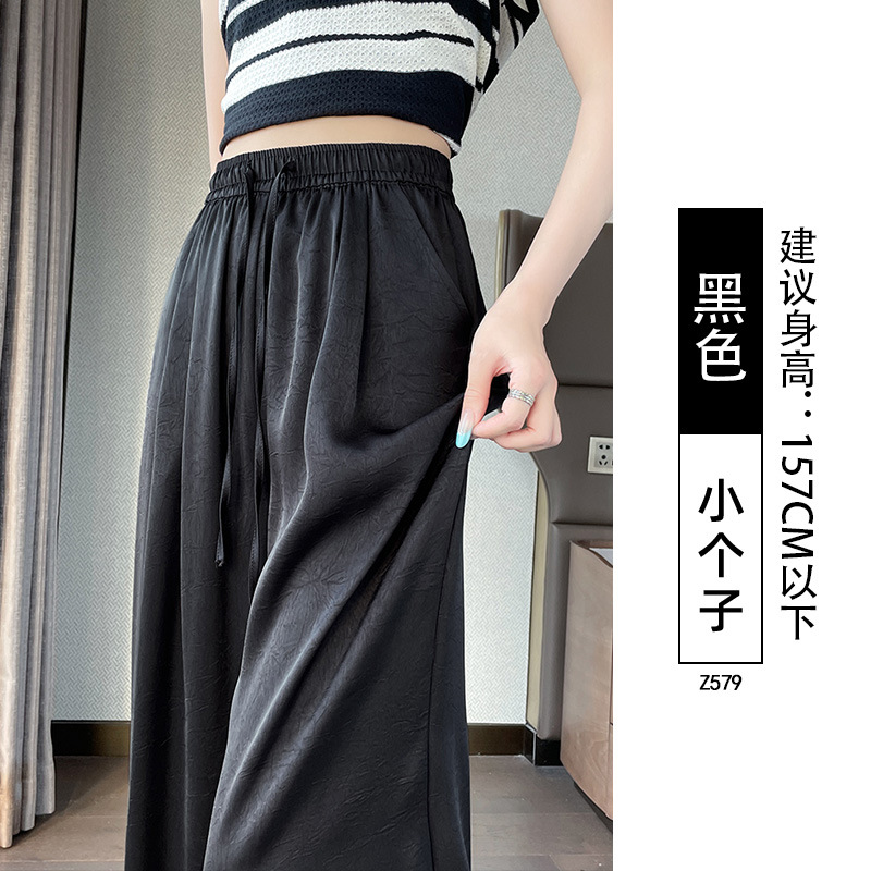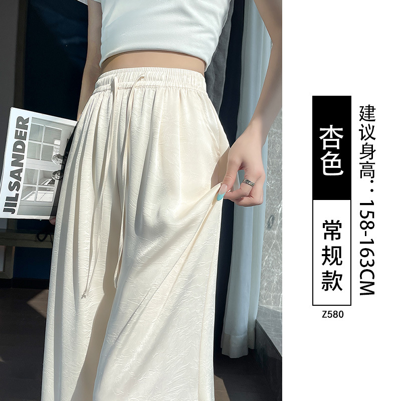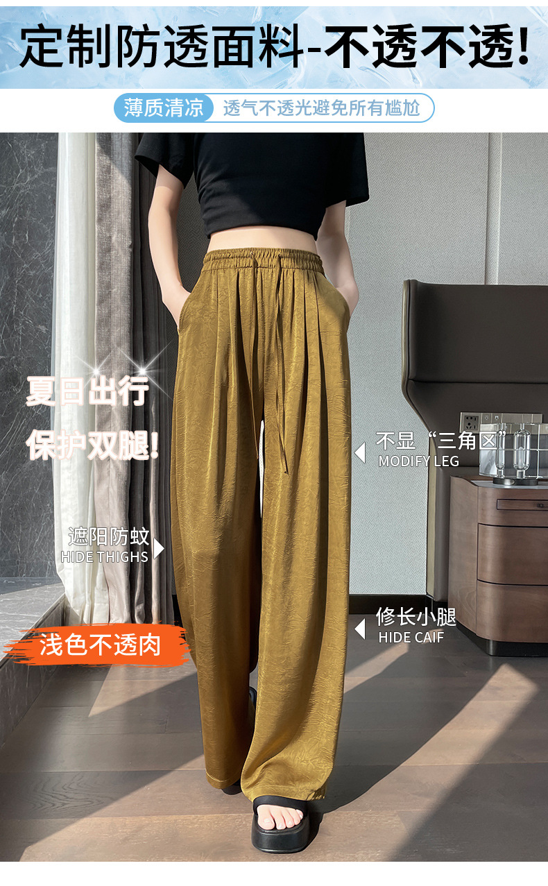 Широкие брюки из ацетатного атласа для женщин, летний тонкий стиль 2025, новые высококачественные драпированные брюки из ледяного шелка в китайском стиле