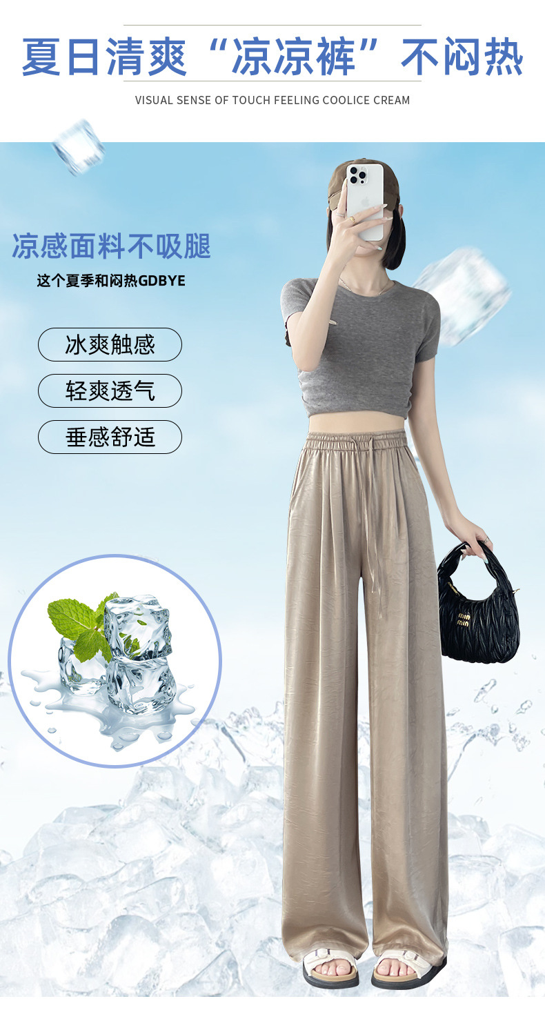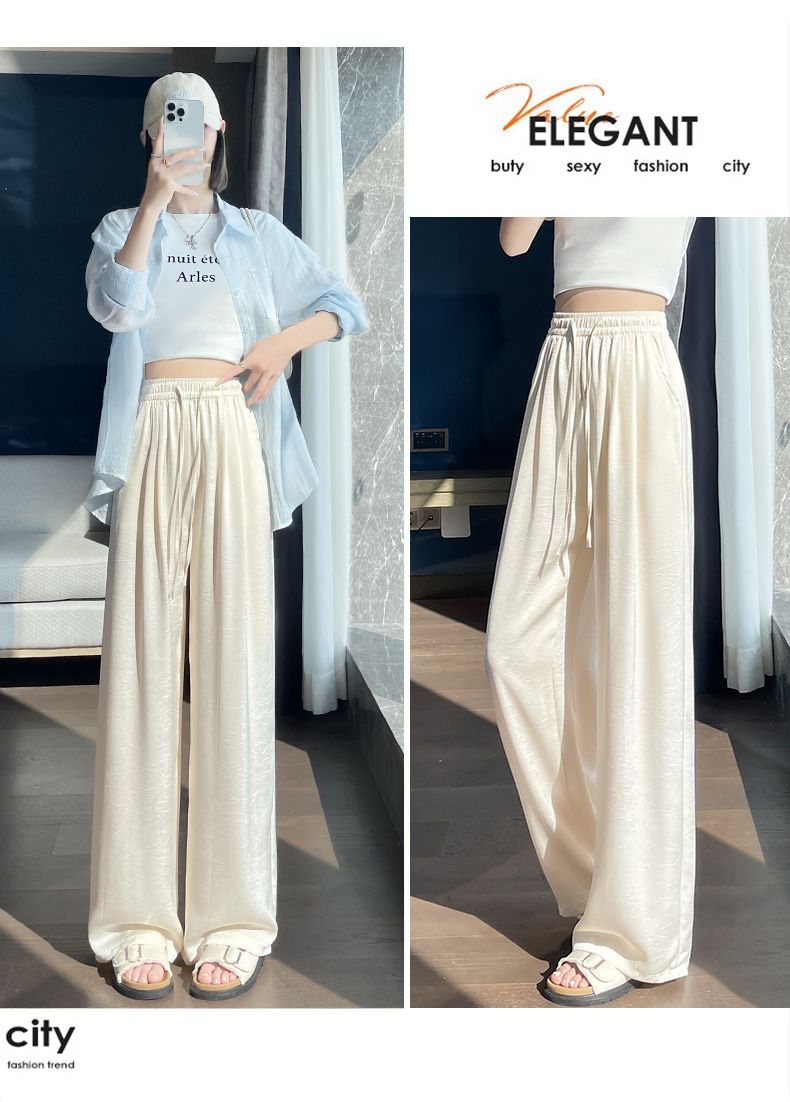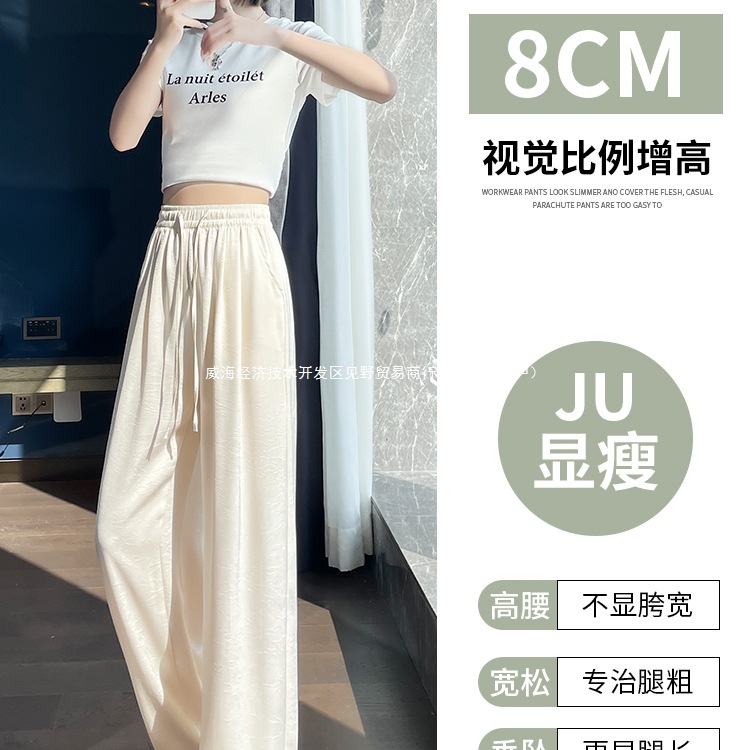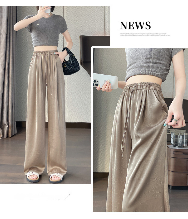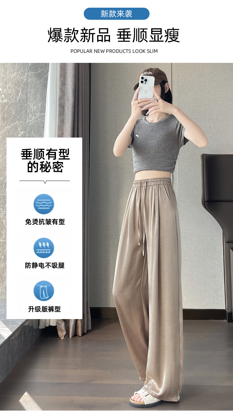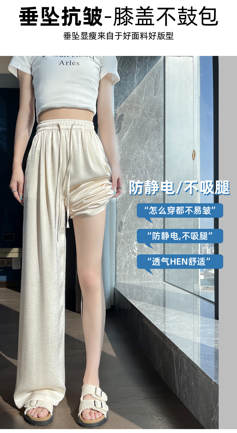 Широкие брюки из ацетатного атласа для женщин, летний тонкий стиль 2025, новые высококачественные драпированные брюки из ледяного шелка в китайском стиле