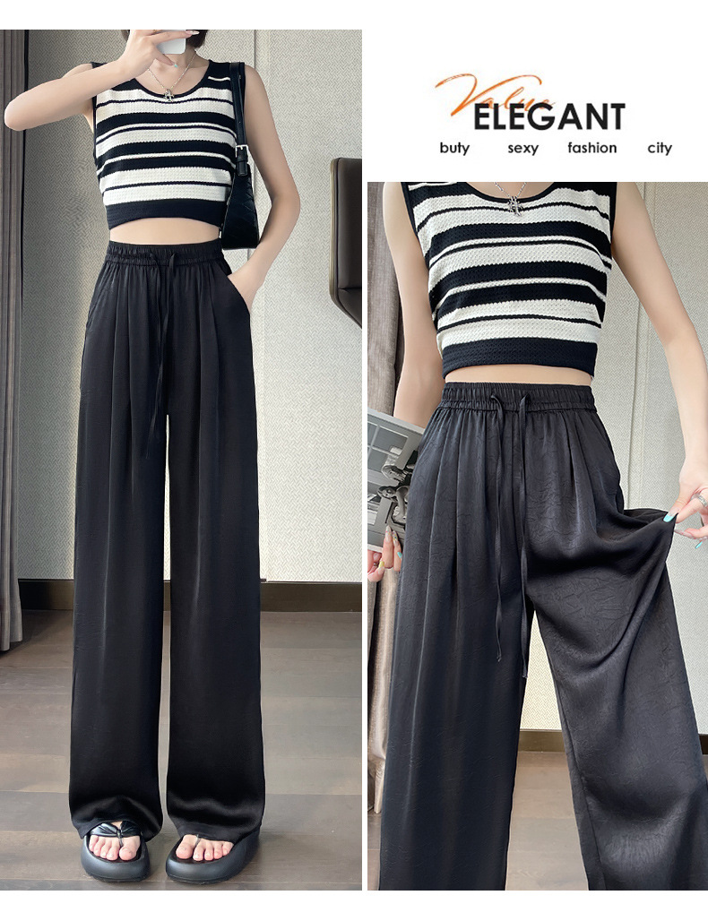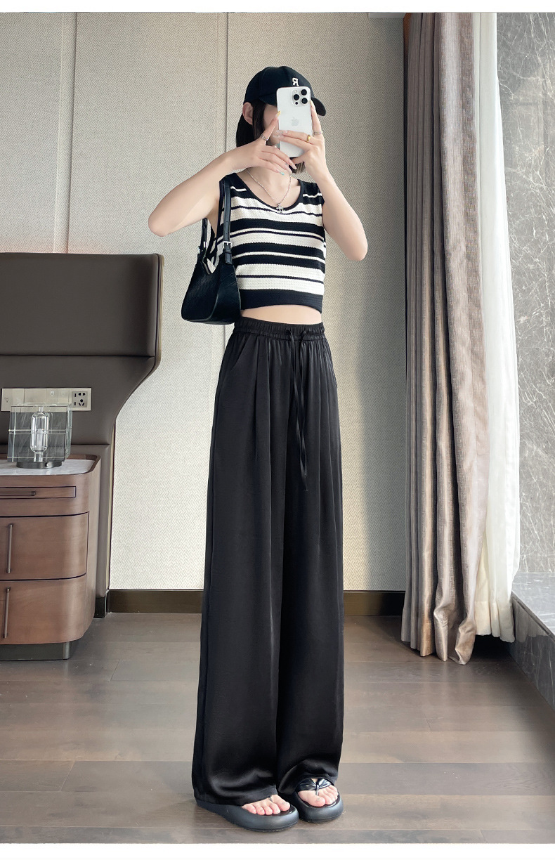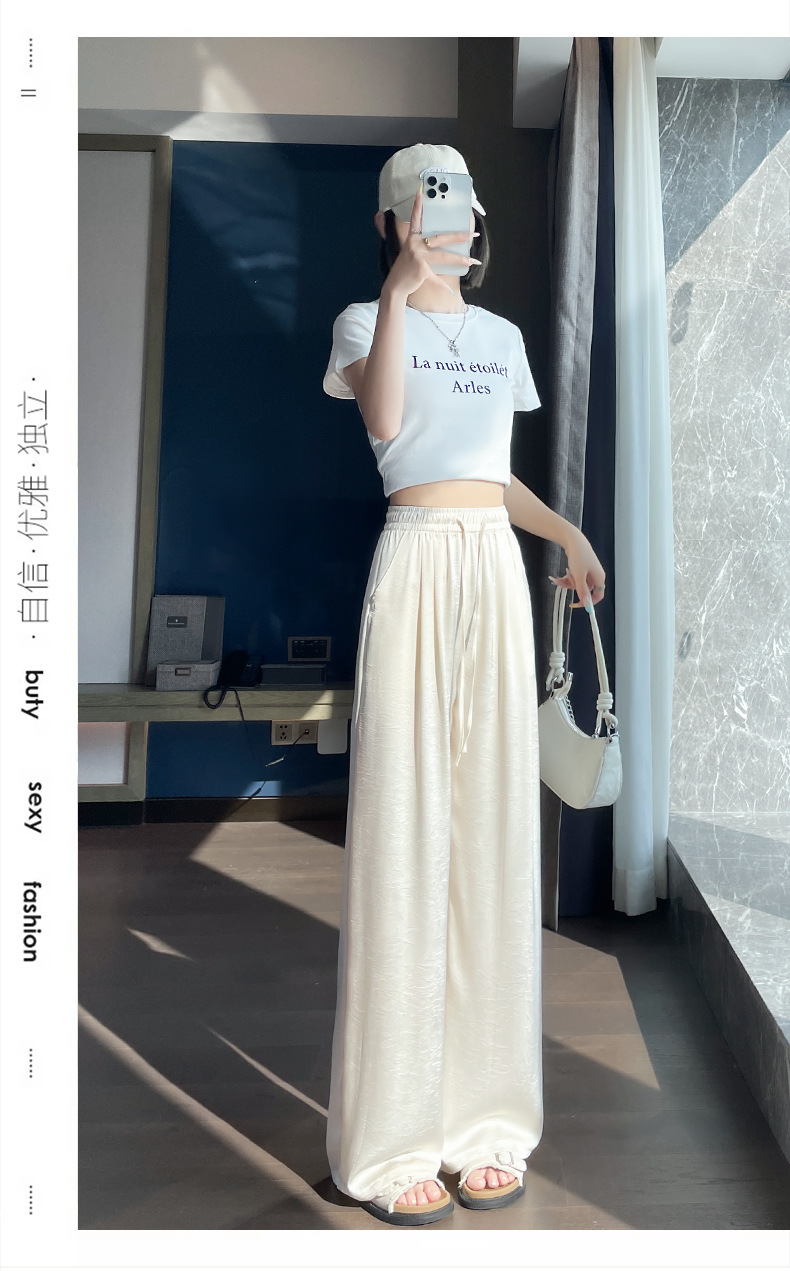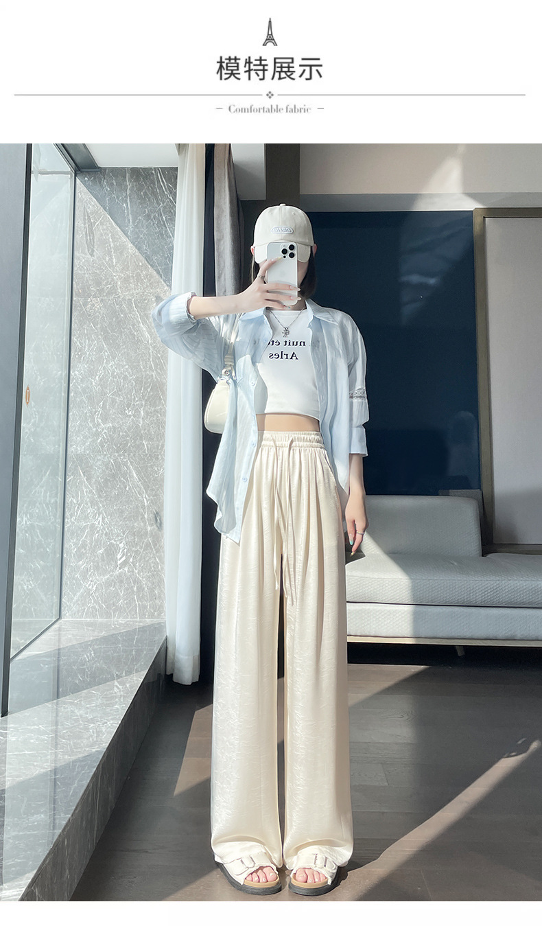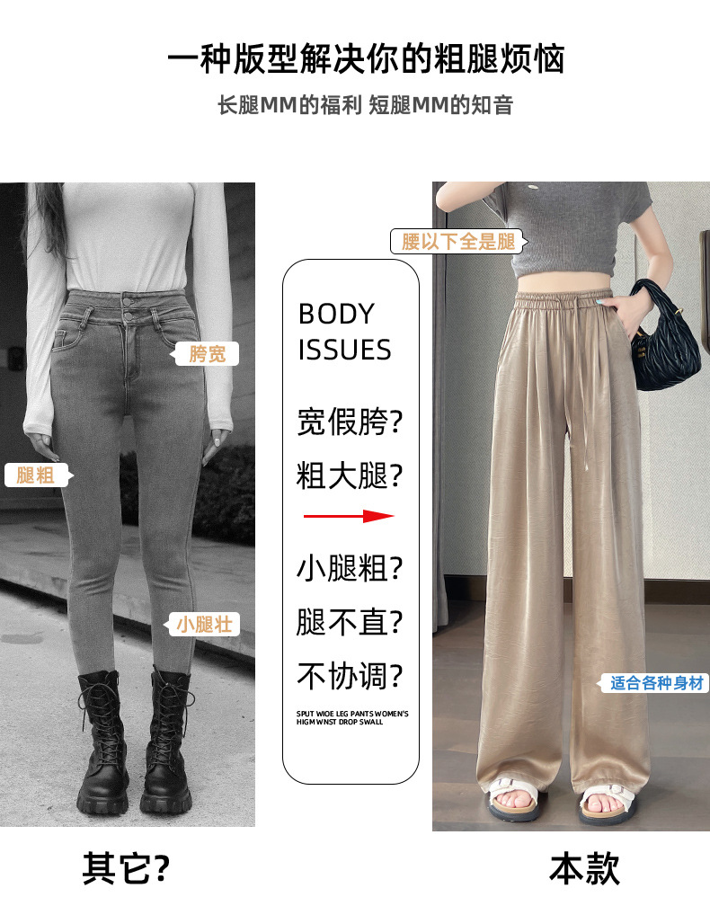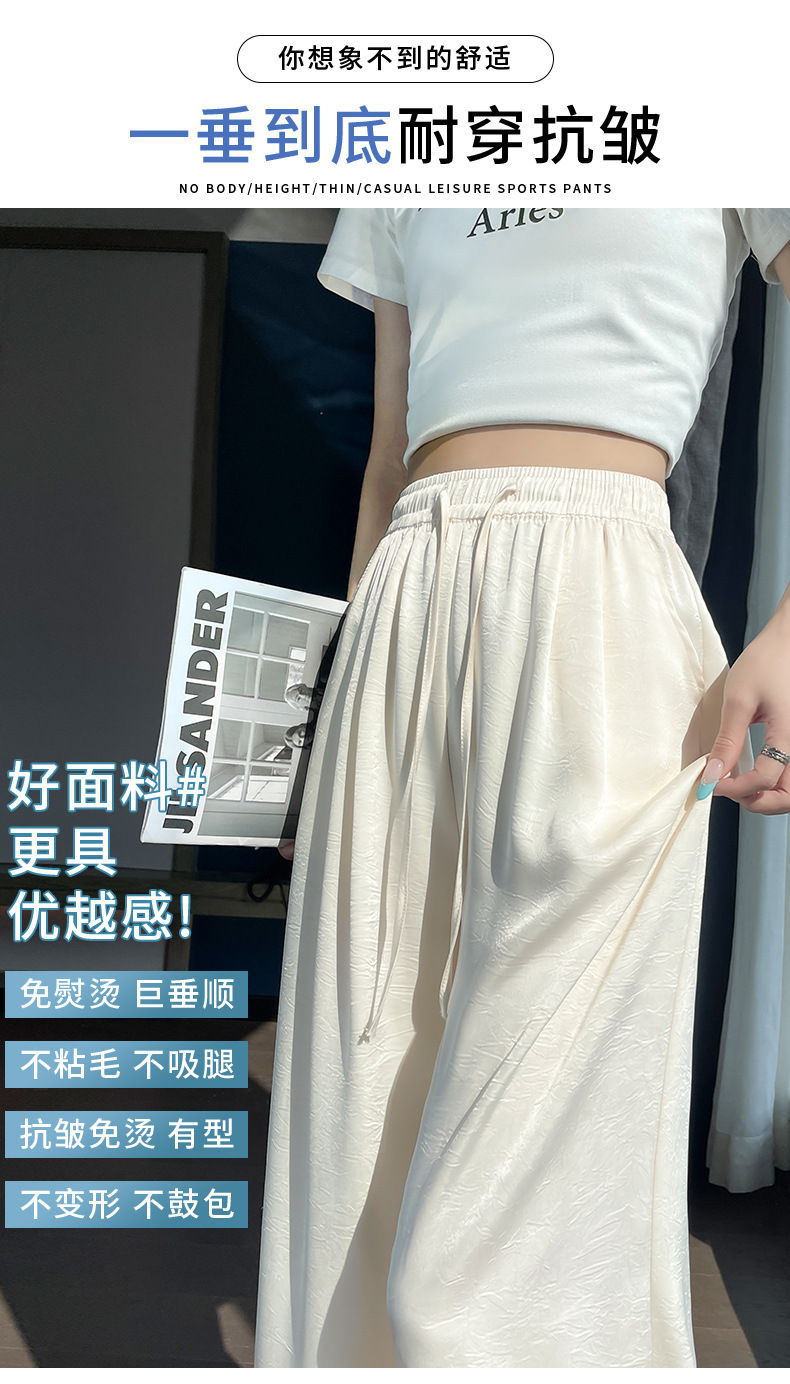Широкие брюки из ацетатного атласа для женщин, летний тонкий стиль 2025, новые высококачественные драпированные брюки из ледяного шелка в китайском стиле