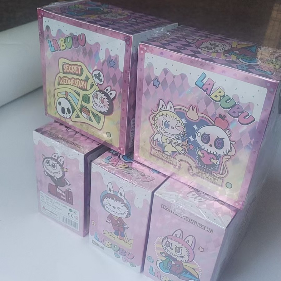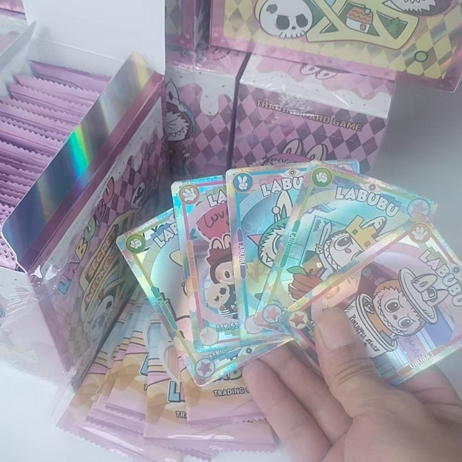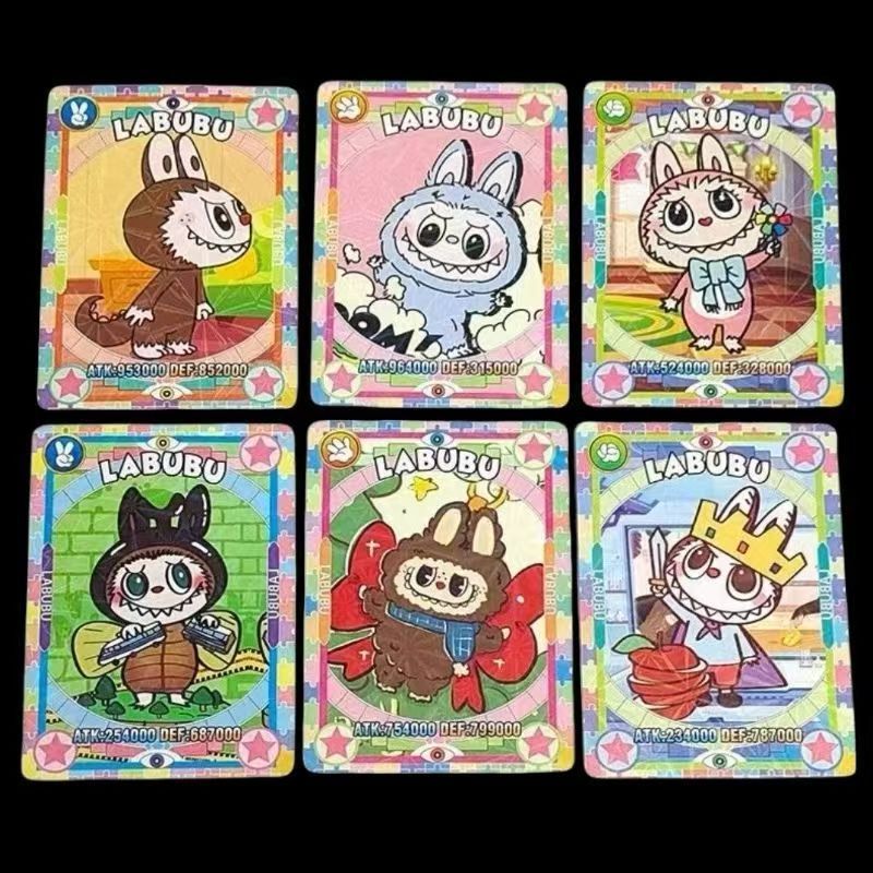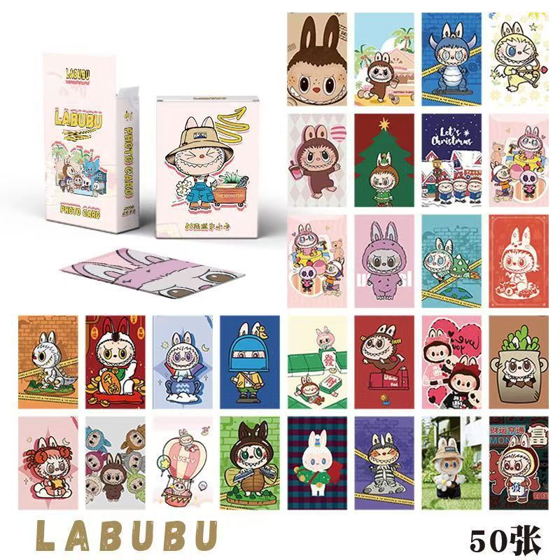 Лотерея с маленькими карточками LABUBU в слепых коробках, периферийные анимационные лазерные карты LOMO, коллекция золотых карт LABUBU для внешней торговли