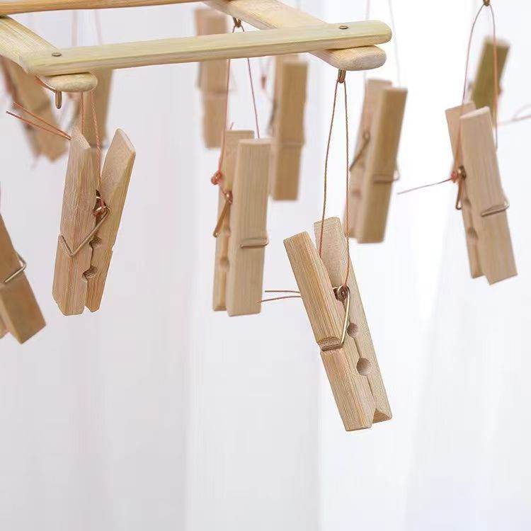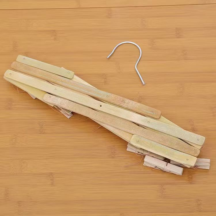 Универсальная ветрозащитная и нескользящая складная вешалка для брюк из бамбука с 16 зажимами для сушилки для нижнего белья и одежды.