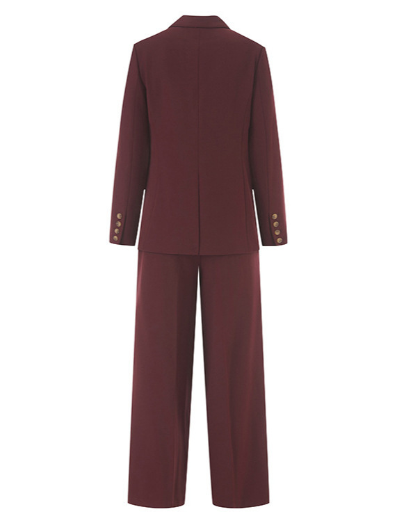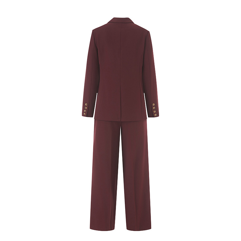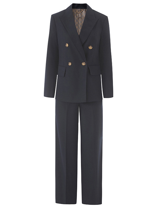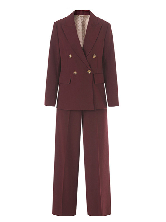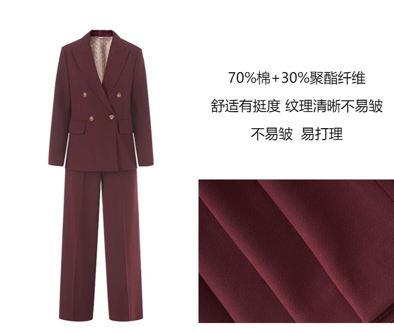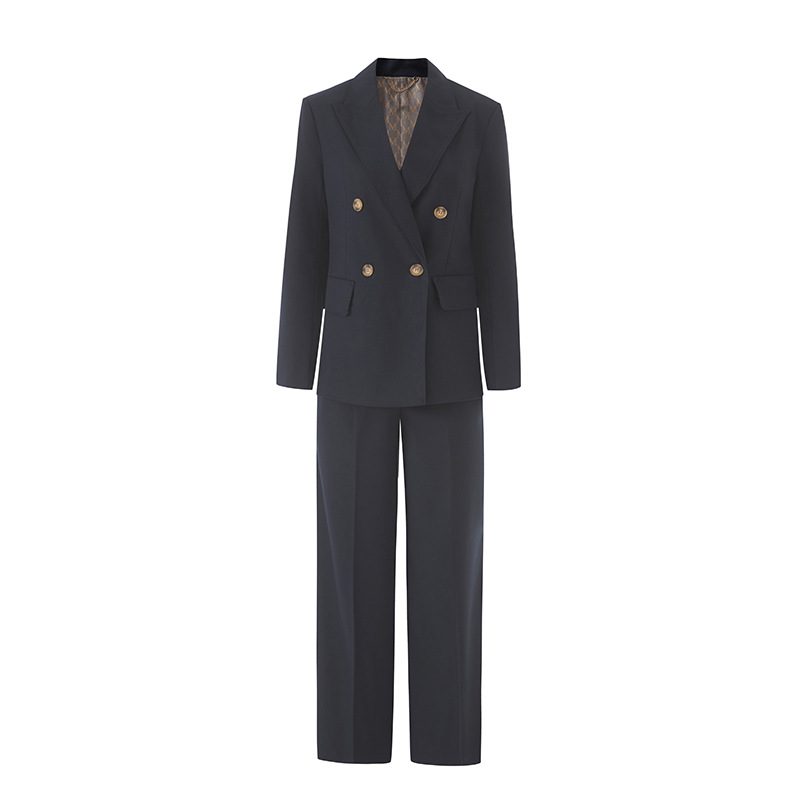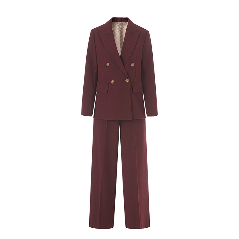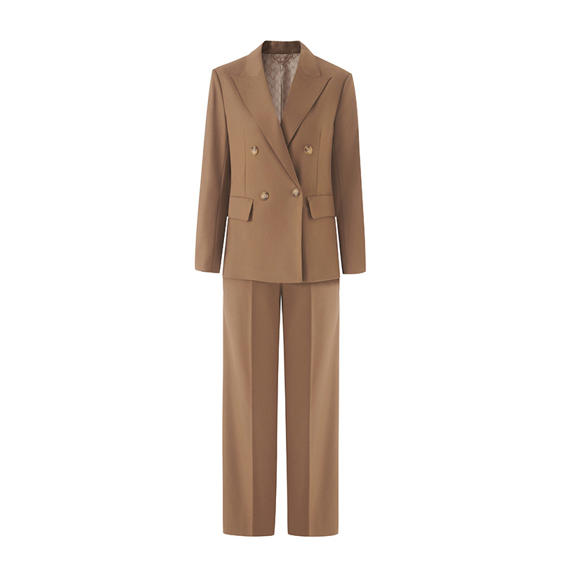 Костюм из шерстяной смеси для женщин, новинка осени 2025, двубортный, элегантный и изысканный, брюки прямого кроя, деловой костюм.