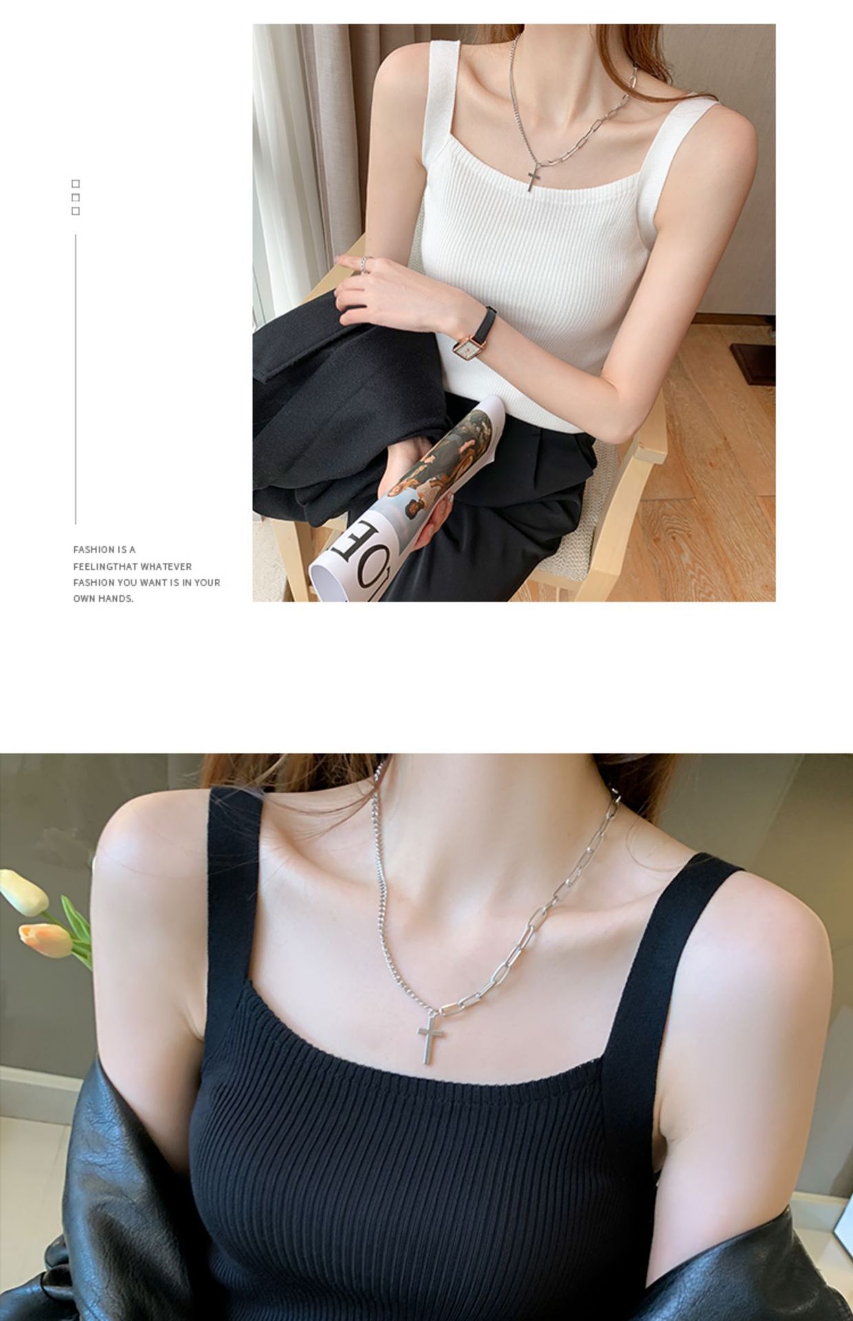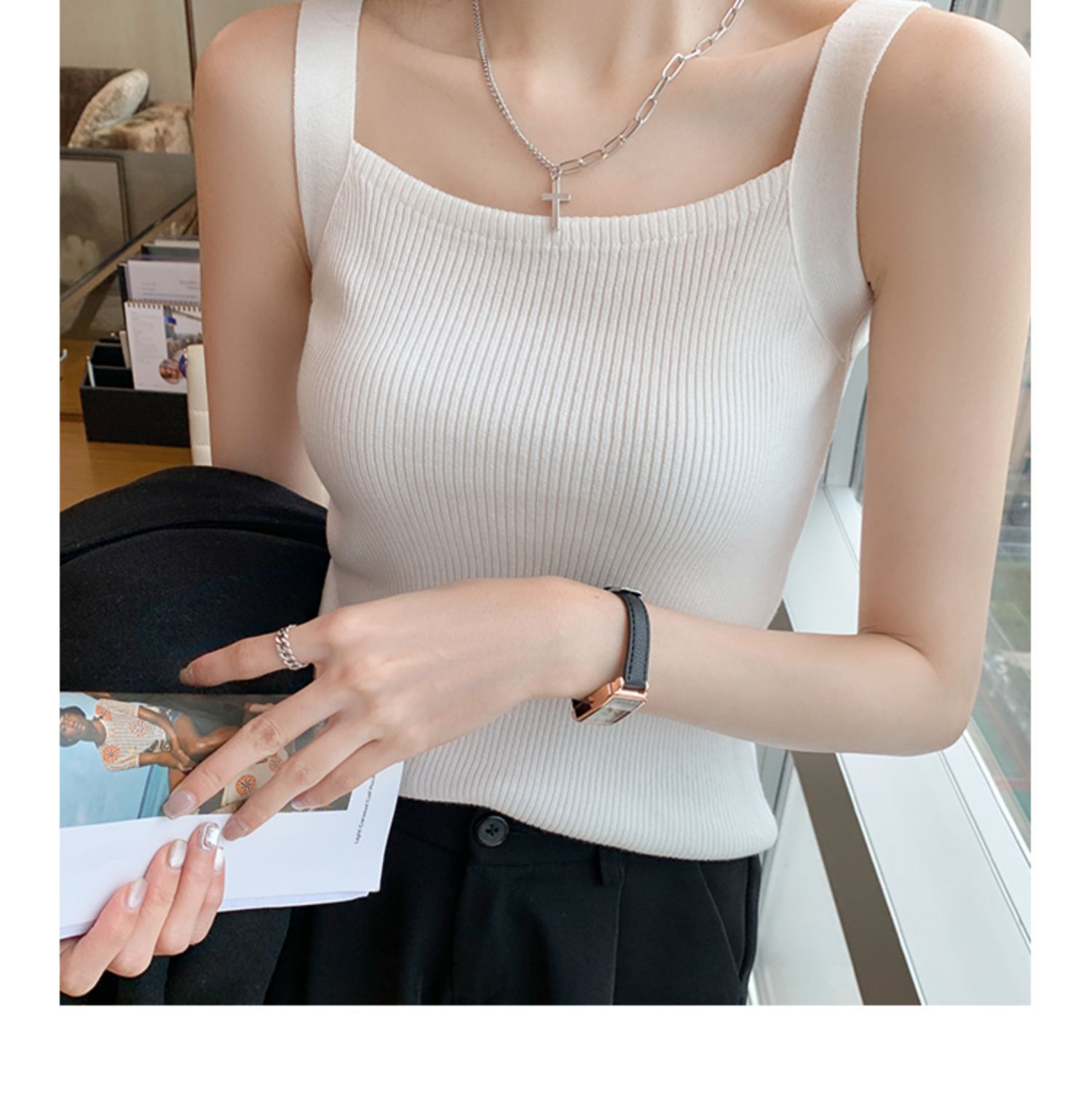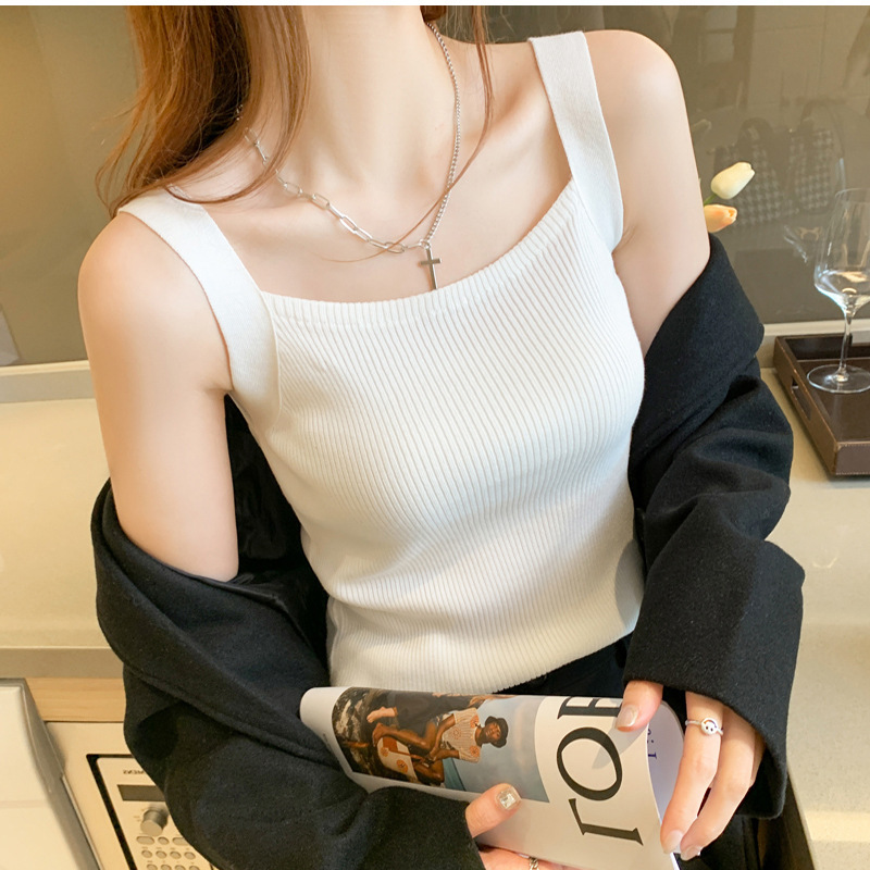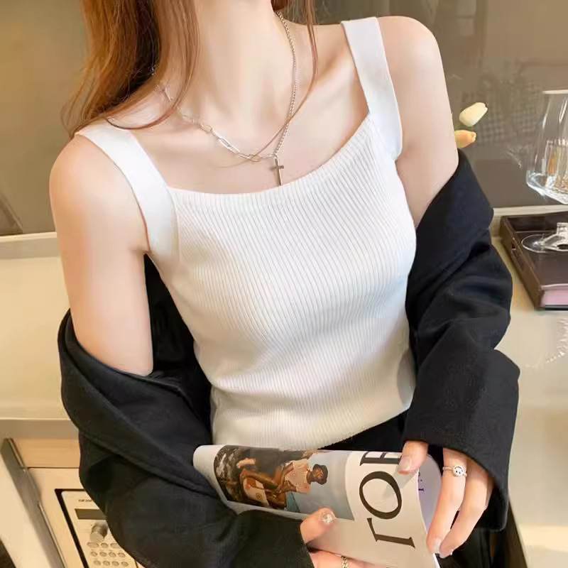 Белый вязаный топ для женщин 2025 лето-осень новый стиль комплект с нижней рубашкой из ледяного шелка короткий топ для женщин