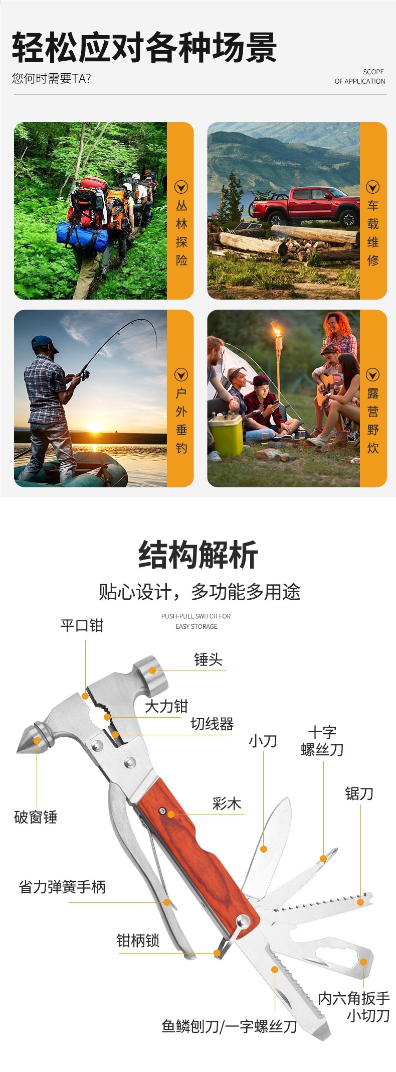 Прямая поставка с фабрики, многофункциональный спасательный молоток из нержавеющей стали, автомобильный стеклобой, кемпинг, уличный комбинированный инструмент, плоскогубцы, молоток