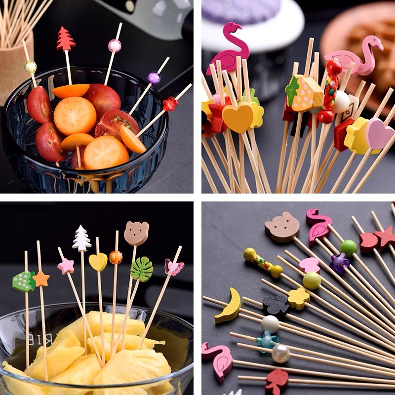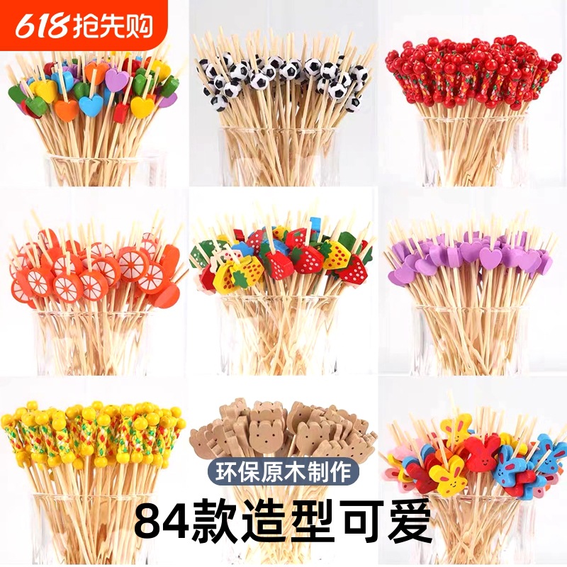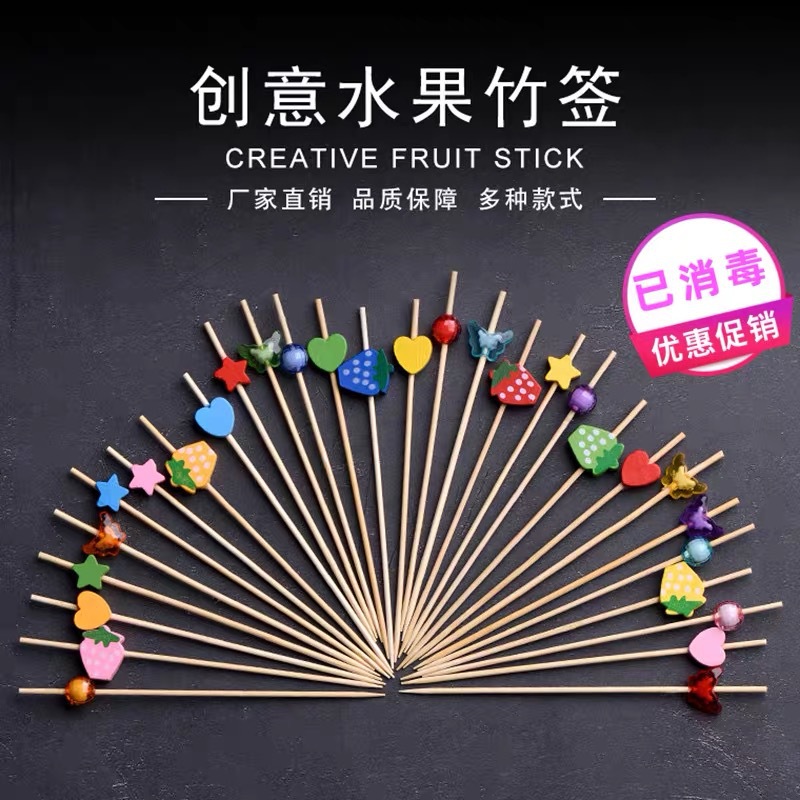 Одноразовые фруктовые палочки, бамбуковые палочки, цветочные палочки, фруктовые вилки, художественные зубочистки, коктейльные палочки, сэндвич-палочки, фруктовые вставки, новый стиль